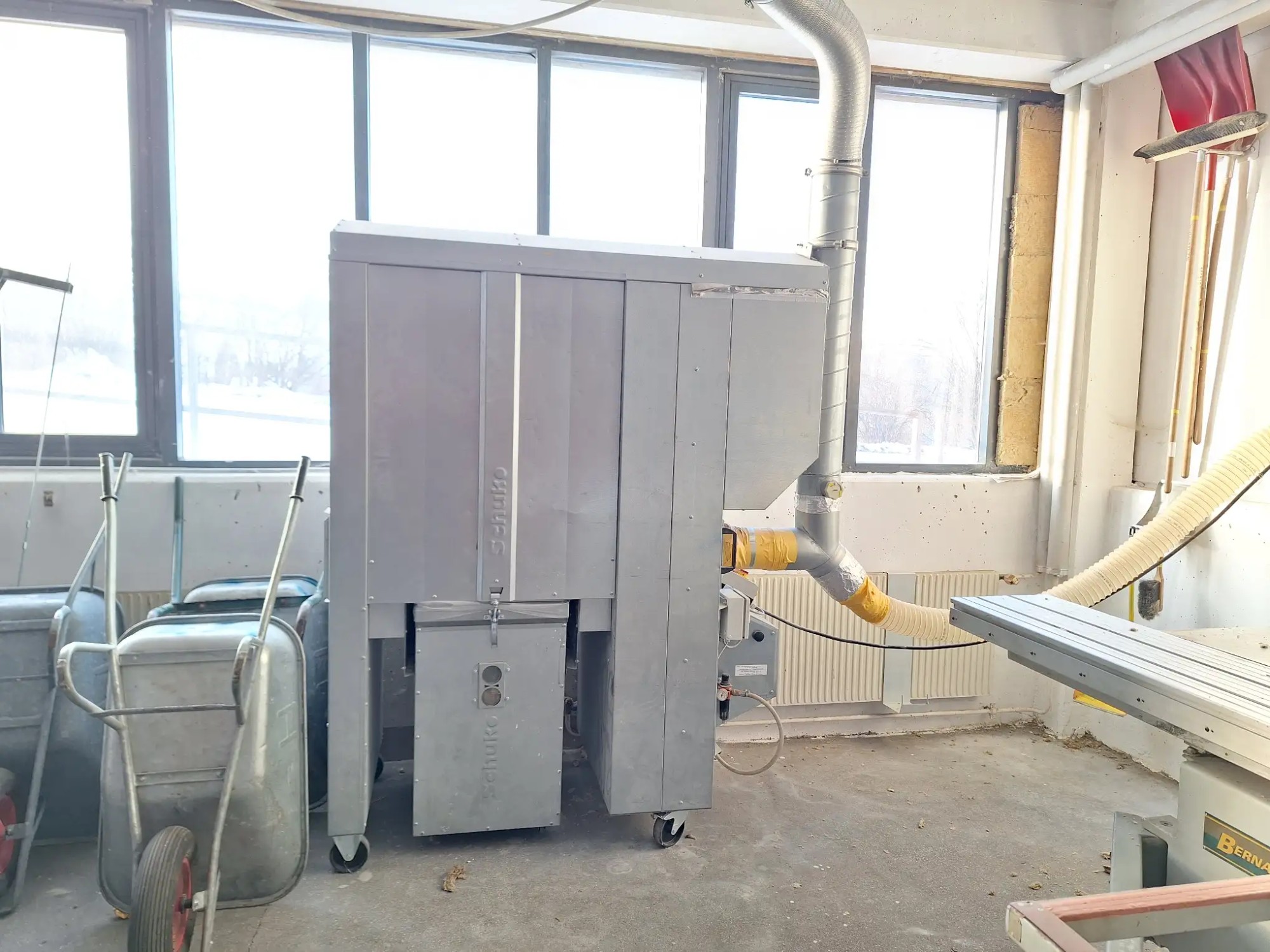 Vacomat 140/160 XP, mit Spänesammeltonne, 2,2 kW 2045 x 870 x 2125 mm, Eigengewicht 362 kg, Absaugung samt Flexrohr
