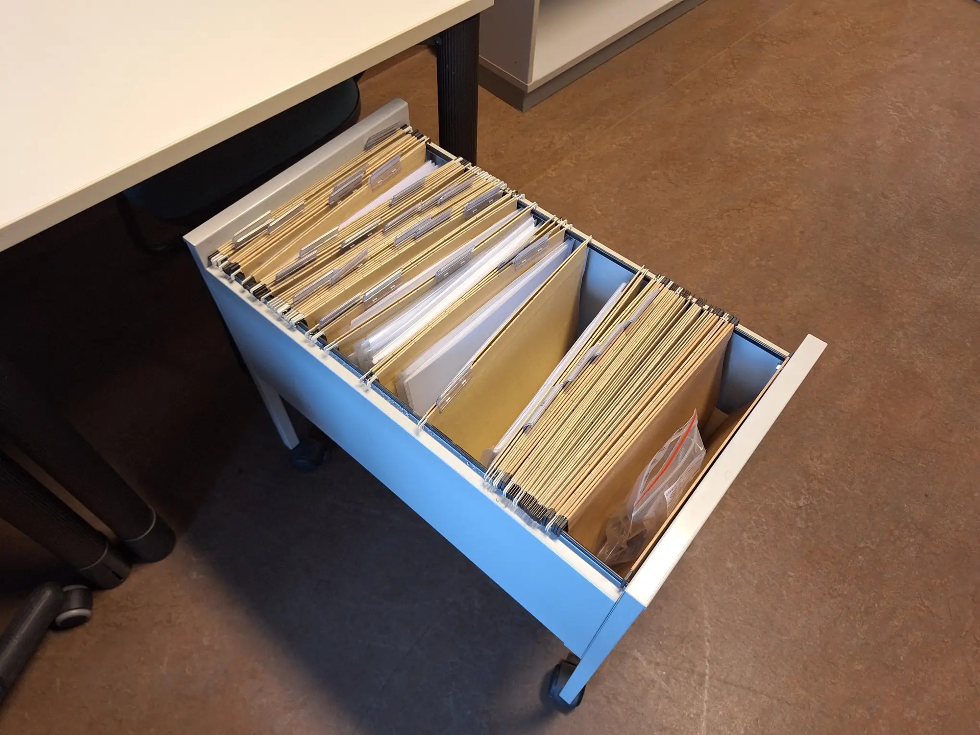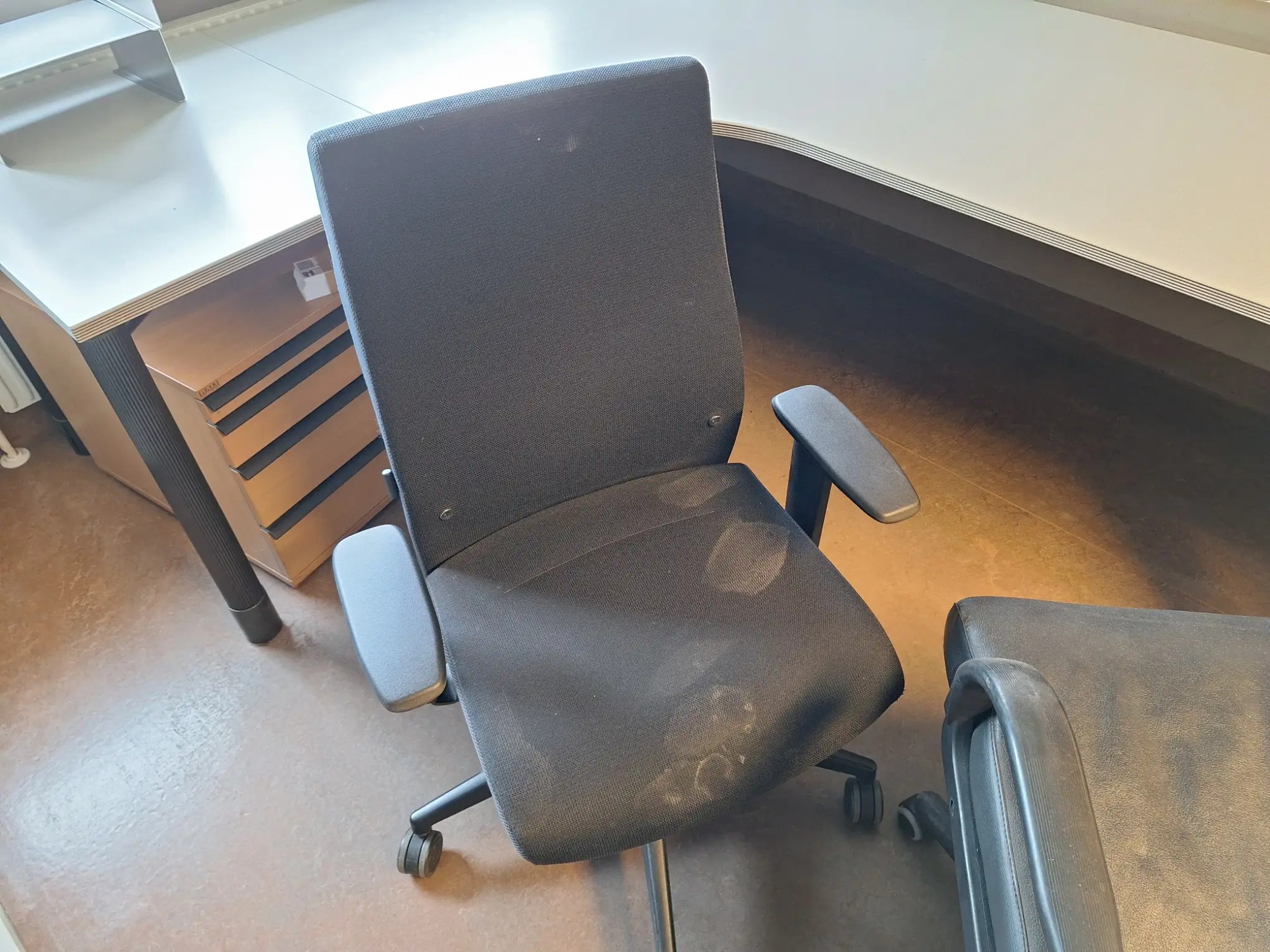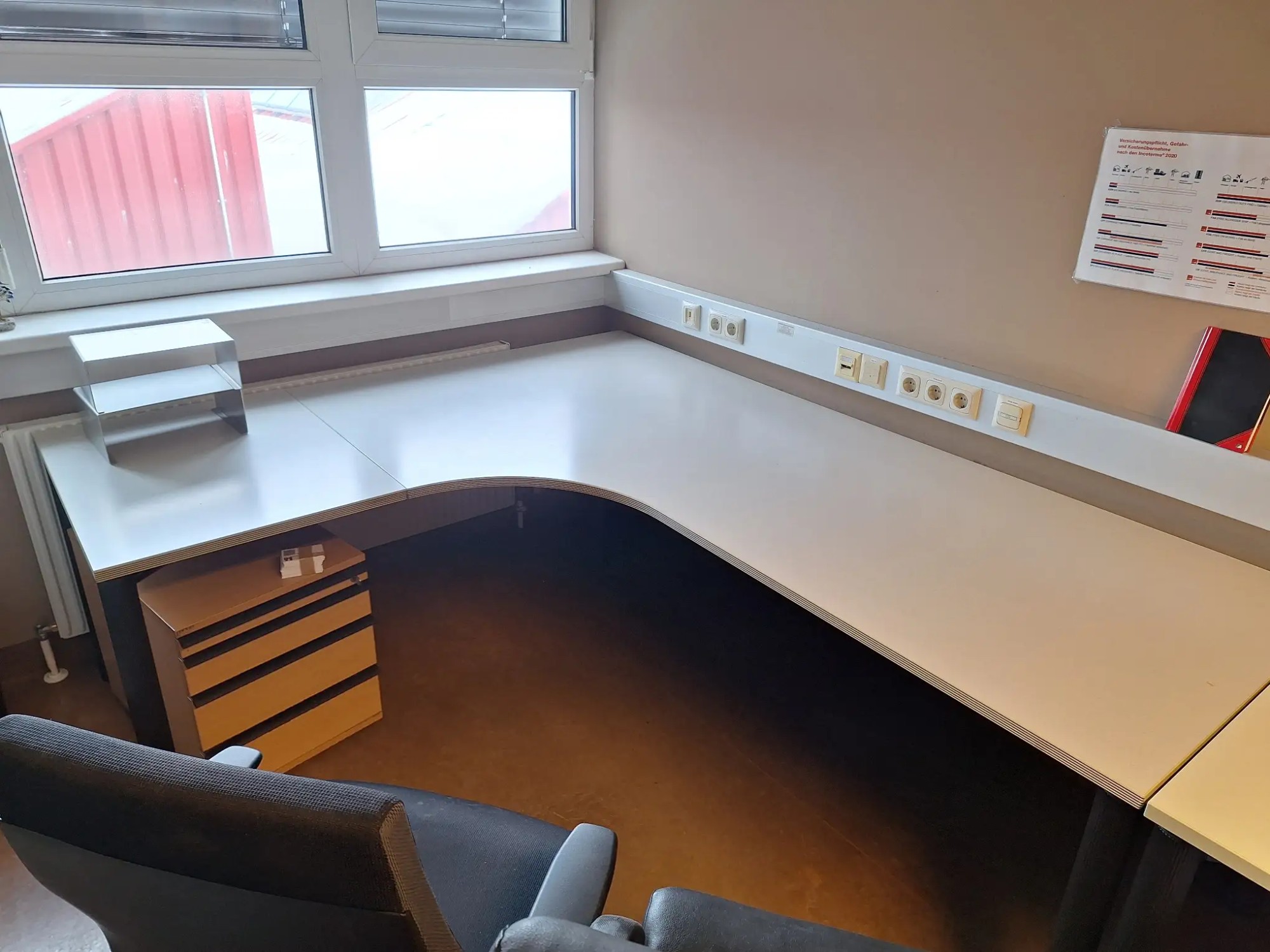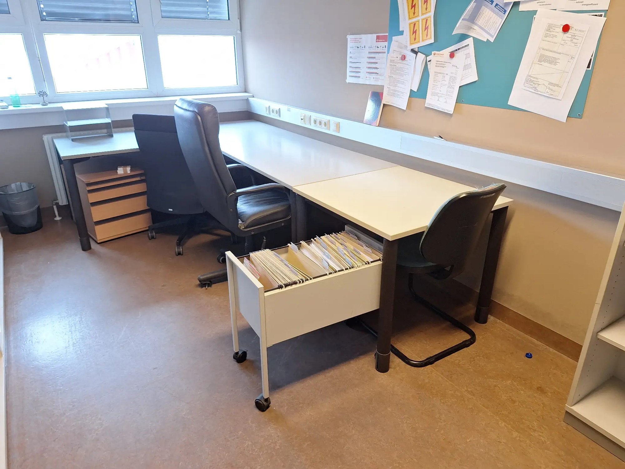 300x180x72 cm, inkl. 3 Stüh­le, Roll­con­tai­ner und Re­gis­ter­schrank