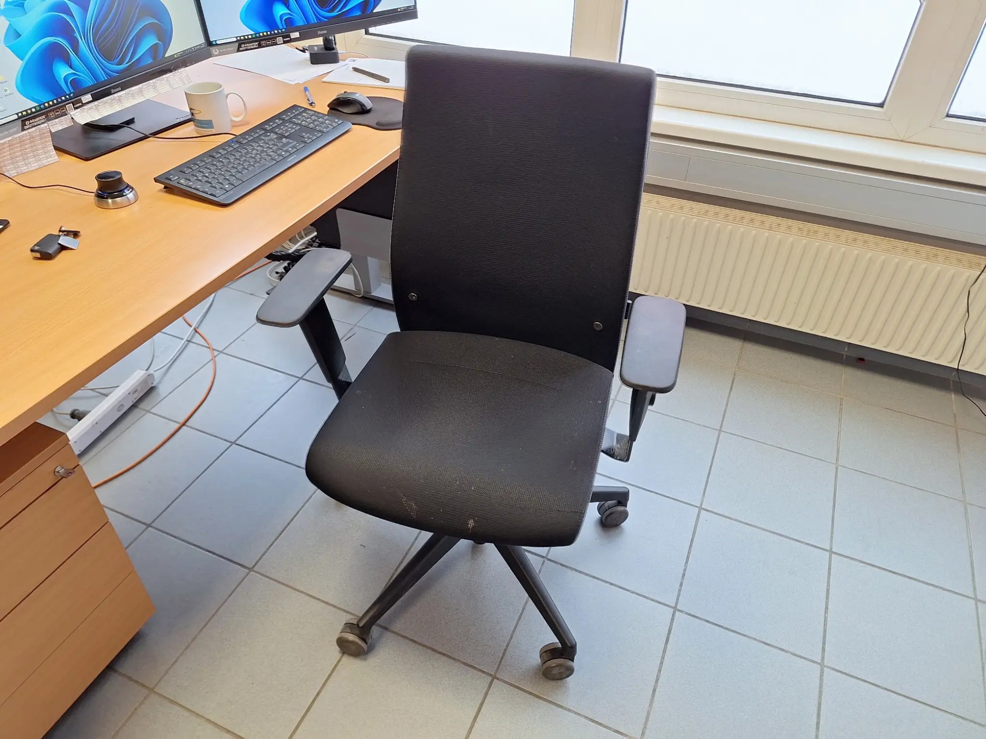 200x80 cm, elektrisch Höhenverstellbar, inkl. Bildschirmhalterung, Rollcontainer und Stuhl, excl. Geräte
