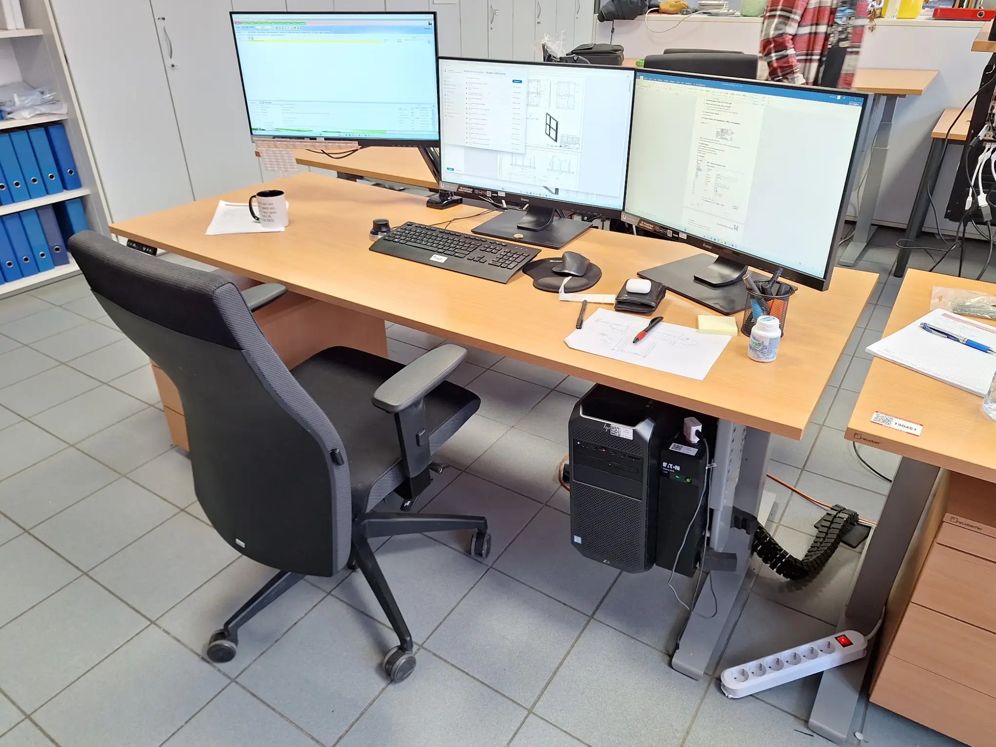 200x80 cm, elek­trisch Hö­hen­ver­stell­bar, inkl. Bild­schirm­hal­te­rung, Roll­con­tai­ner und Stuhl, ex­cl. Ge­rä­te