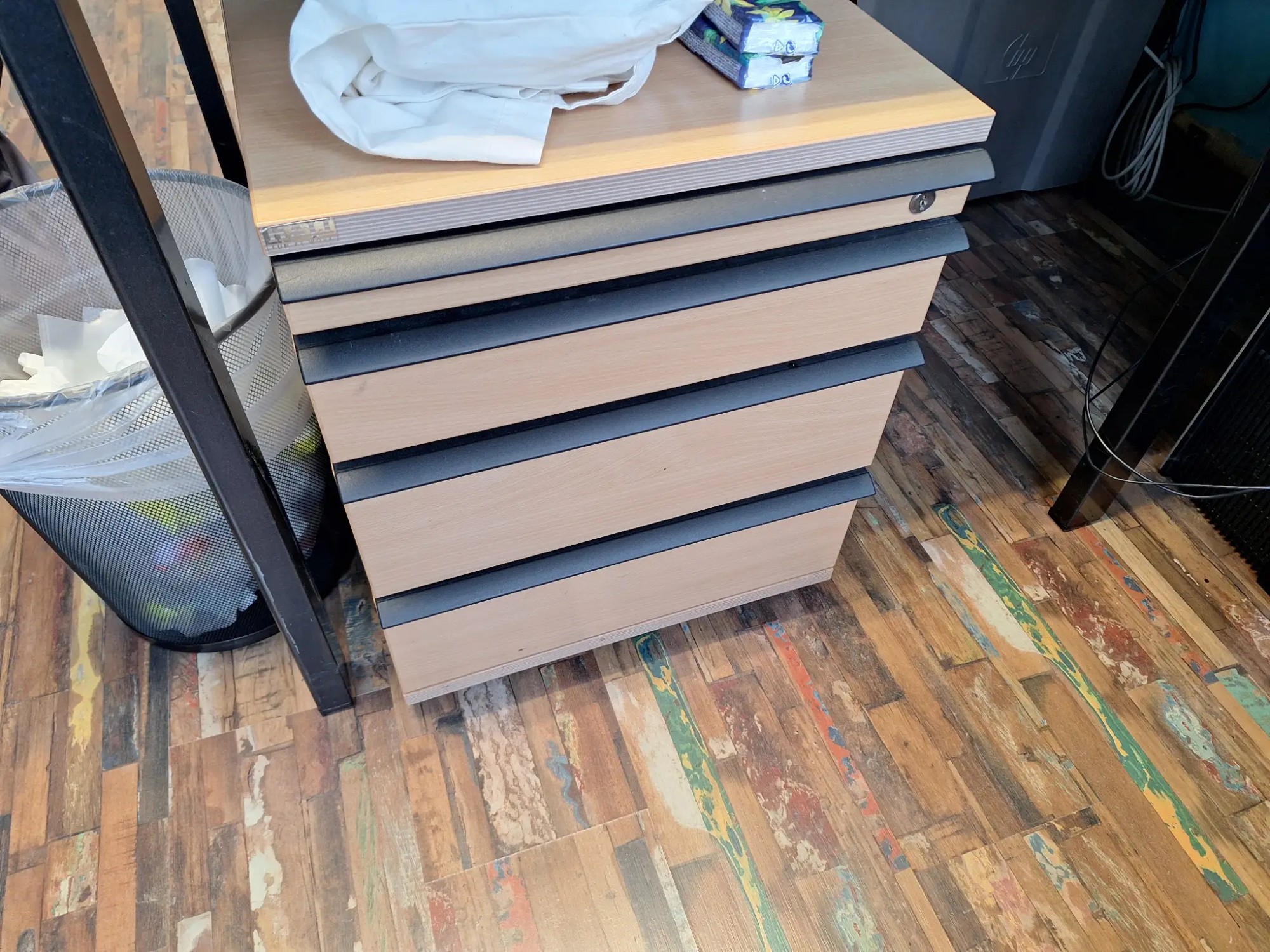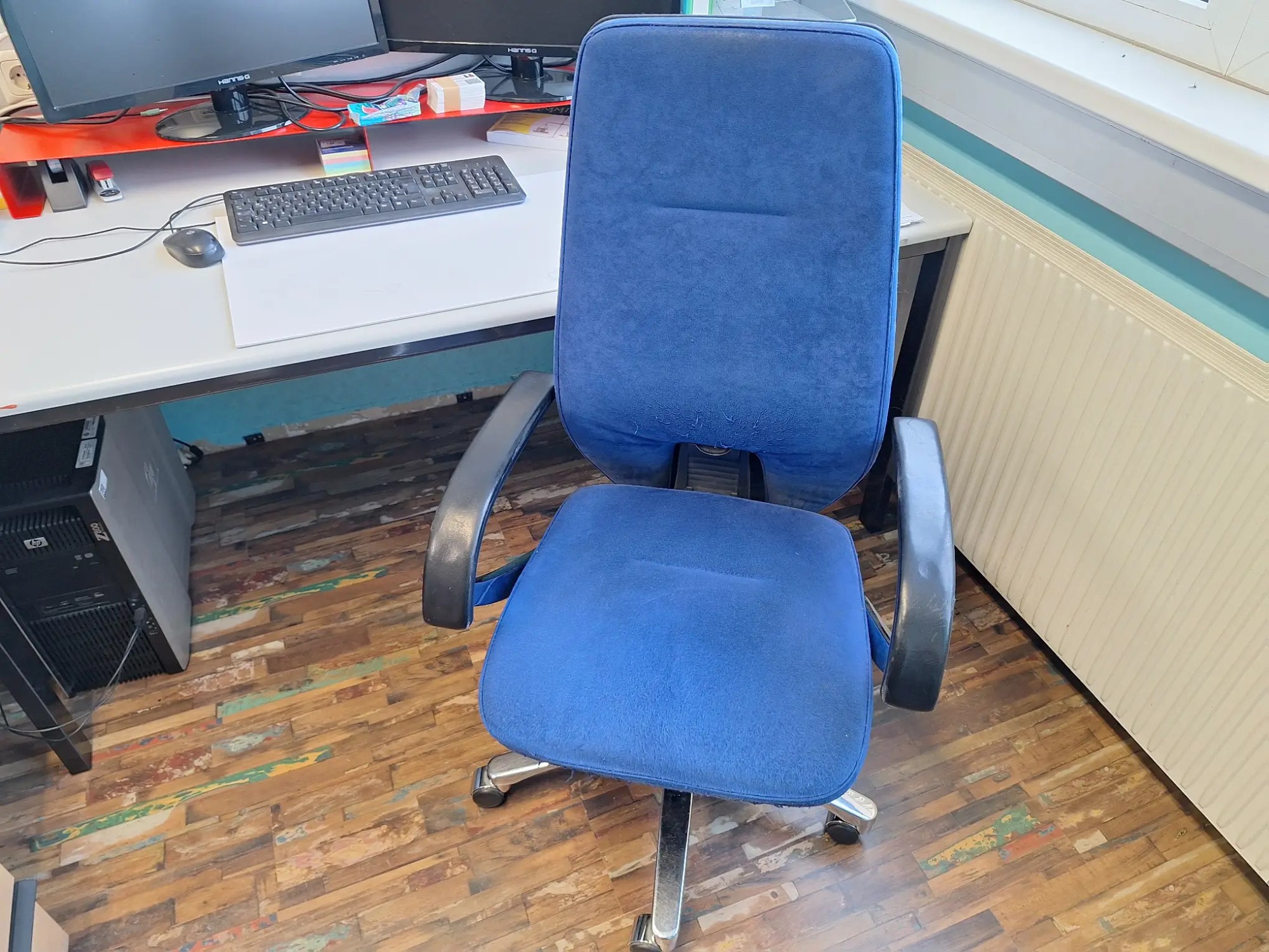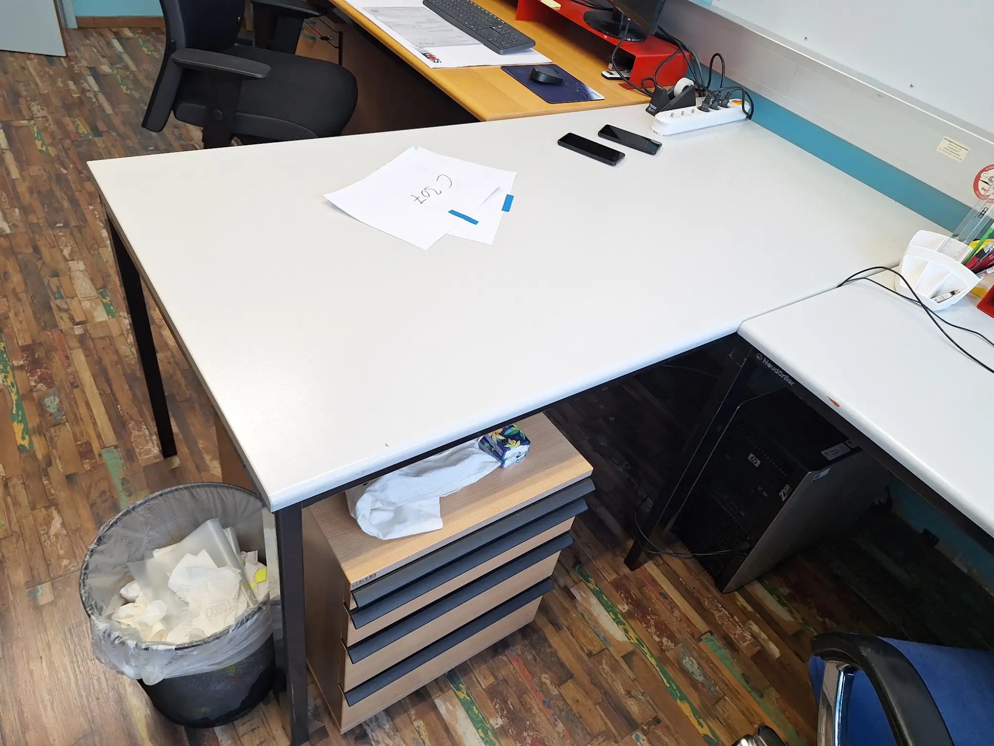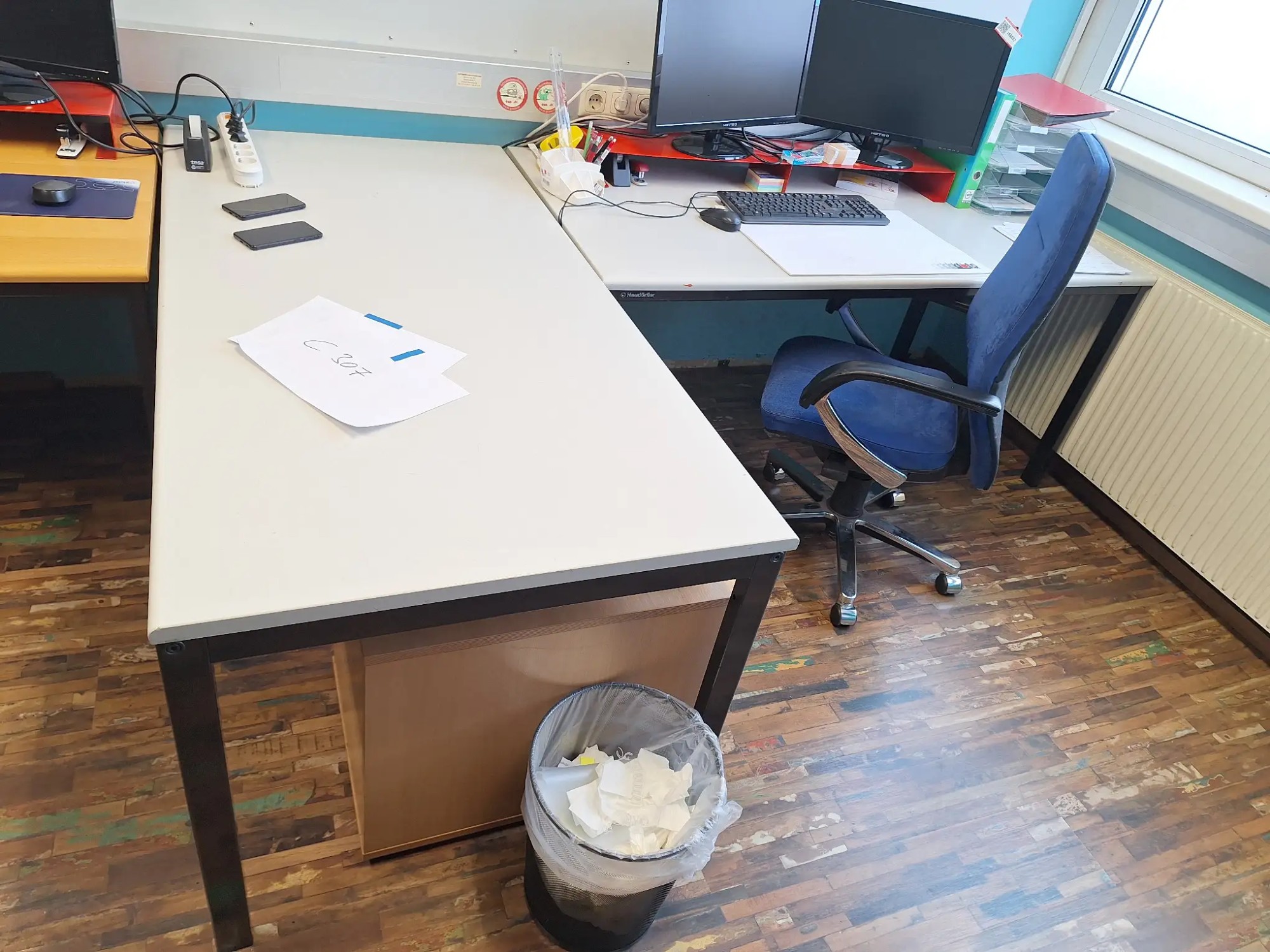 Inkl. Stuhl und Rollcontainer, je 160x80x72 cm, exkl. Computer und Geräte