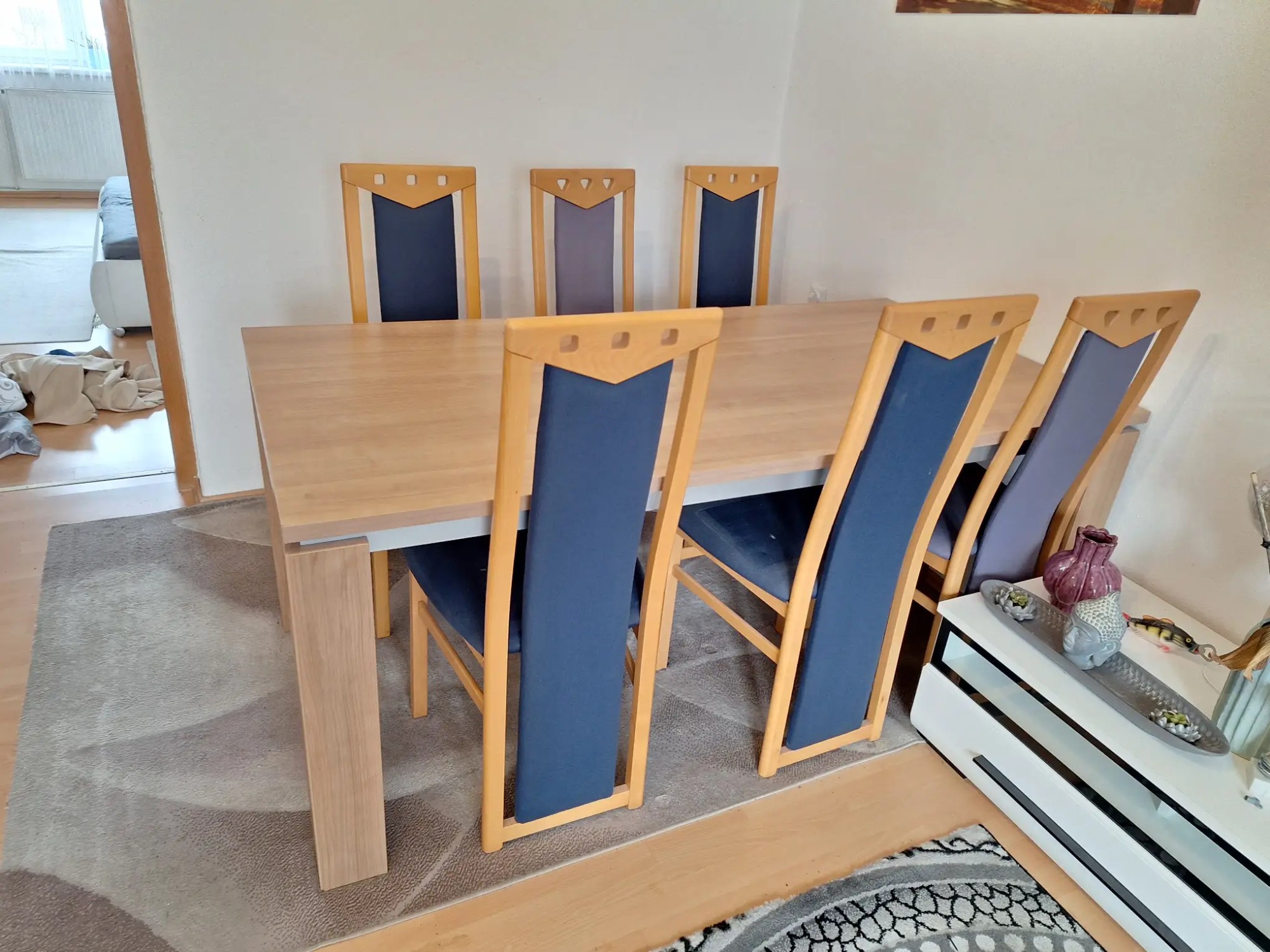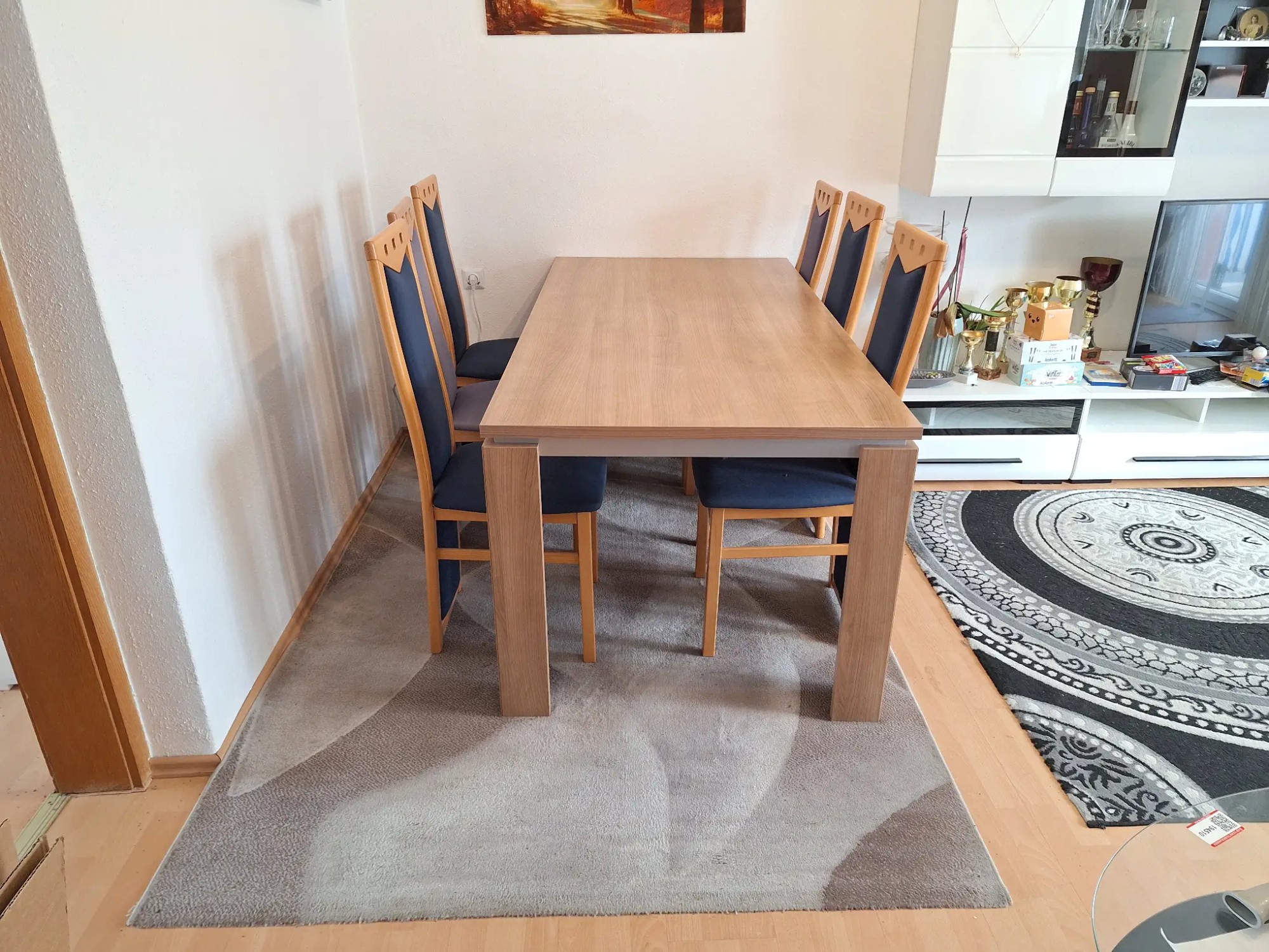 180 x 90 x 75 cm, inkl. 6 Stühle und Teppich