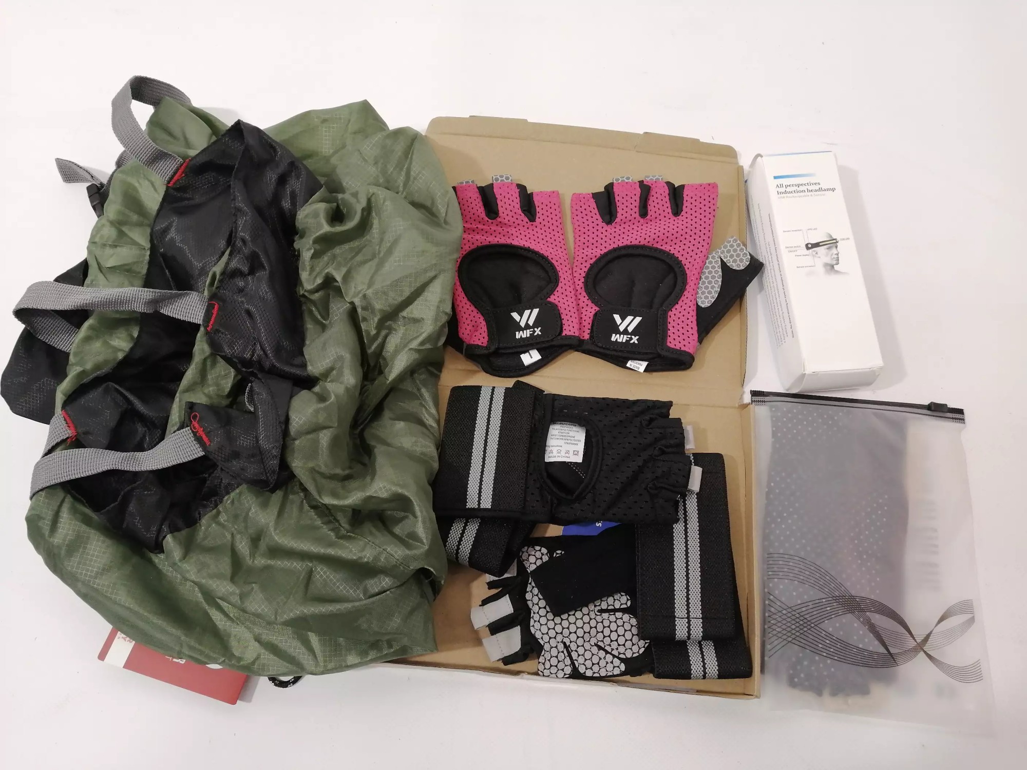 Radhandschuhe, Stirnlampe, Kompressionssack