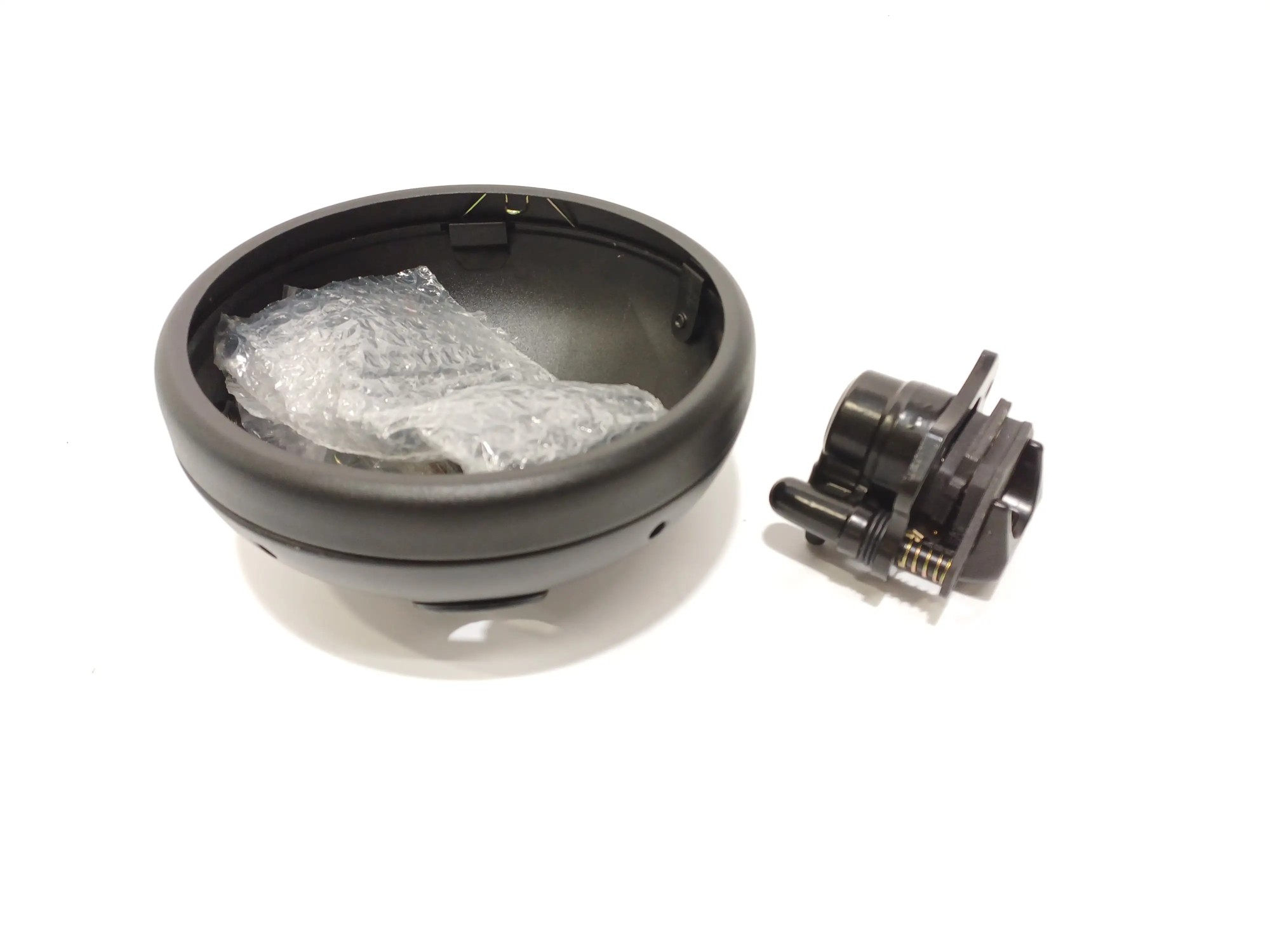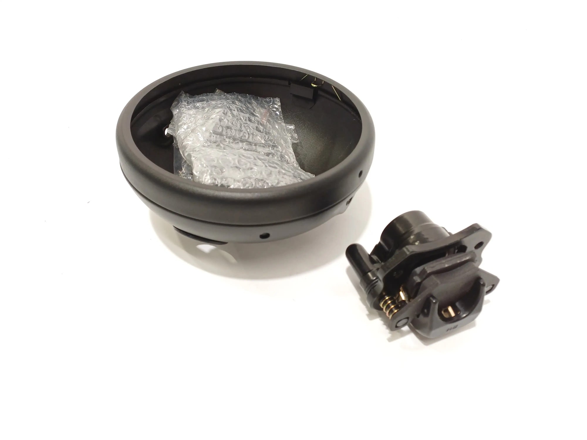 Scheinwerfergehäuse für Motorrad und ein Bremssattel, schwarz matt