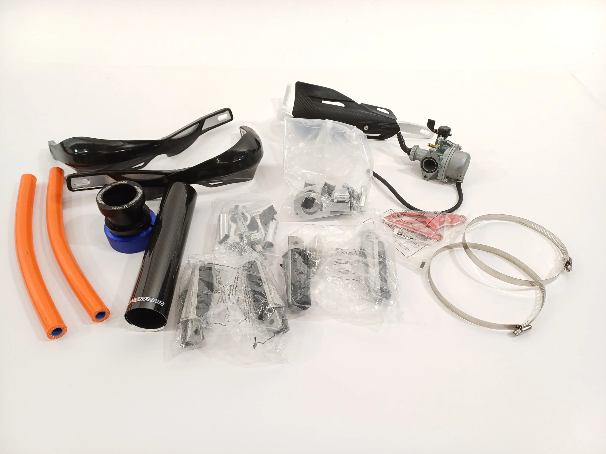 Vergaser, Schellen, 4 Stück Fußraster, Handschutz inklusive Befestigungsmaterial