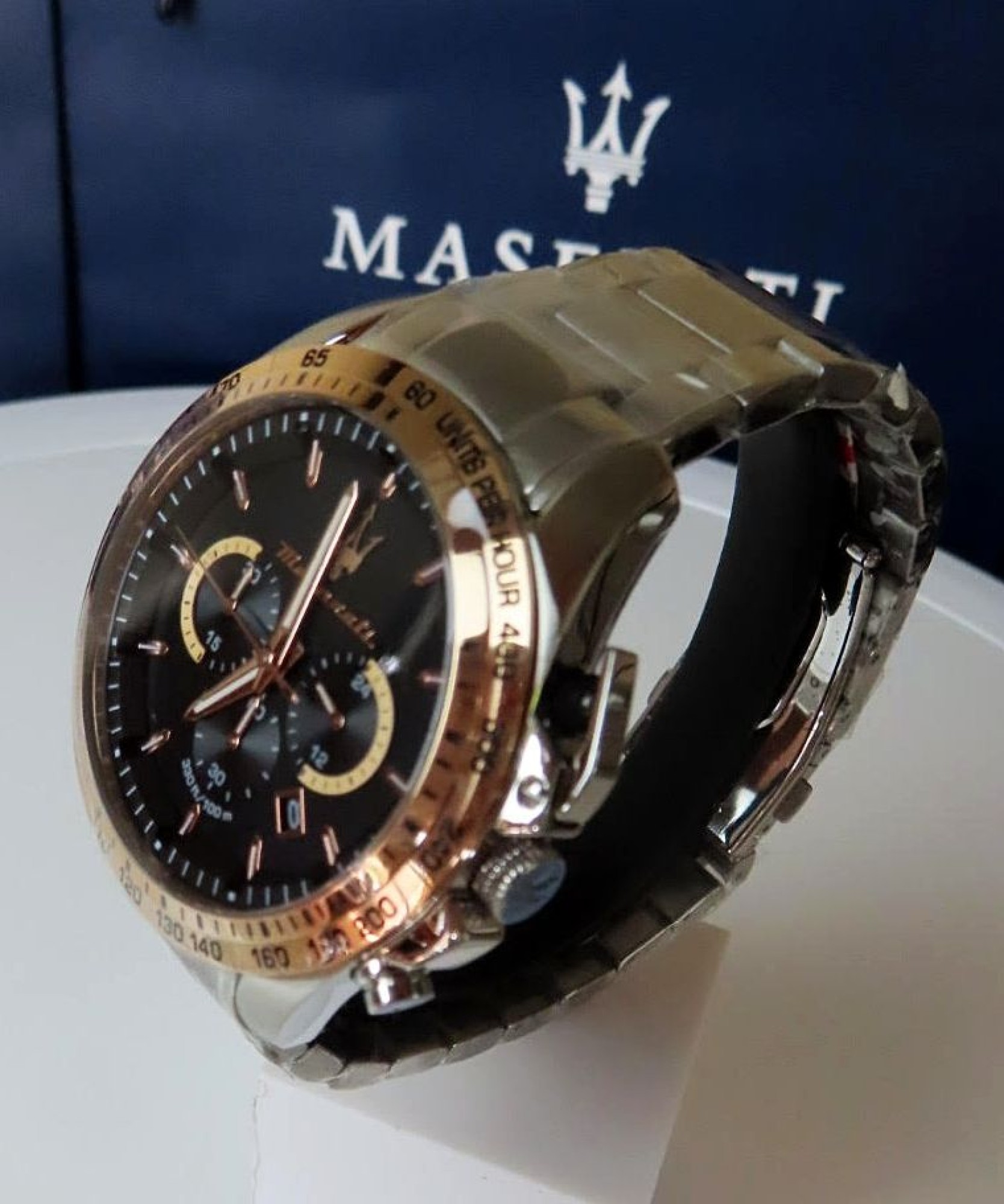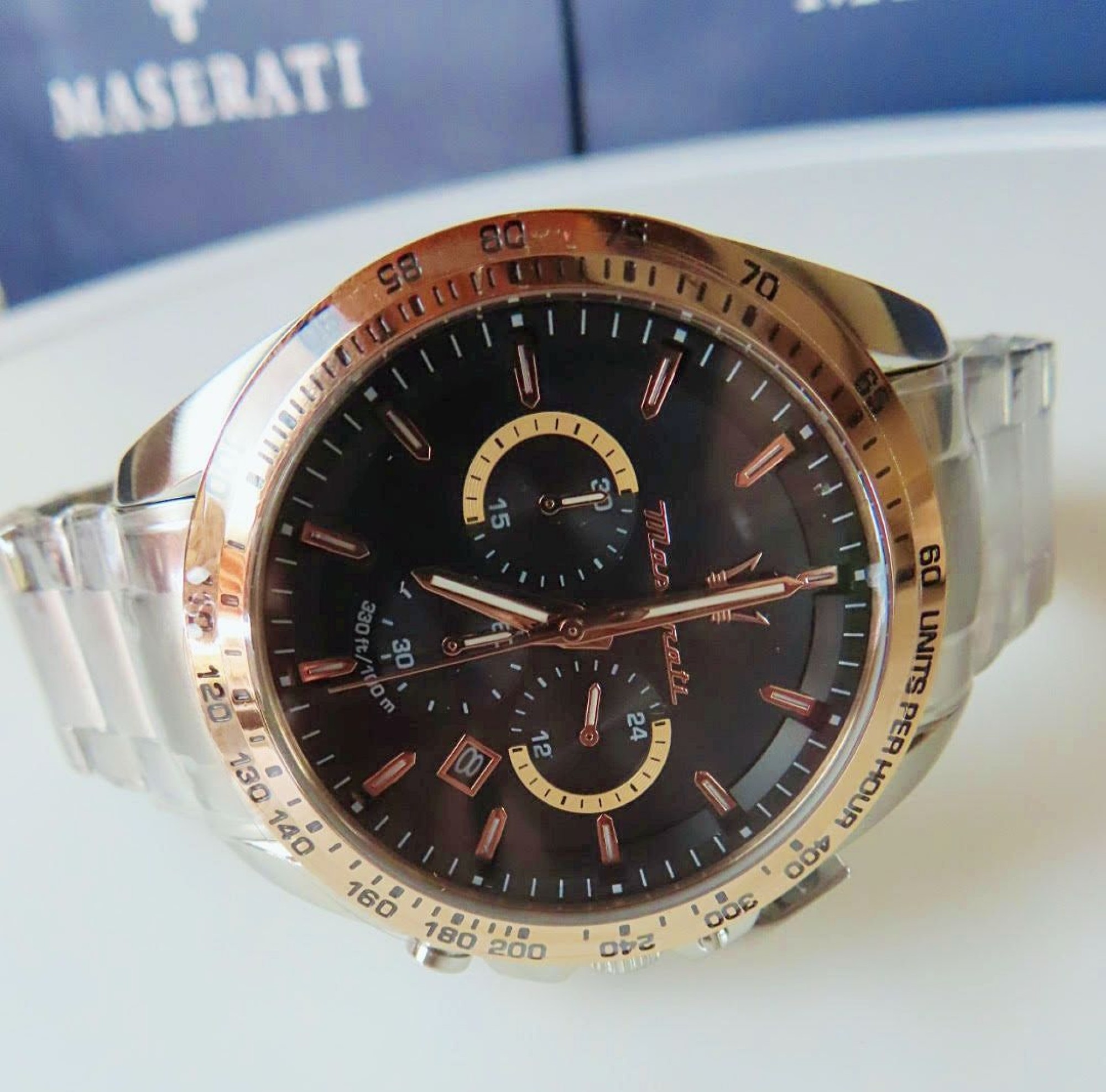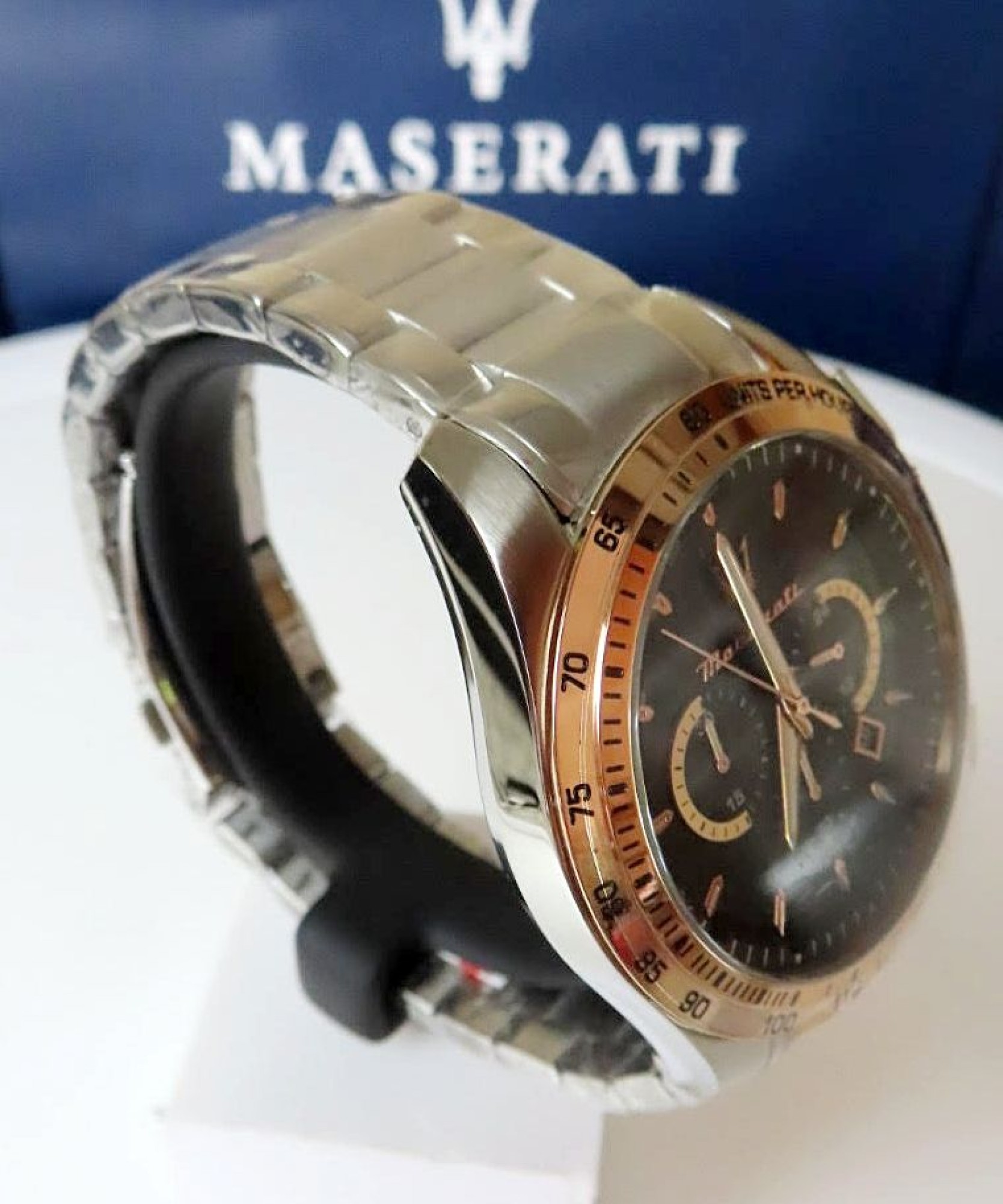 Neu OVP R8873612047 Ausgestattet mit einem hochwertigen Quarzwerk, präzisen Zeitanzeigen und einem eleganten Edelstahlarmband, verbindet die Traguardo R8873612047 Chronograph-Herrenuhr Funktionalität und Komfort. Ob im Büro, bei besonderen Anlässen oder im Alltag – diese Uhr rundet jedes Outfit stilvoll ab. Gewicht: 0,2 kg. Gehäusedurchmesser: 45 mm. Gehäusehöhe: 12 mm. Gehäusematerial: Edelstahl. Gehäusefarbe: roségold, silber. Gehäuseform: rund. Armbandmaterial: Edelstahl. Armbandfarbe: roségold, silber. Armbandbreite: 22 mm. Verschlussart: Pilotschließe. Kristalllinse: Mineralglas. Zifferblattfarbe: schwarz. Anzeige: analog, Chronograph. Geschlecht: Herren. Marke: Maserati.