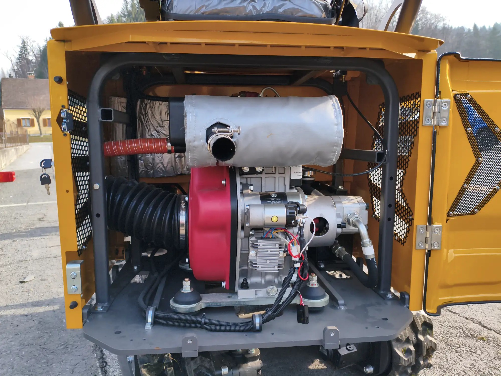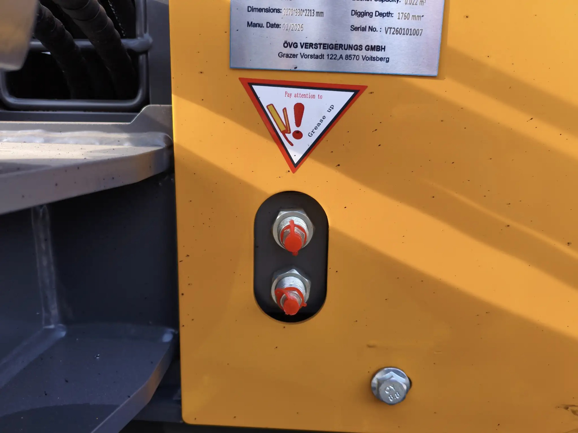 Ein­satz­ge­wicht: 1000 kg, me­cha­ni­scher Schnell­wechs­ler, 7 kW Ko­op-Die­sel­mo­tor, Ge­samt­län­ge: 2870 mm, Ge­samt­brei­te: 930 mm, Hö­he mit/oh­ne Dach: 2213 mm/1990 mm, 30er, 50er Tief­löf­fel, 80er Bö­schungs­löf­fel