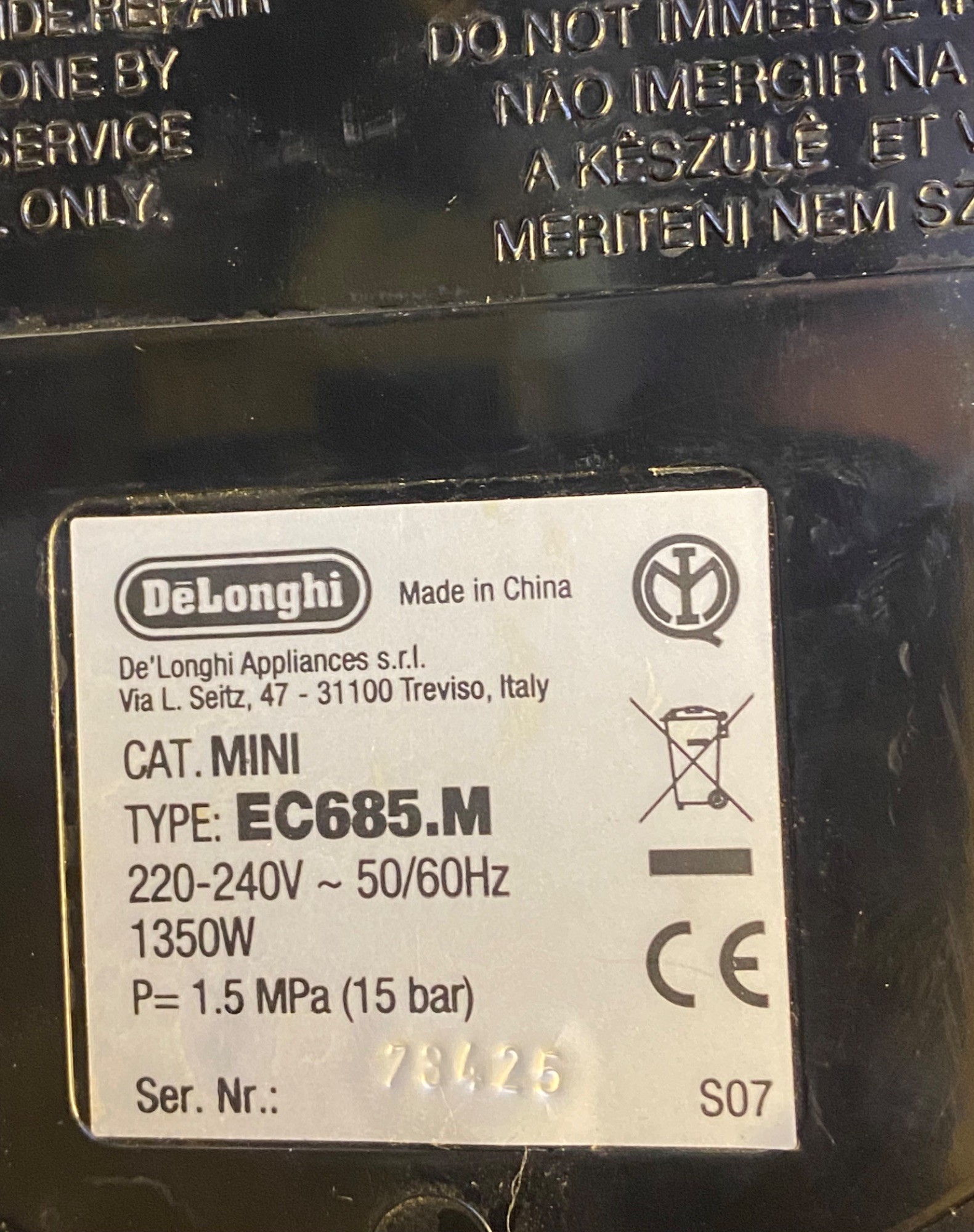 188.677: 1 Stk. Sieb­trä­ger Kaf­fee­ma­schi­ne (Delonghi EC685.m )