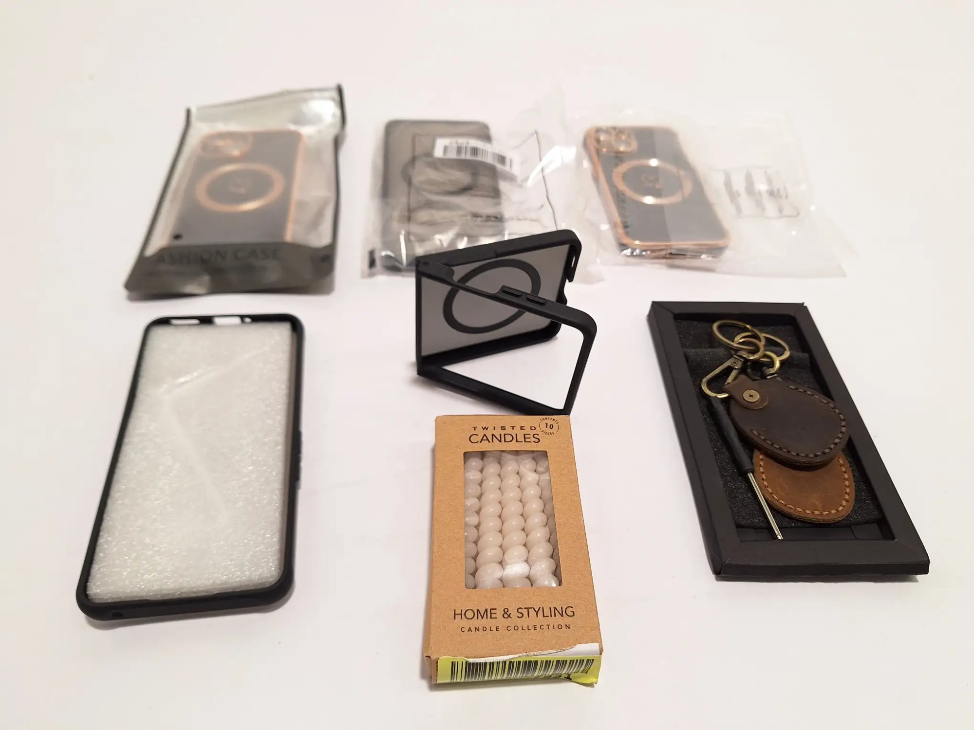 Diverse Sorten, inklusive Kerzen und Lederanhänger