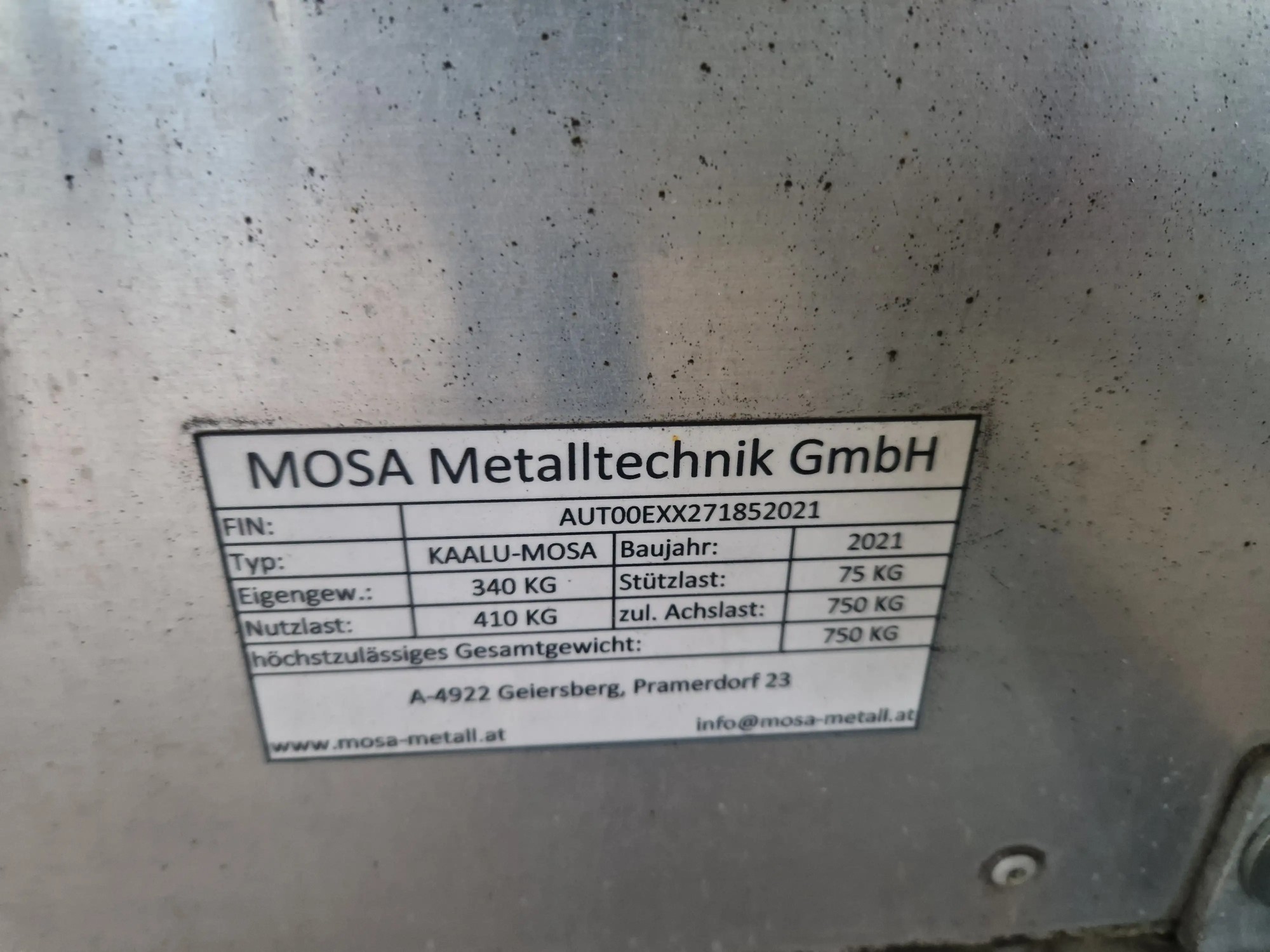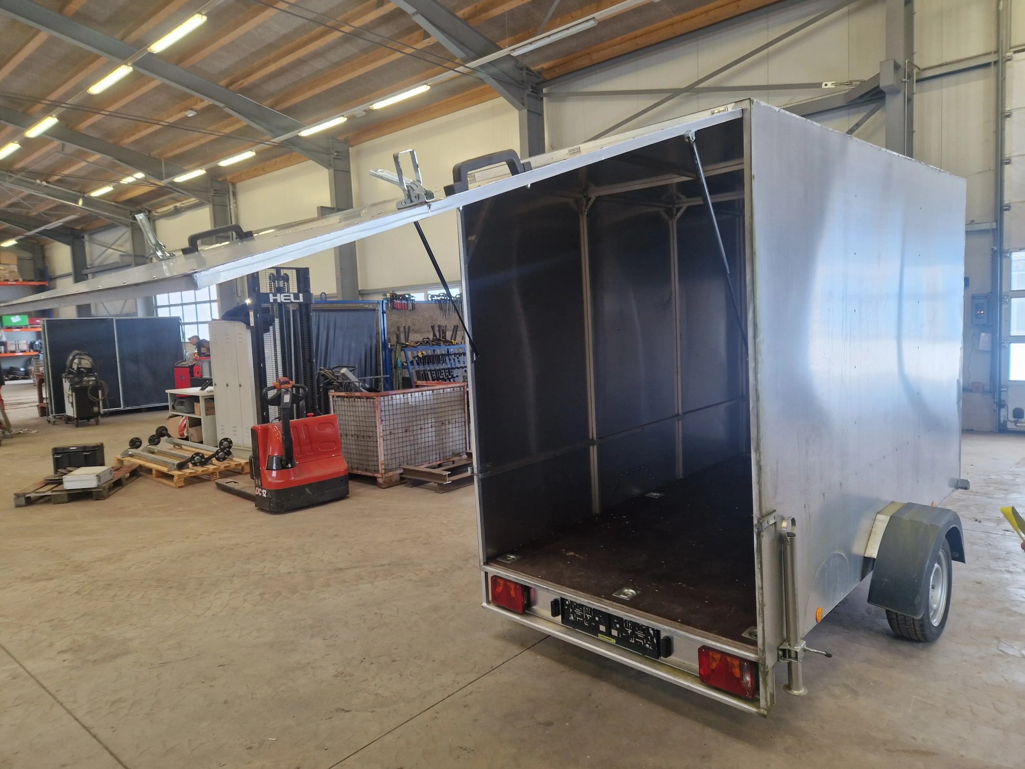 KAA­LU, 750 kg Ges.Gew., 340 Kg EG, Alu Kas­ten­auf­bau mit Heck­klap­pe, Ma­ße in­nen 326x150x193 cm