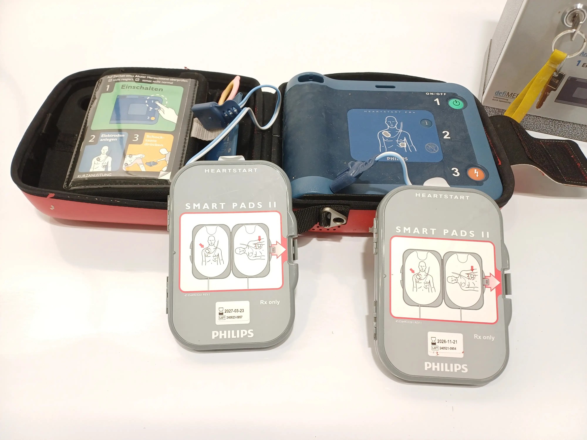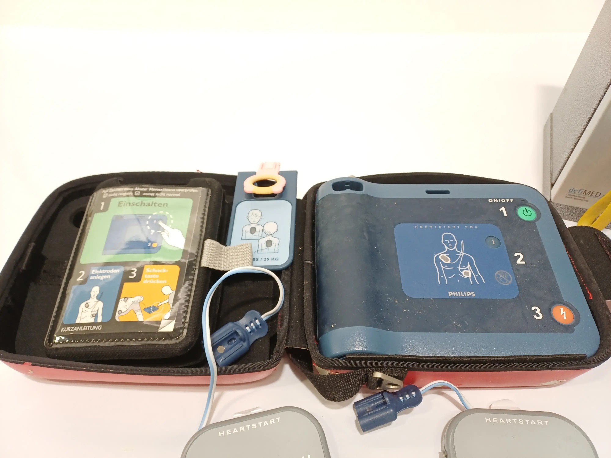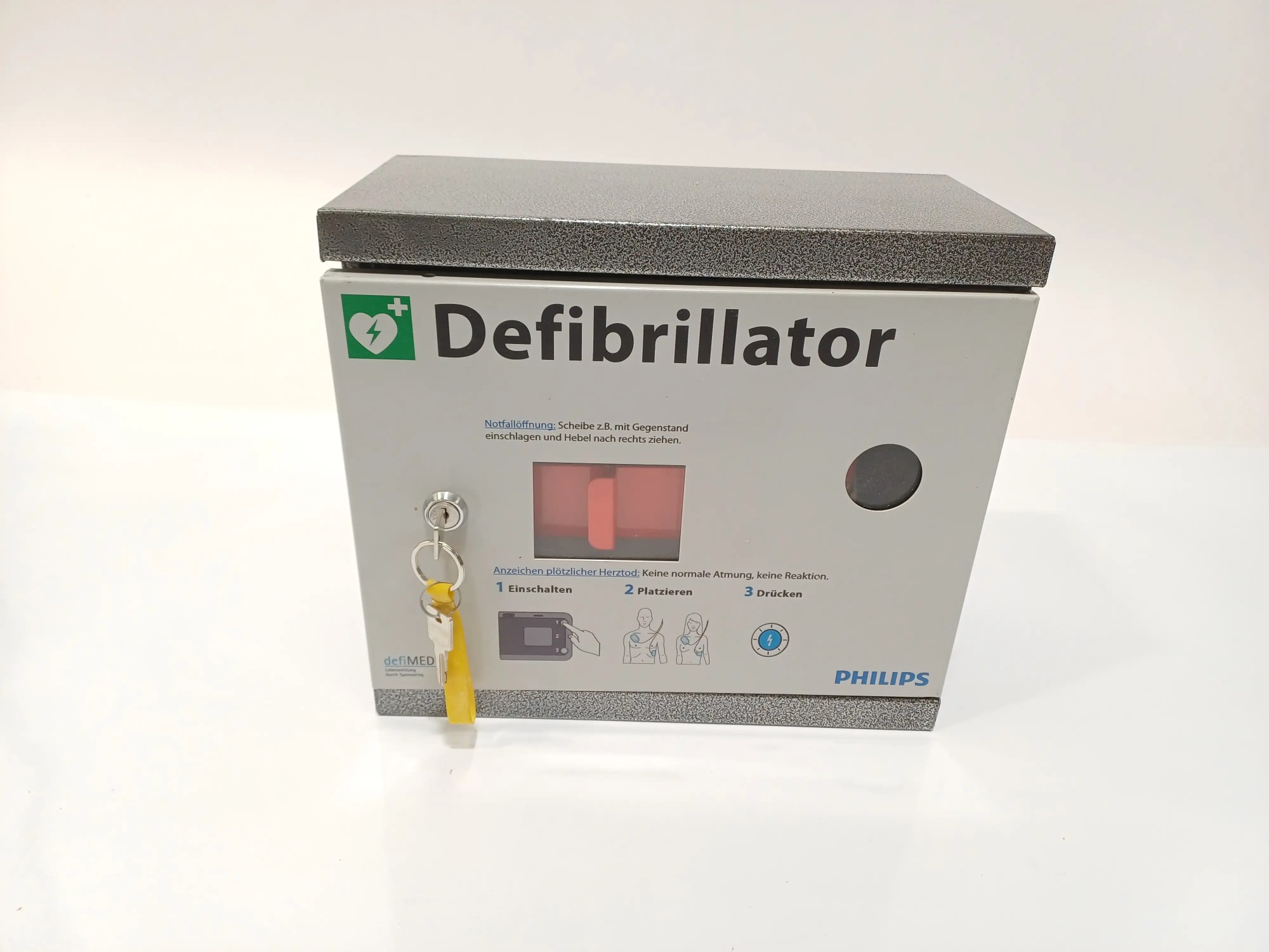 Defribillator mit Aufbewahrungsbox, Akku fehlt