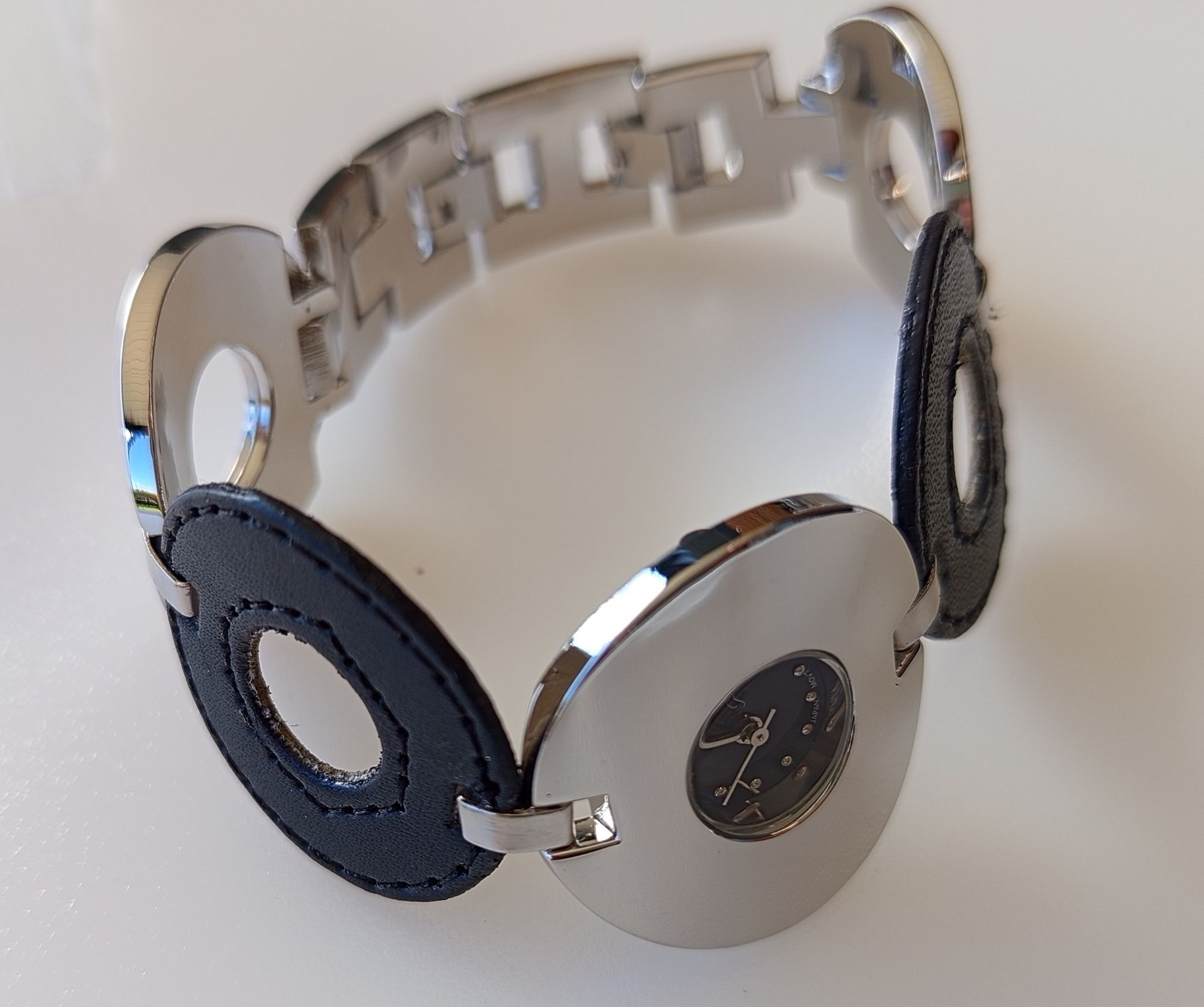 109 Ehemaliger VP in der Schweiz 699 CHF (69,90 CHF/Stück). Sie erhalten 10 Sets. Die Batterien (AG4) sind leer. Die Uhren stammen aus der Sortimentsauflösung der Handelskette Migros Schweiz. Preis ausgezeichnet in CHF. Spezifikationen: Armbanduhr: gelbes Zifferblatt, Edelstahlgehäuse, Armband aus poliertem Metall und beigem Leder. Uhr-Anhänger: weißes Zifferblatt, Edelstahlgehäuse, Anhänger aus beigem Leder mit Nieten, einfaches Befestigen durch Karabinerverschluss. Daten: Armbanduhr Zeitanzeige: Analog, Gehäuse: rostfreier Edelstahl, poliert, Armband: Kombination aus Leder und Metall, Breite: 33 mm, Wasserdicht: Dieses Modell ist spritzwasserfest nach DIN 8310, Design: kreisförmiges Gehäuse und Armband, Größe: 33 mm Radius. Uhr-Anhänger Zeitanzeige: Analog, Gehäuse: rostfreier Edelstahl, poliert, Anhänger: Leder mit Nieten, Wasserdicht: Dieses Modell ist spritzwasserfest nach DIN 8310, Design: herzförmig mit Nieten und Karabinerverschluss, Größe: 60 x 53 mm, goldfarbene Box. Beide Uhren sind mit hochwertigem, ganggenauem Miyota-Quarzwerk ausgestattet.