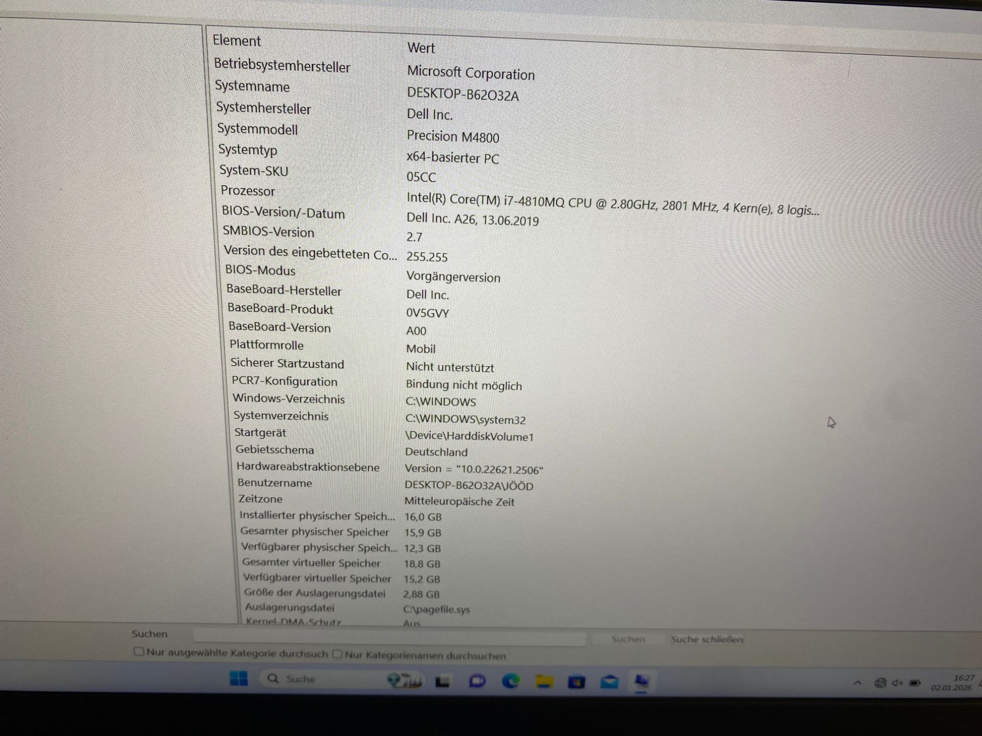 1063206Laptop Dell Precision M4800, Win10 inst., Intel Co3486