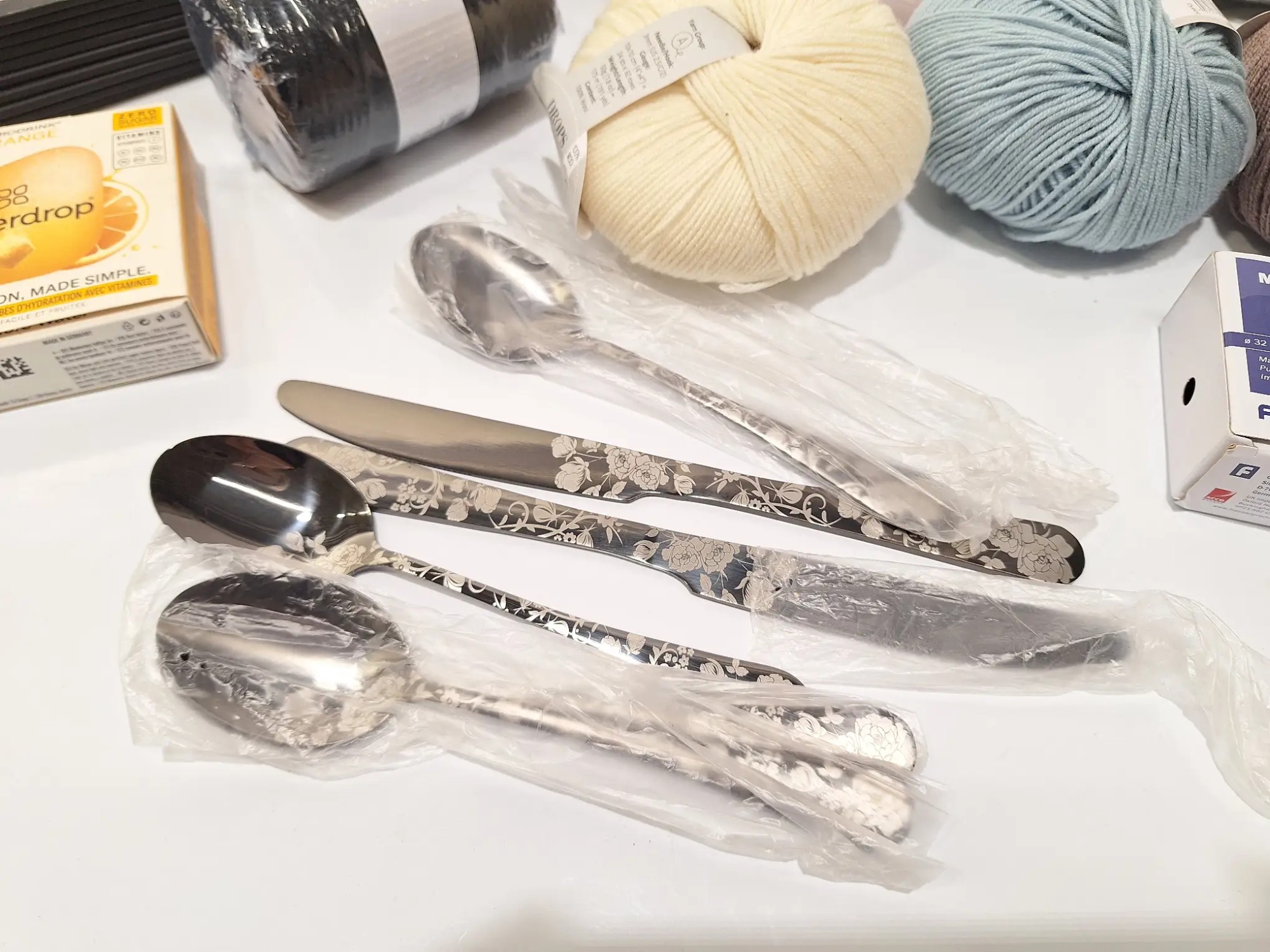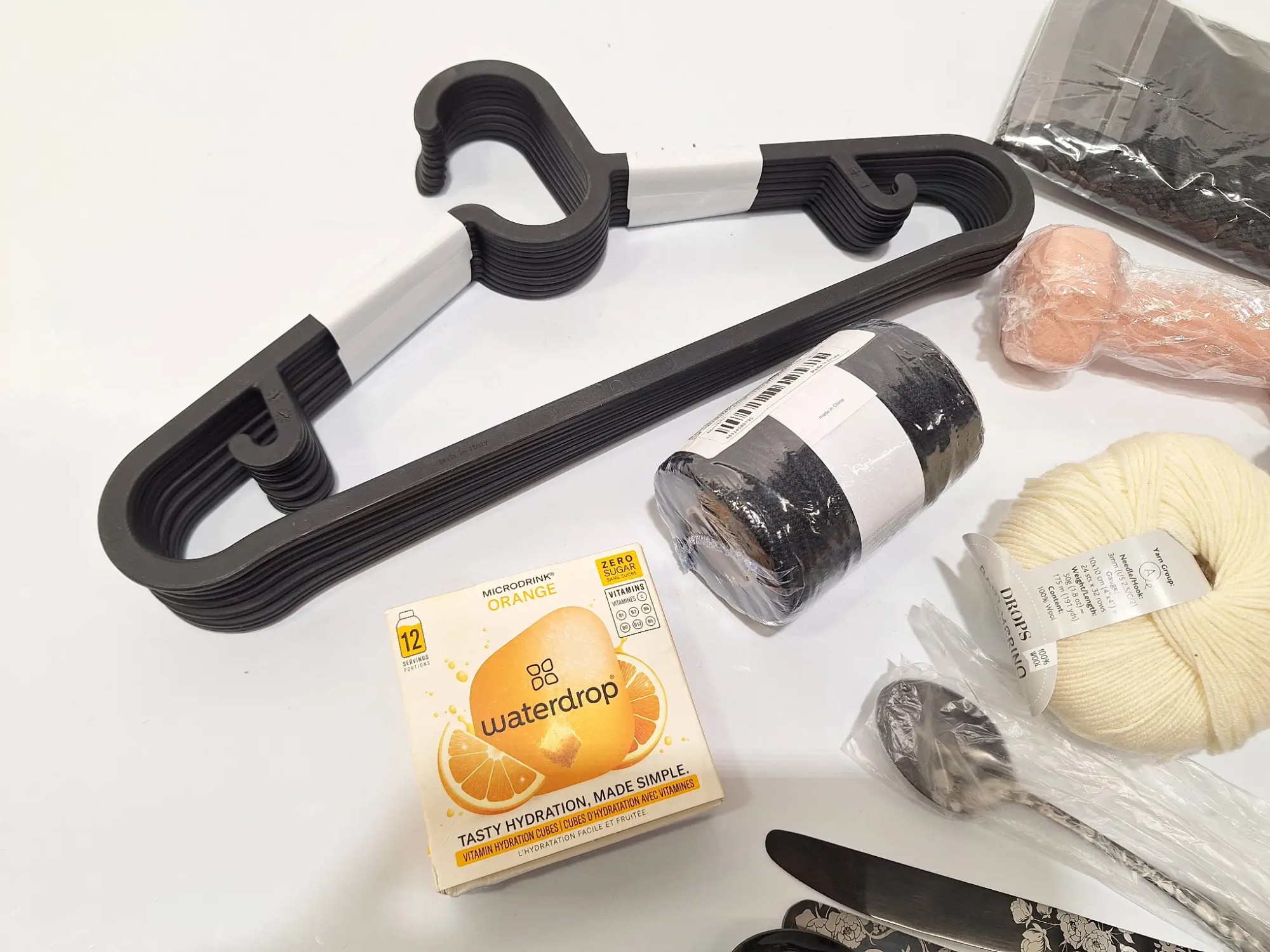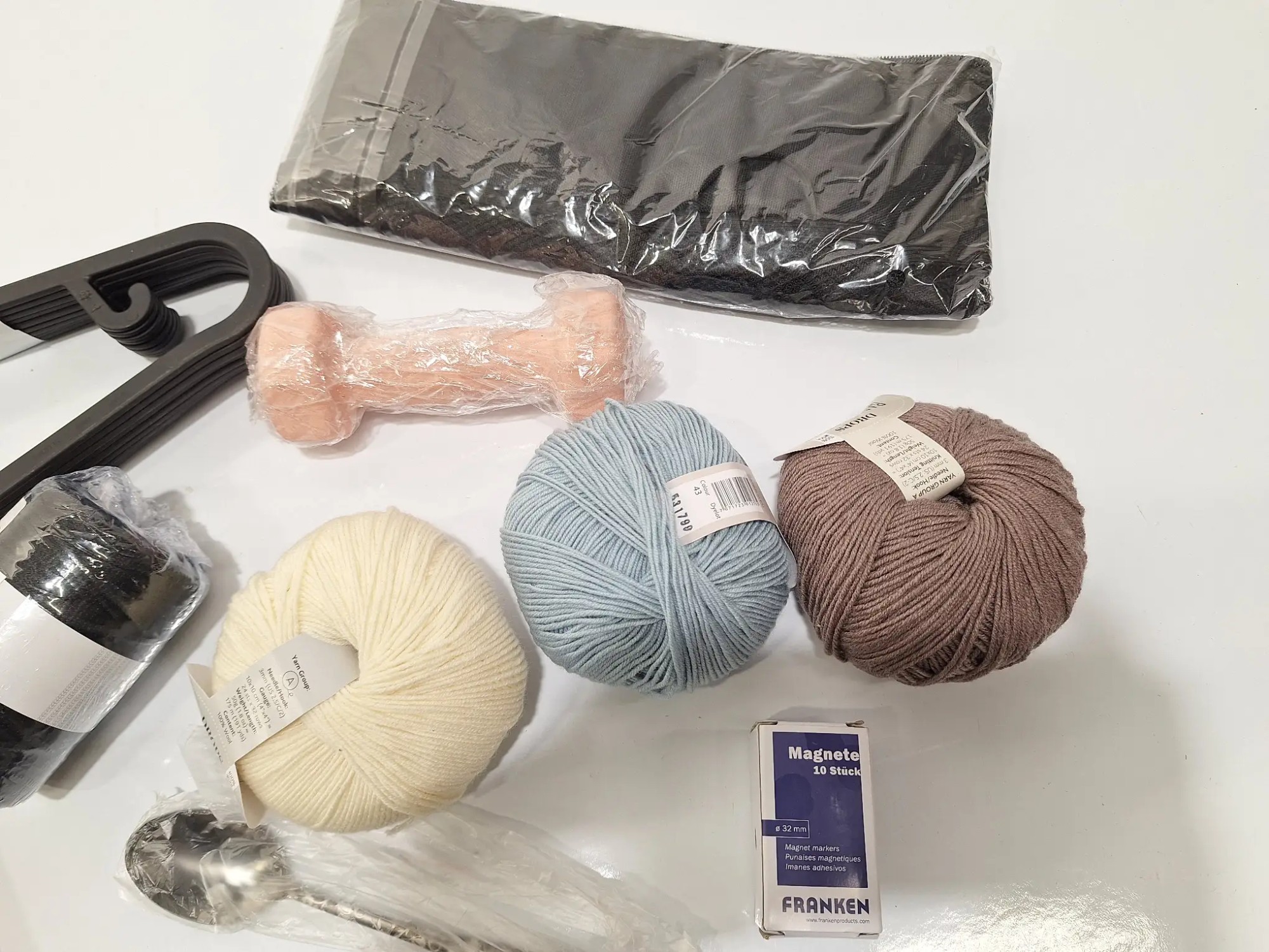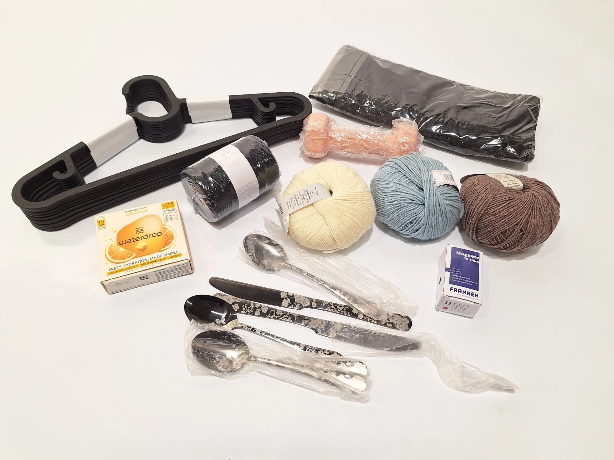 Klei­der­bü­gel, Wol­le, Be­steck, Ma­gne­te