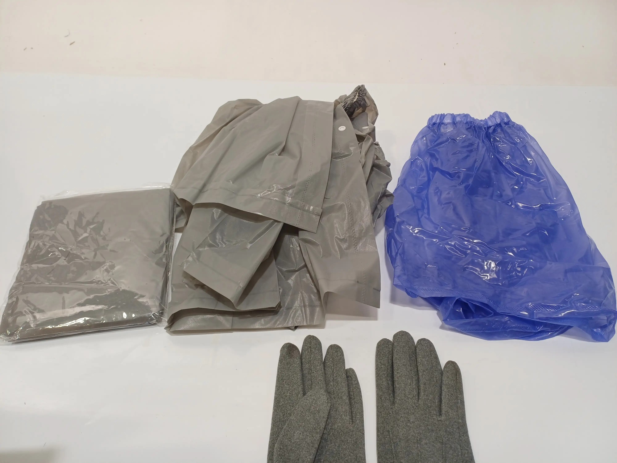 2 Stück Regenmäntel, 1 Stück Regenhose kurz, 1 Paar Handschuhe