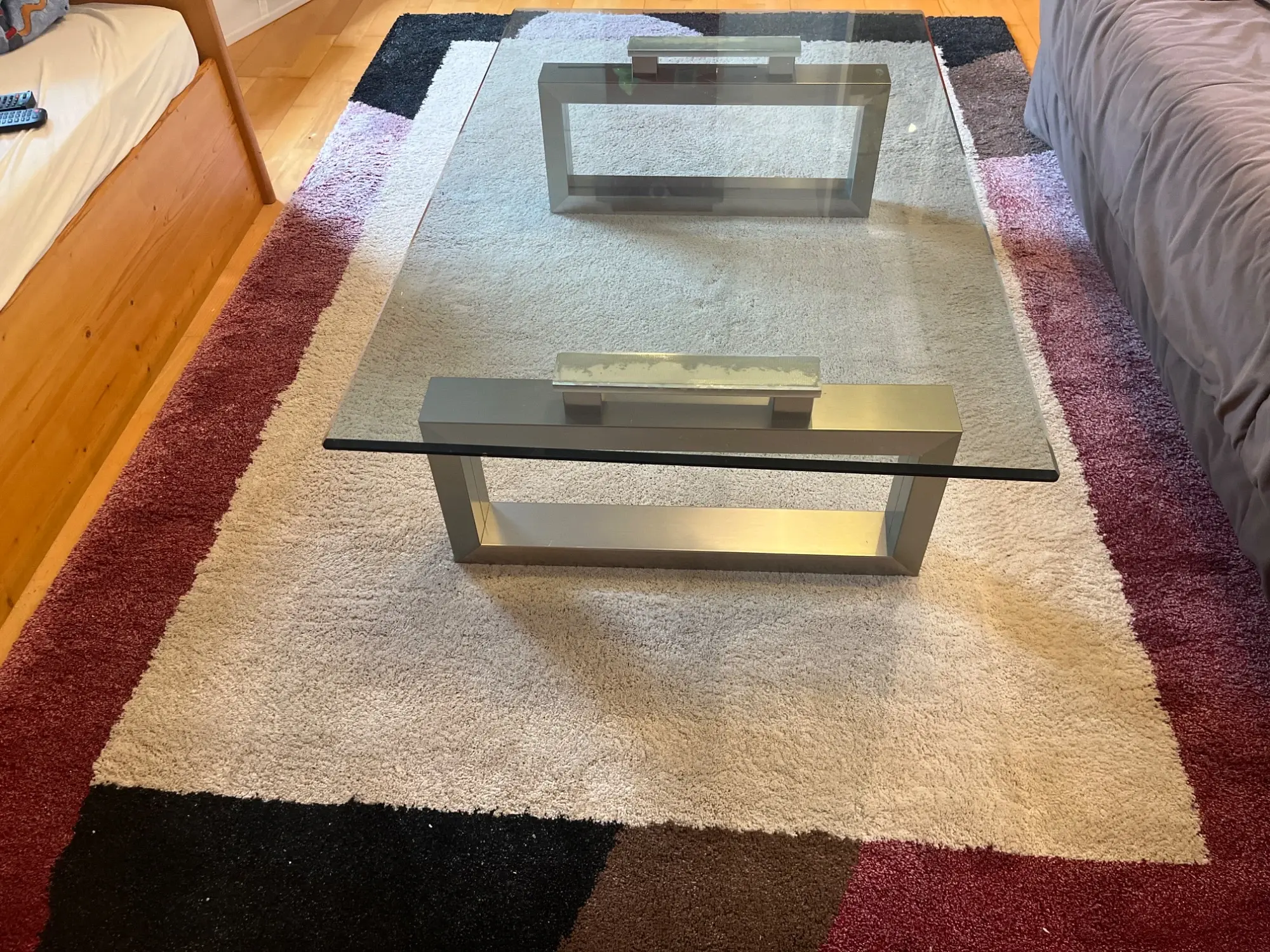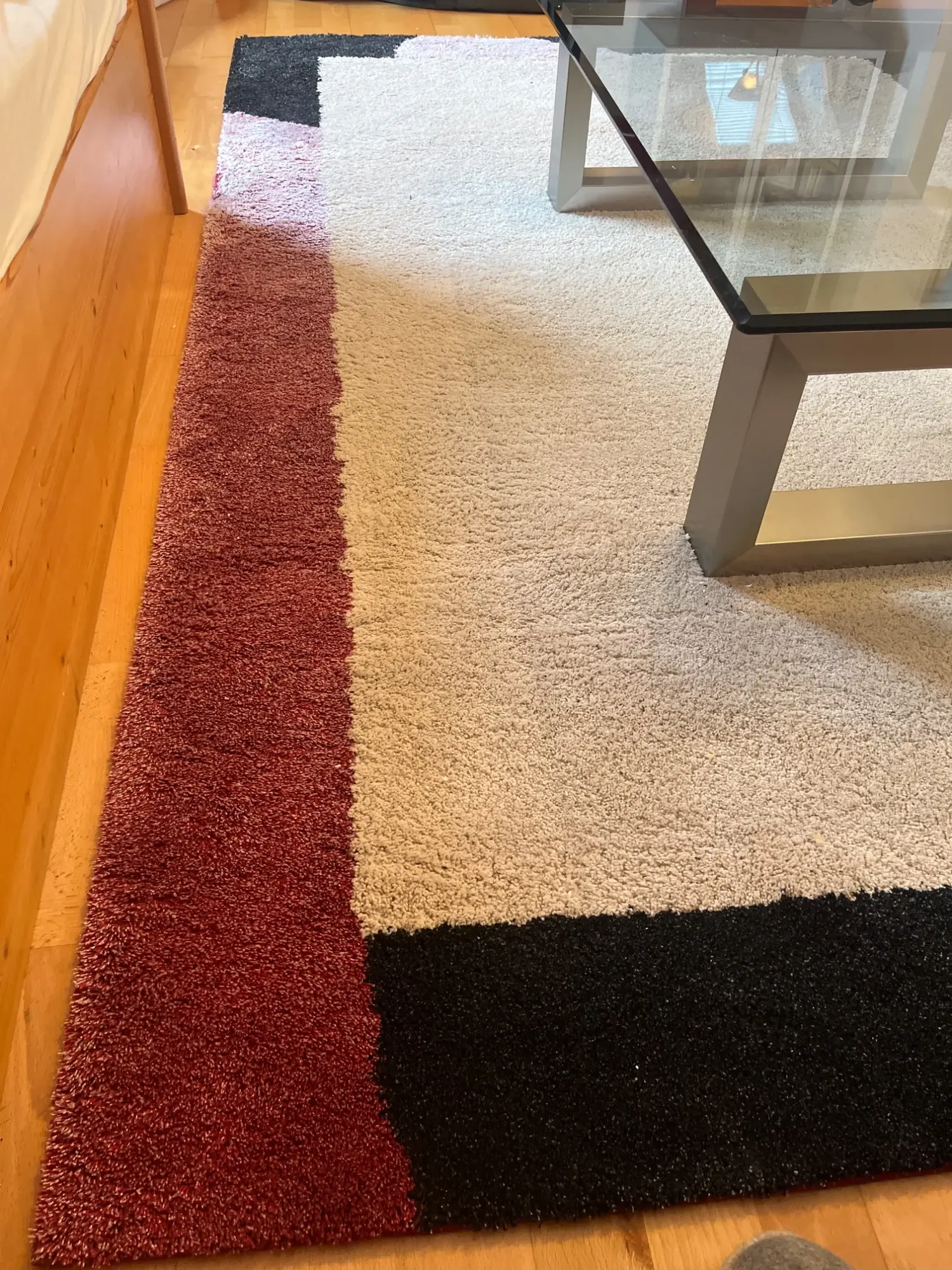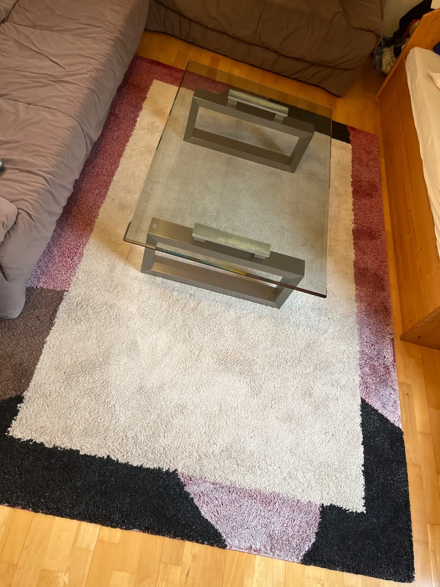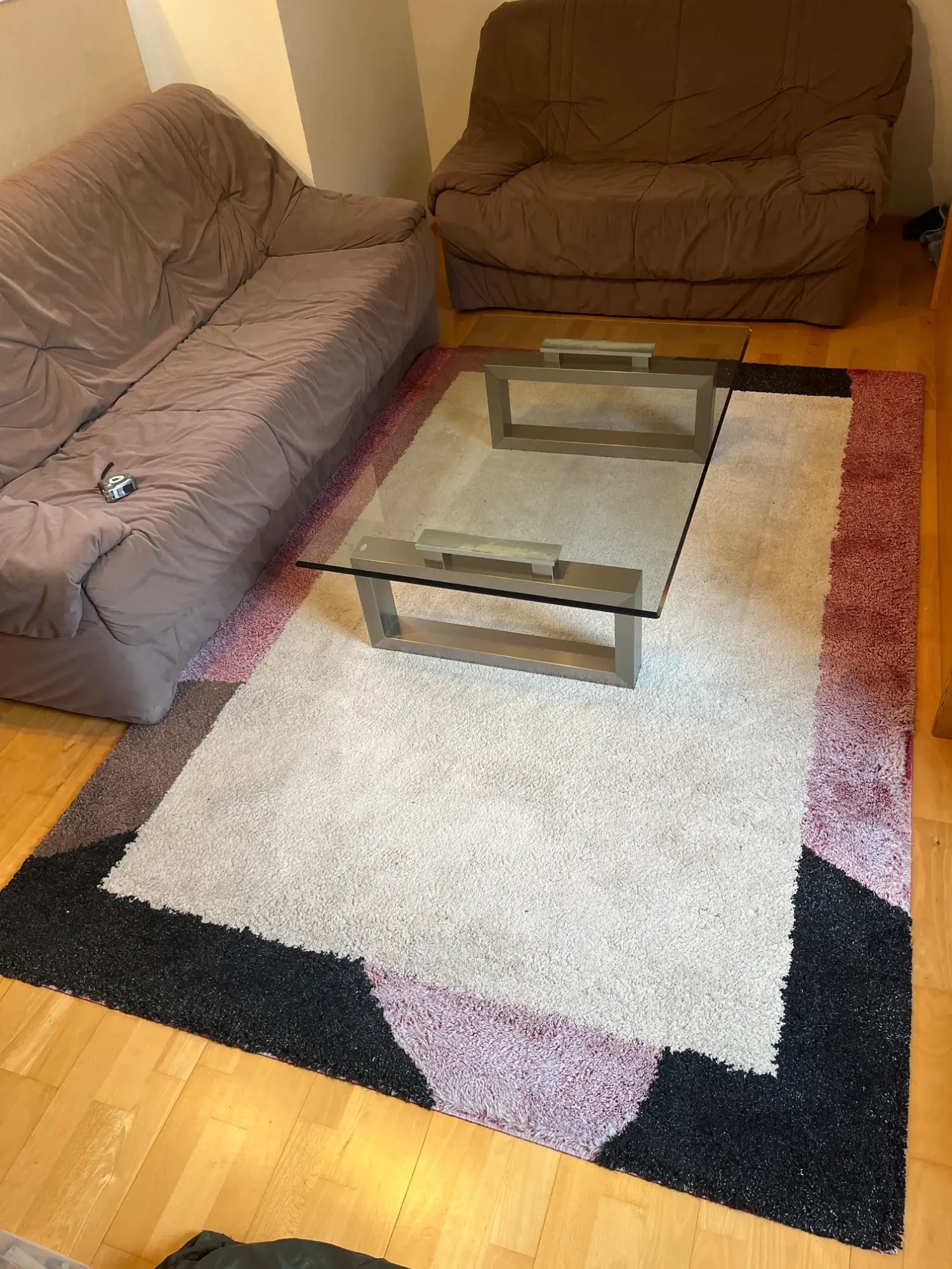 aus Zweit­wohn­sitz, Ma­ße in cm: 242X161; Far­ben: beige, schwarz, braun, dun­kel­rot, Ma­de in BEL­GI­UM, oh­ne Tisch, TIER­FREI­ER NICHT­RAU­CHER HAUS­HALT