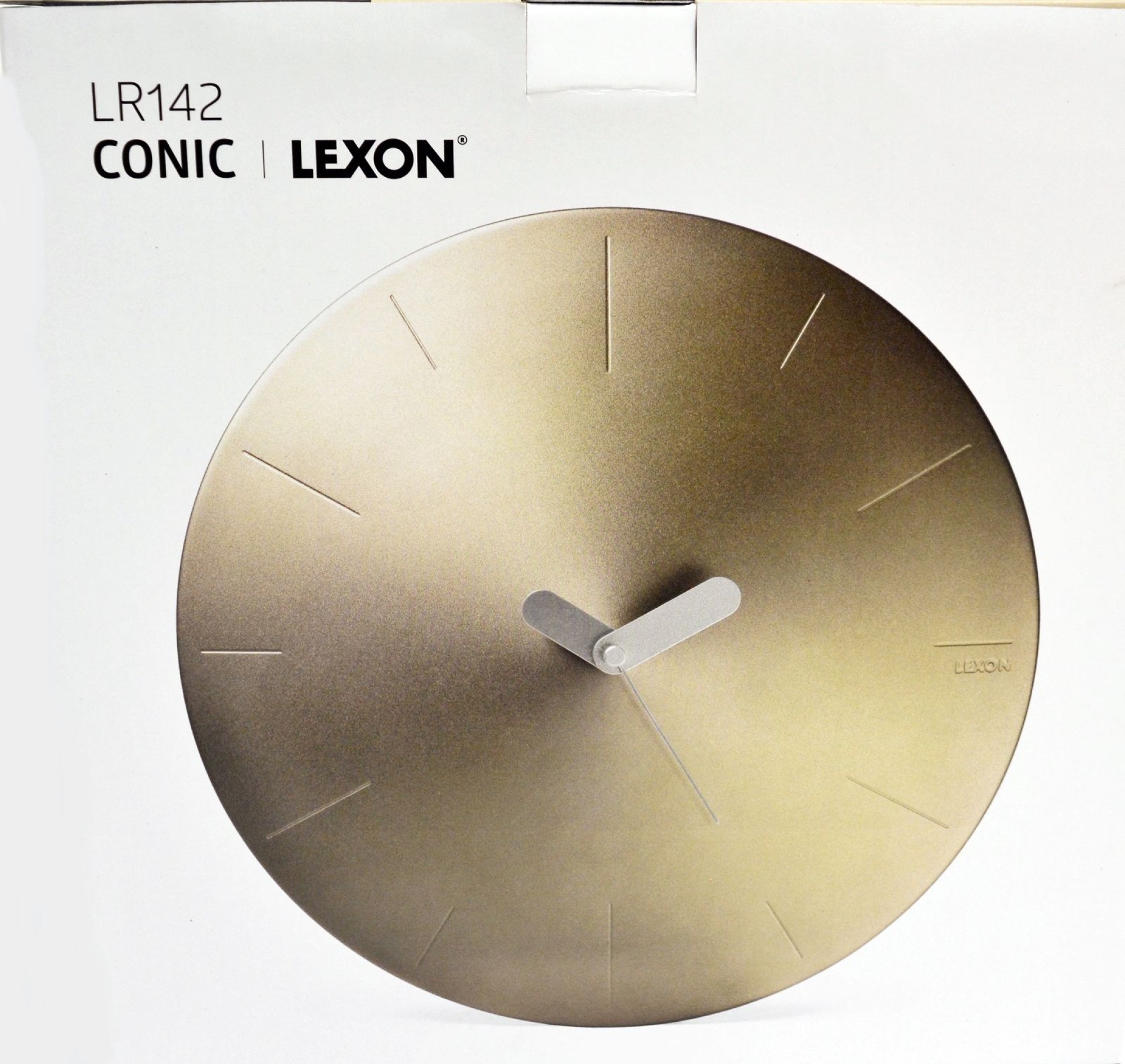 5x Neu Wanduhr Lexon Gold Conic Wall Clock Designer Uhr Jessica Herrera Analog Zeit (Quarzuhr) LR142 - Horloge Conic. Entworfen von Designerin Jessica Herrera. Die Conic-Uhr ist eine äußerst elegante analoge Wanduhr. Konische Form und Metallic-Finish. Die Conic-Uhr aus Aluminium und ABS ist mit zwei Zeigern mit abgerundeten Linien und einem Sekundenzeiger ausgestattet. Die Stunden werden mit leichten Rillen auf der Oberfläche des Zifferblatts mit Nüchternheit angezeigt. Farbe: Gold, Material: Aluminium, Kunststoff, Abmessungen: Ø 5,1 x 5,1 x 5,1