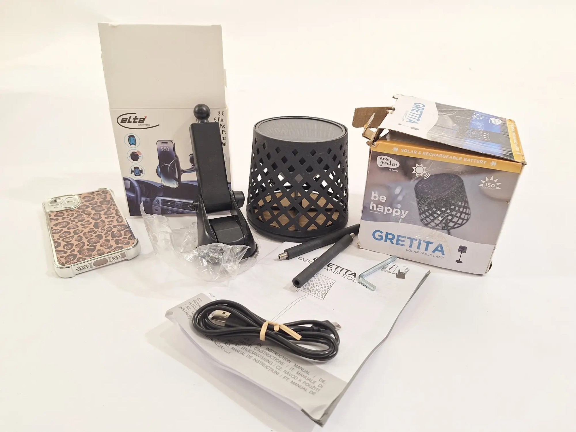 1xTischlampe, 1xHandyhalterung (unvollständig), 1xHandyhülle