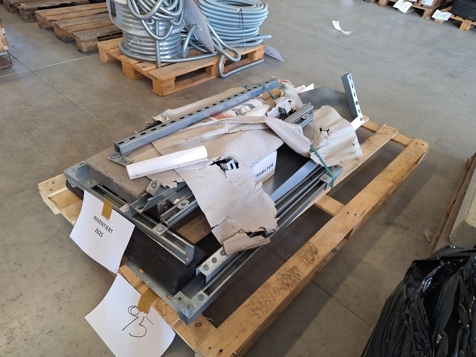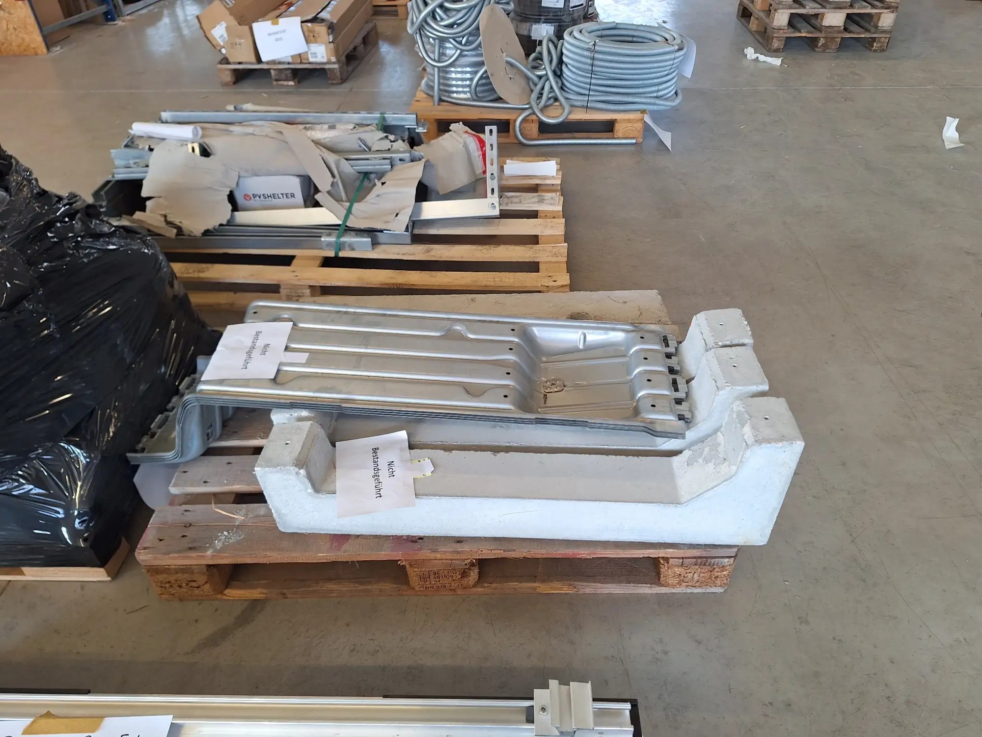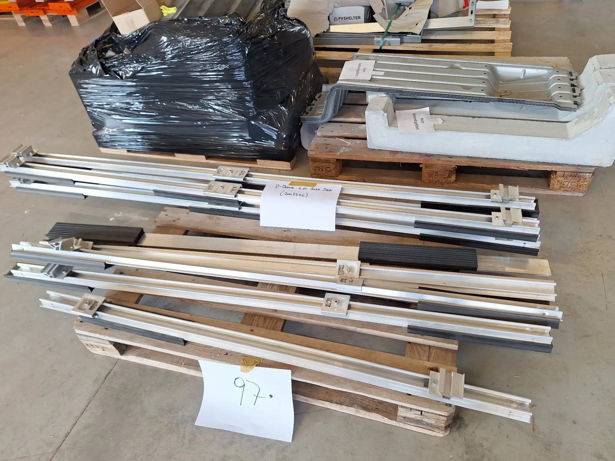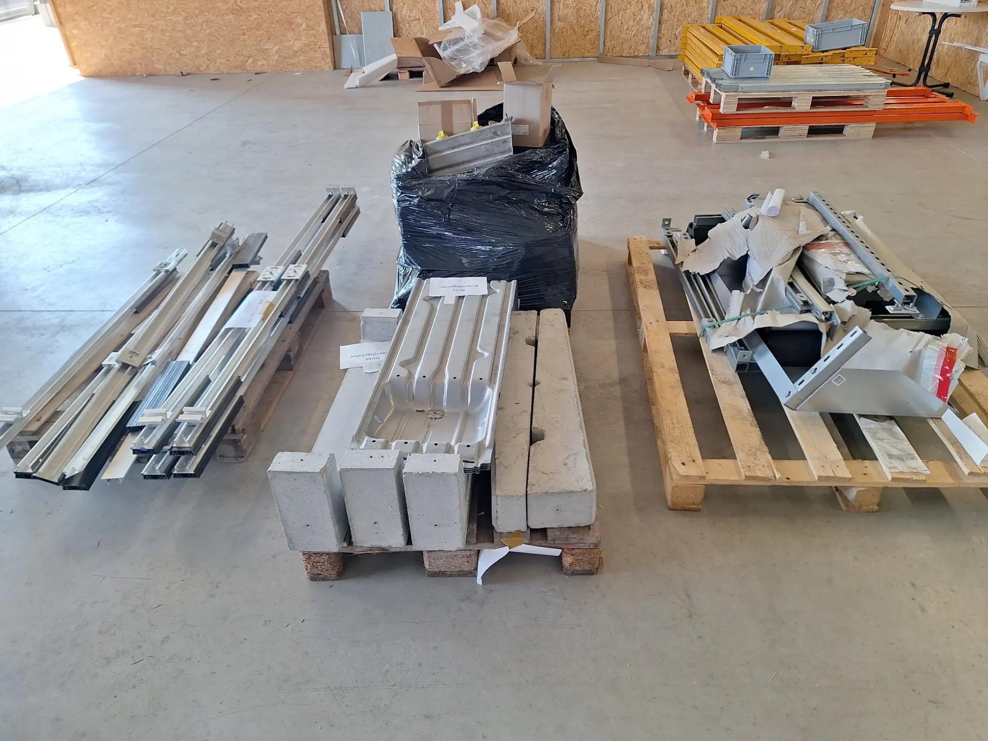 4 Pa­let­ten, Schie­nen, So­ckel, Be­fes­ti­gungs­ma­te­ri­al