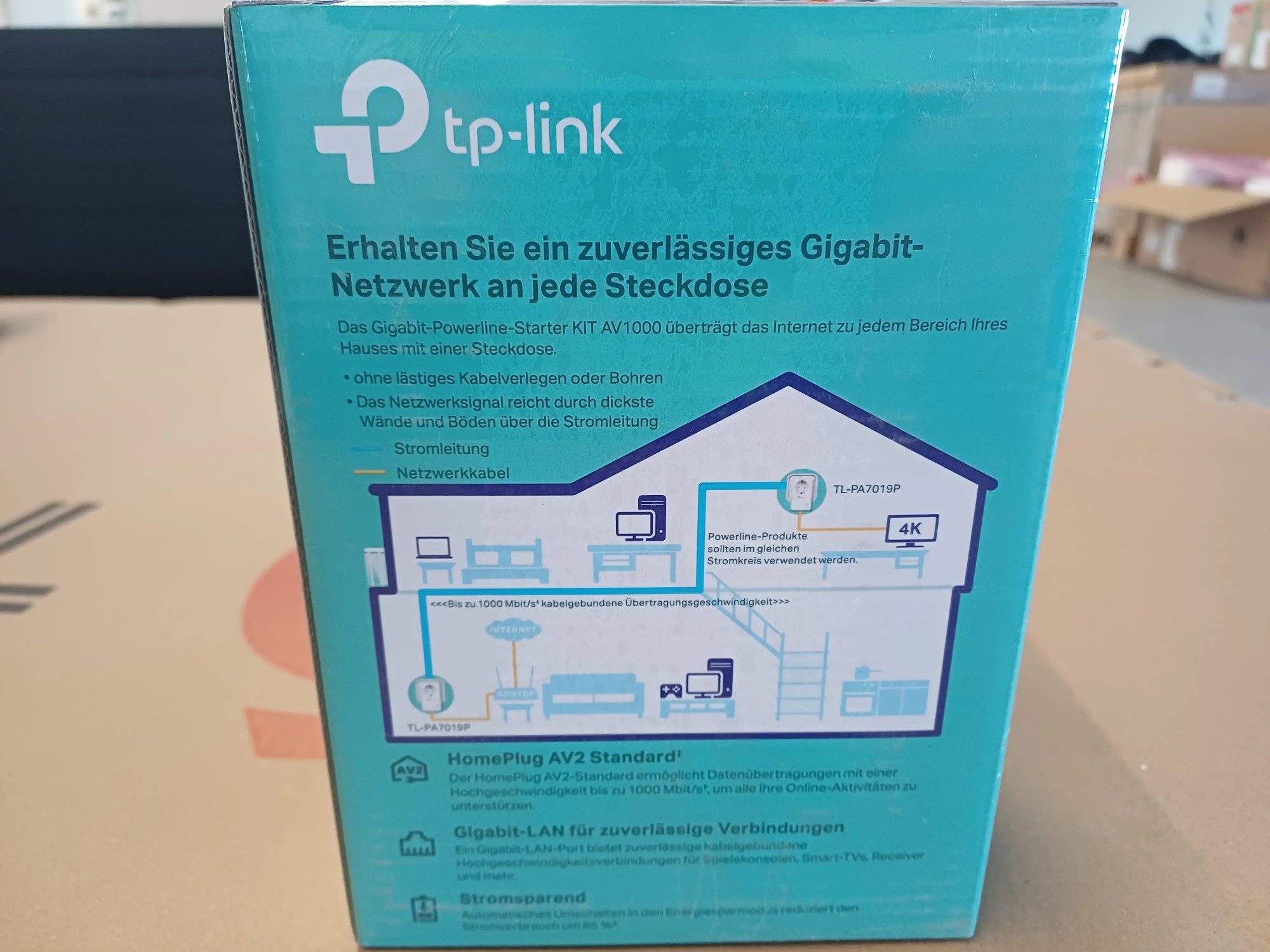 Power­li­ne-Ad­ap­ter mit Steck­do­se