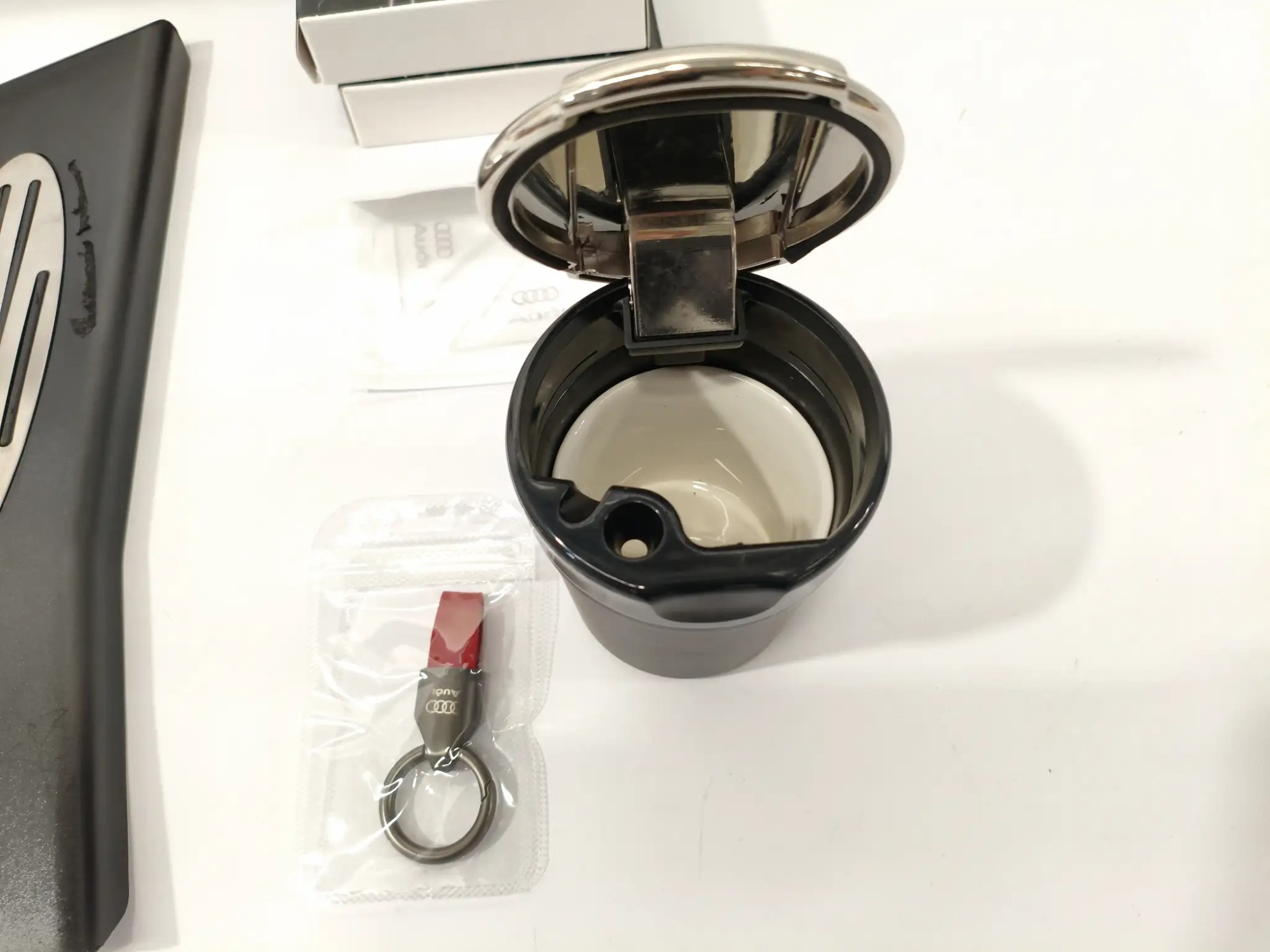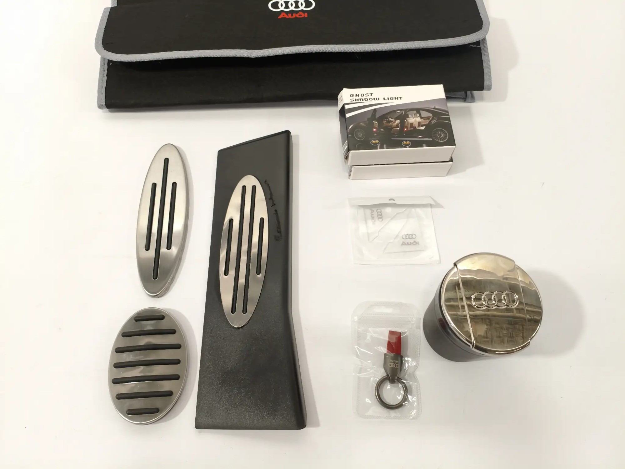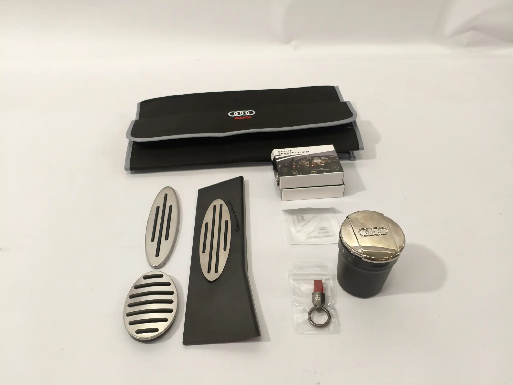 Pedalauflagen, Schlüsselanhänger, Kofferraumtasche, Becher