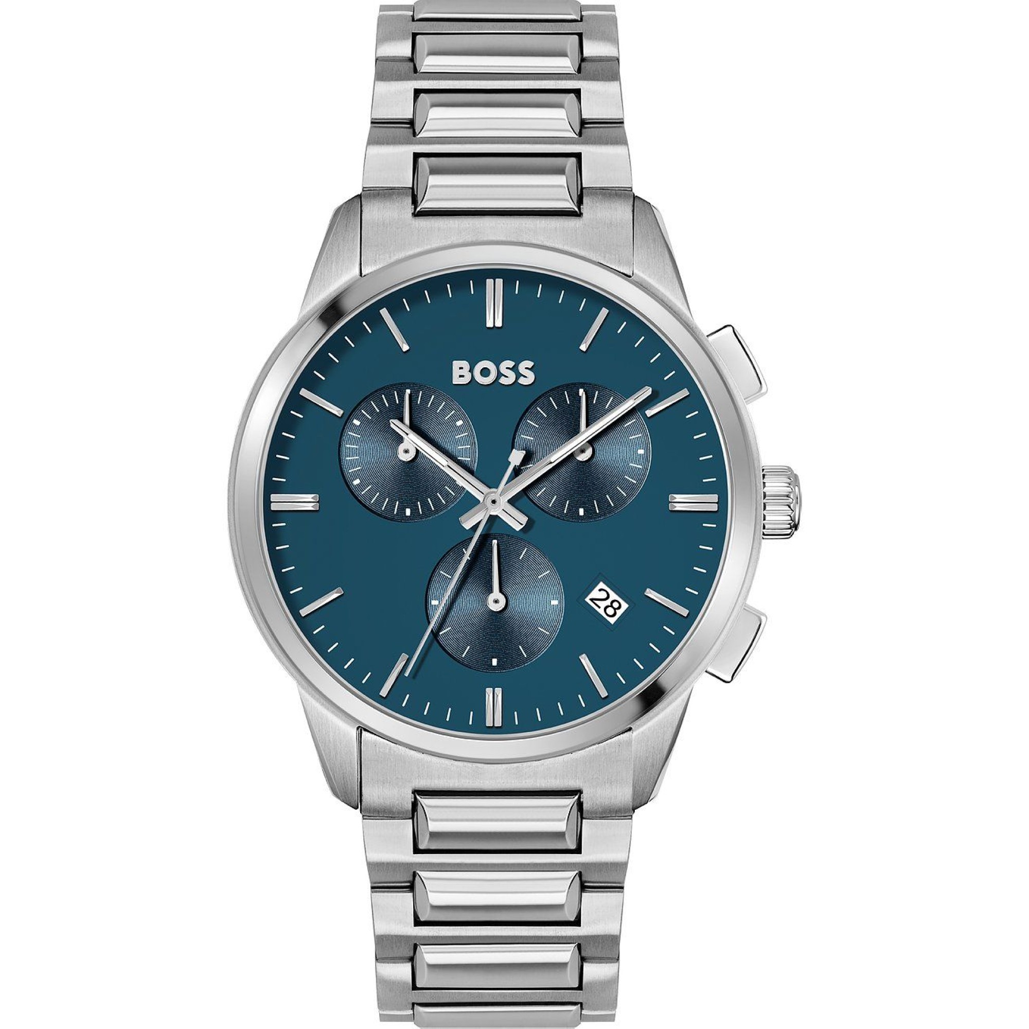 Neu OVP 1513927 Geschlecht Herren Uhrentyp Klassikuhr Gewicht 132 g Besonderheiten Kleine Sekunde Technische Merkmale Technische Ausführung Quarz Kalender Datum Zusatzfunktionen Stoppfunktion Gehäuse Material Edelstahl Oberflächenveredelung poliert Farbe silber Gehäusedurchmesser 43 mm Gehäusehöhe 10,3 mm Gehäuseform rund Wasserdichtigkeit 5 Bar Glasart Mineralglas Ziffernblattanzeige analog Ziffernblattfarbe blau Armband Bandart Gliederarmband Bandmaterial Edelstahl Bandfarbe silber Bandbreite 22 mm