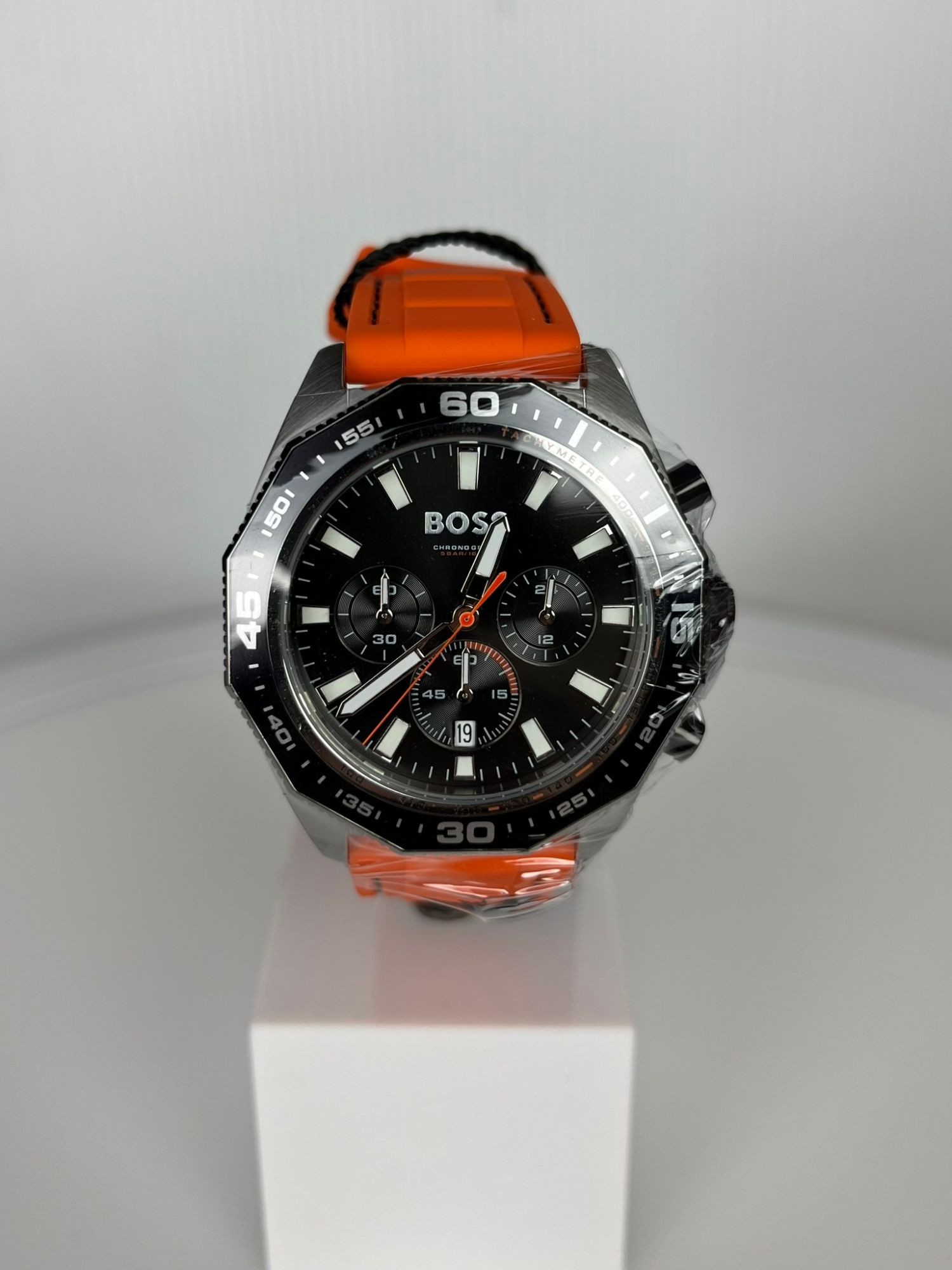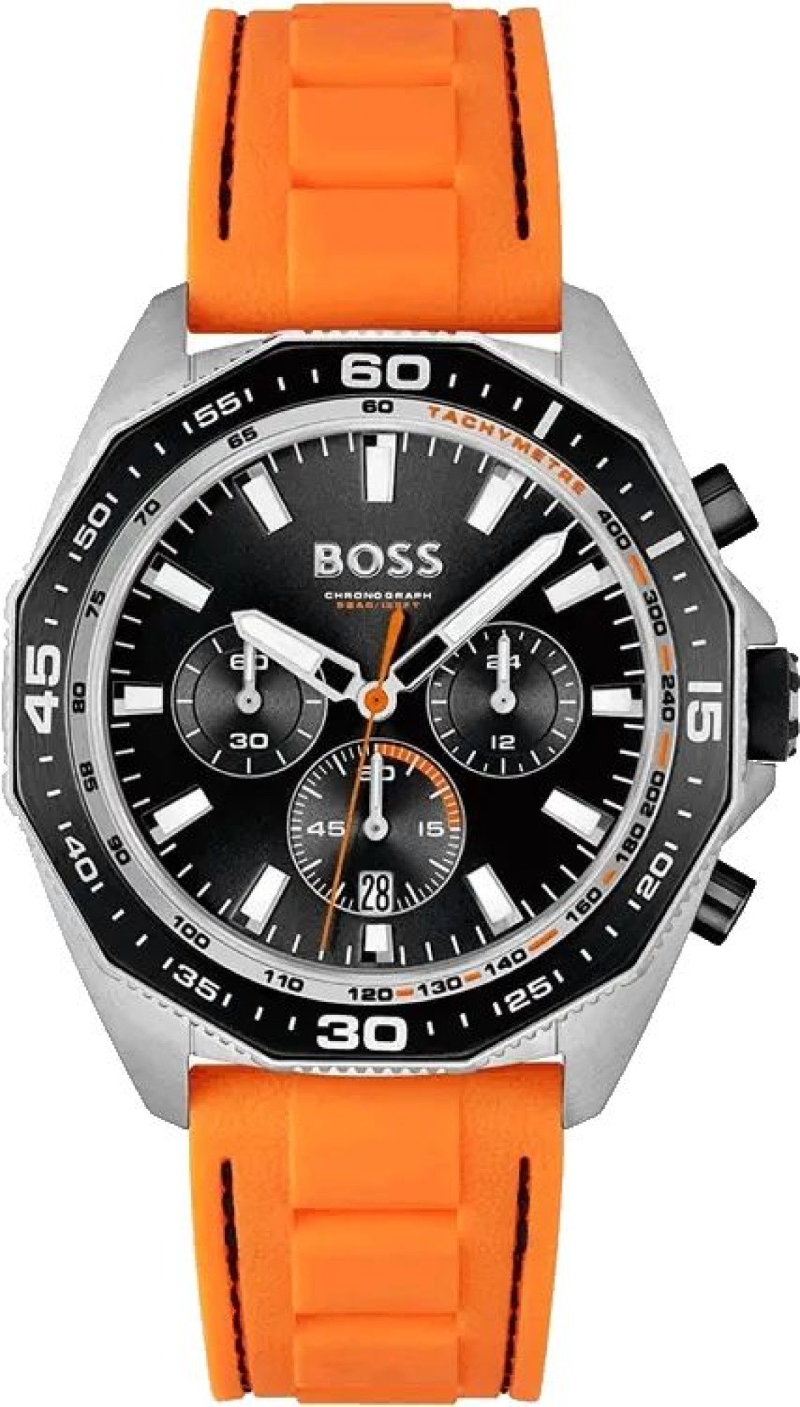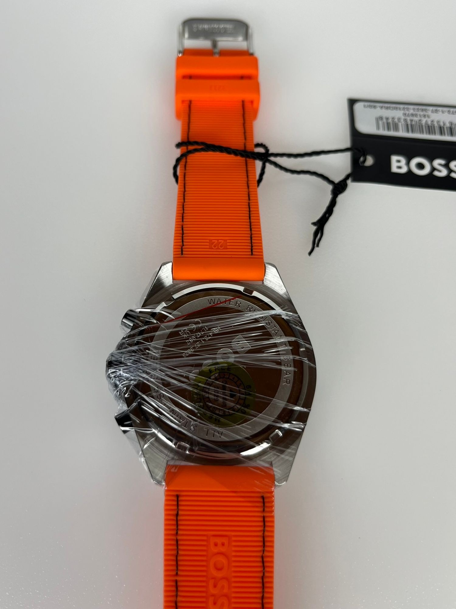 Neu OVP 1513970 GE­HÄU­SE - Ge­häu­se aus: Edel­stahl - Form des Ge­häu­ses: Rund - Far­be des Ge­häu­ses: Sil­ber - Glas: Mi­ne­ral­glas UHR­WERK - Art der An­zei­ge: Chro­no­graph - Uhr­werk: Quarz - Ka­len­der: Da­tum ZIF­FERN­BLATT - Far­be des Zif­fern­blatts: Schwarz ARM­BAND - Far­be des Arm­bands: Oran­ge - Schlie­ße: Dorn­schlie­ße - Arm­band aus: Si­li­kon WEI­TE­RE AN­GA­BEN - Pro­dukt: Uhr - Her­stel­ler: Boss - Ver­pa­ckung: Ori­gi­nal­ver­pa­ckung mit Do­ku­men­ten - Schlie­ße: Dorn­schlie­ße - TECH­NI­SCHE DA­TEN - Durch­mes­ser (oh­ne Kro­ne) in mm / Zoll: 44,00 / 1,73 - Hö­he in mm / Zoll: 10,00 / 0,39 - Was­ser­dicht bis (bar): 5,00 - Brei­te des Arm­bands in mm / Zoll: 22,00 / 0,87 - Ge­wicht in g / un­zen: 96,00 / 3,39