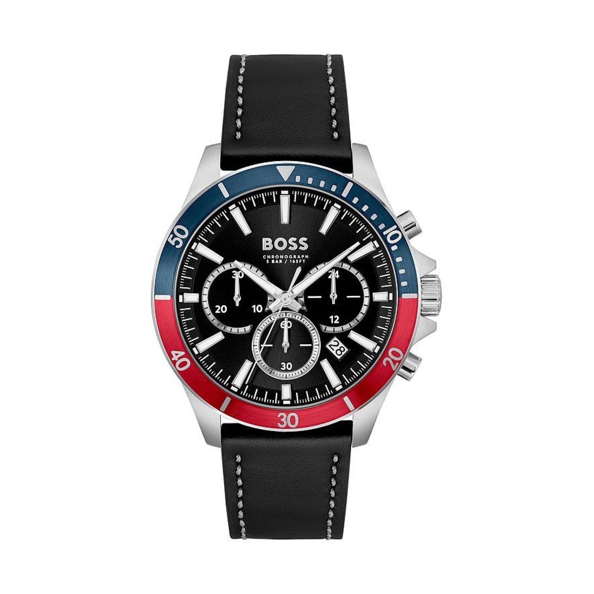 Neu OVP 1514099 Geschlecht Herren Uhrentyp Klassikuhr Gewicht 76 g Besonderheiten Leuchtzeiger Technische Merkmale Werk Epson Kalender Datum Zusatzfunktionen Stoppfunktion Gehäuse Material Edelstahl Optik poliert Farbe silber Gehäusedurchmesser 50 mm Gehäusehöhe 11 mm Gehäuseform rund Lünettenfarbe bicolor Wasserdichtigkeit 5 Bar Glasart Mineralglas Ziffernblattanzeige analog Ziffernblattfarbe schwarz Armband Bandart Sportarmband Bandmaterial Leder Bandfarbe schwarz Bandbreite 22 mm