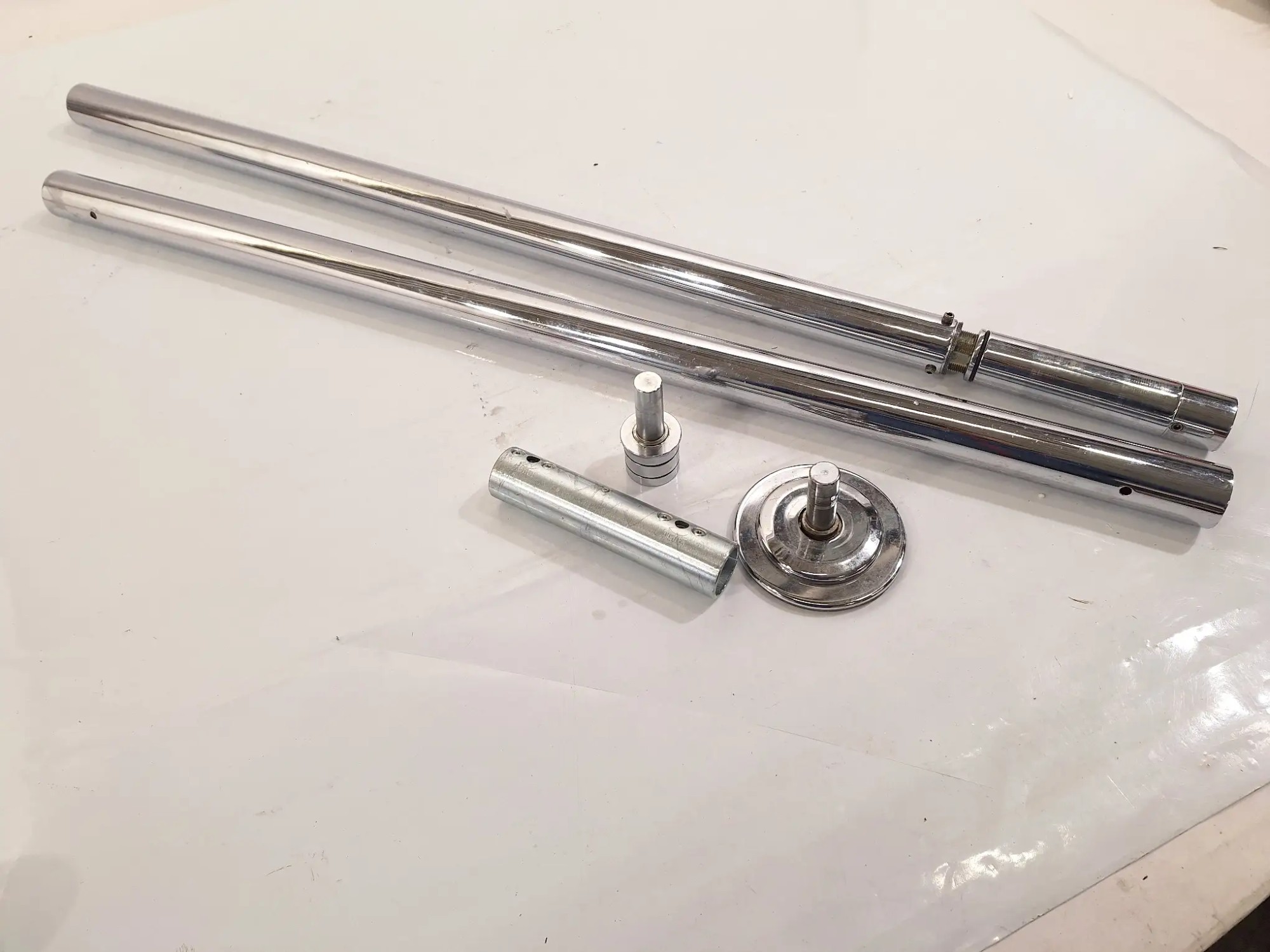 Länge124cmxBreite 5cm, 2 mal ein 110cmx5cm Rohr (möglicherweise nicht kompatibel + Kratzer etc.), ausfahrbar, inkl. 3 Rohre