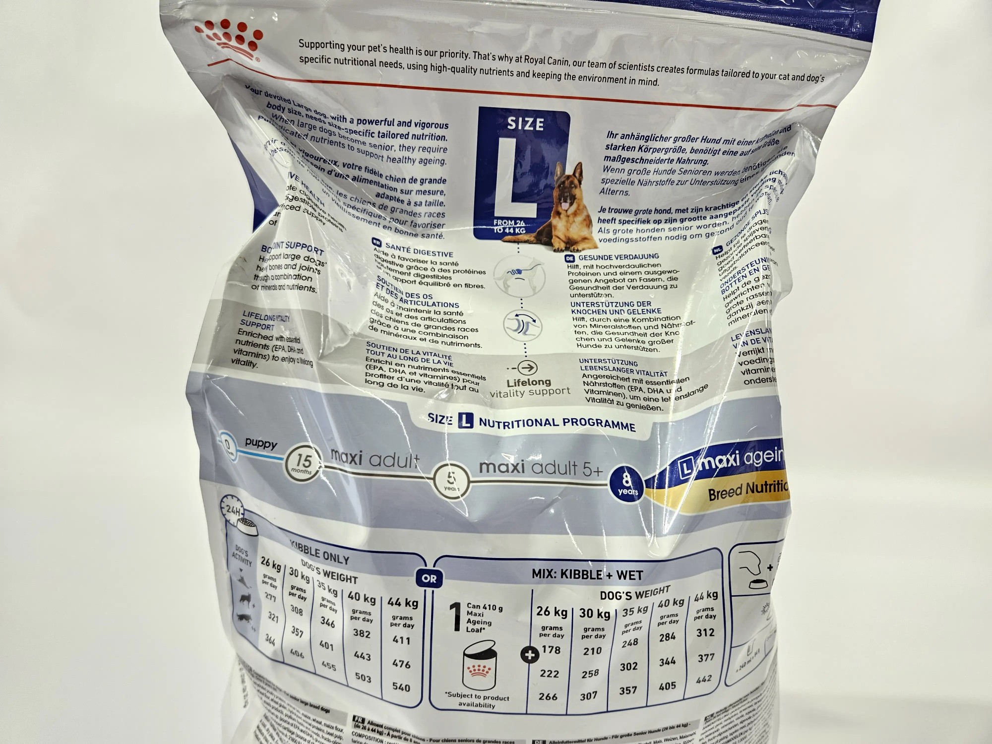 3 kg, für Hun­de zwi­schen 26-44 kg ab ei­nem Al­ter von 8 Jah­ren
