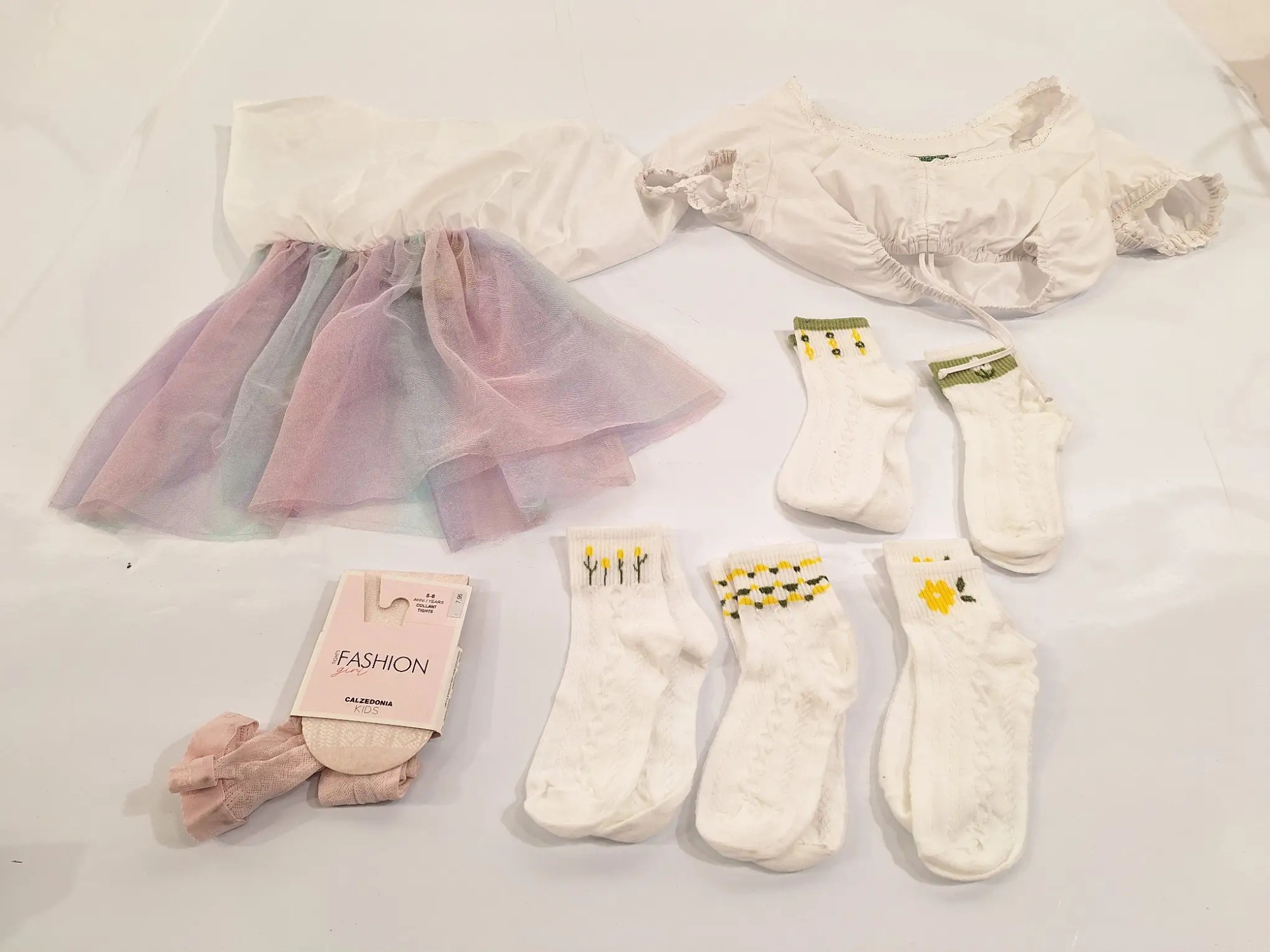 1xKleid Größe 7-8Y, 1xStrumpfhose Größe 5-8Y, 5xPaar Socken, 1xOberteil Größe 38
