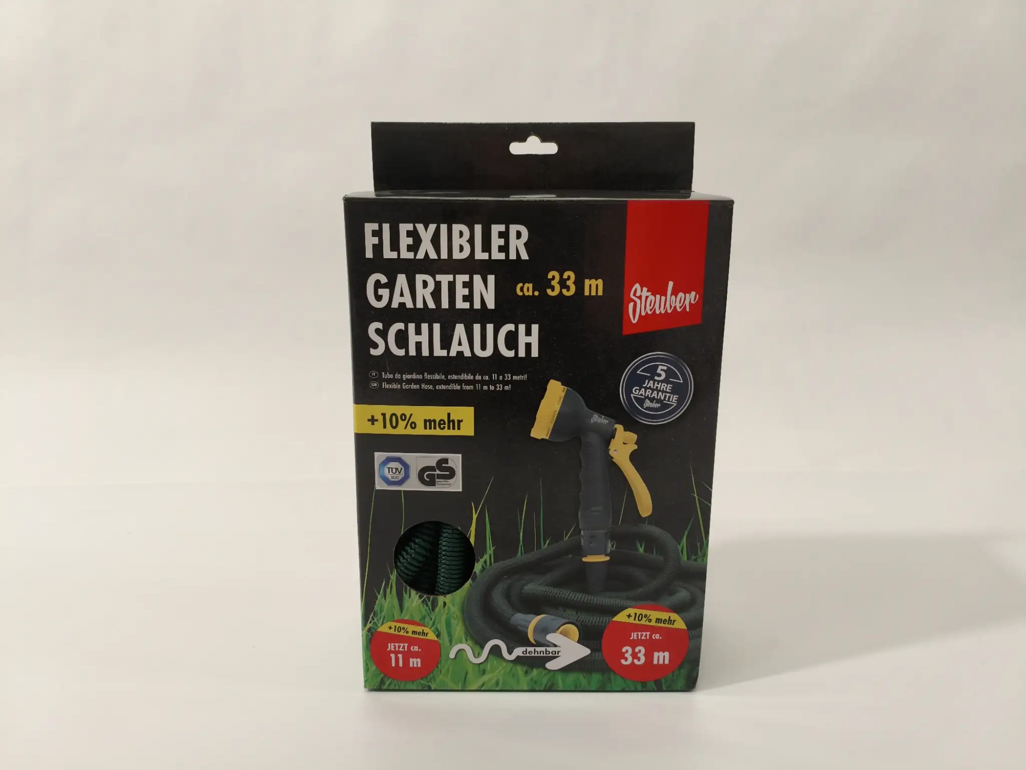 Flexibler Gartenschlauch mit Multifunktionssprühkopf, ca. 33 m