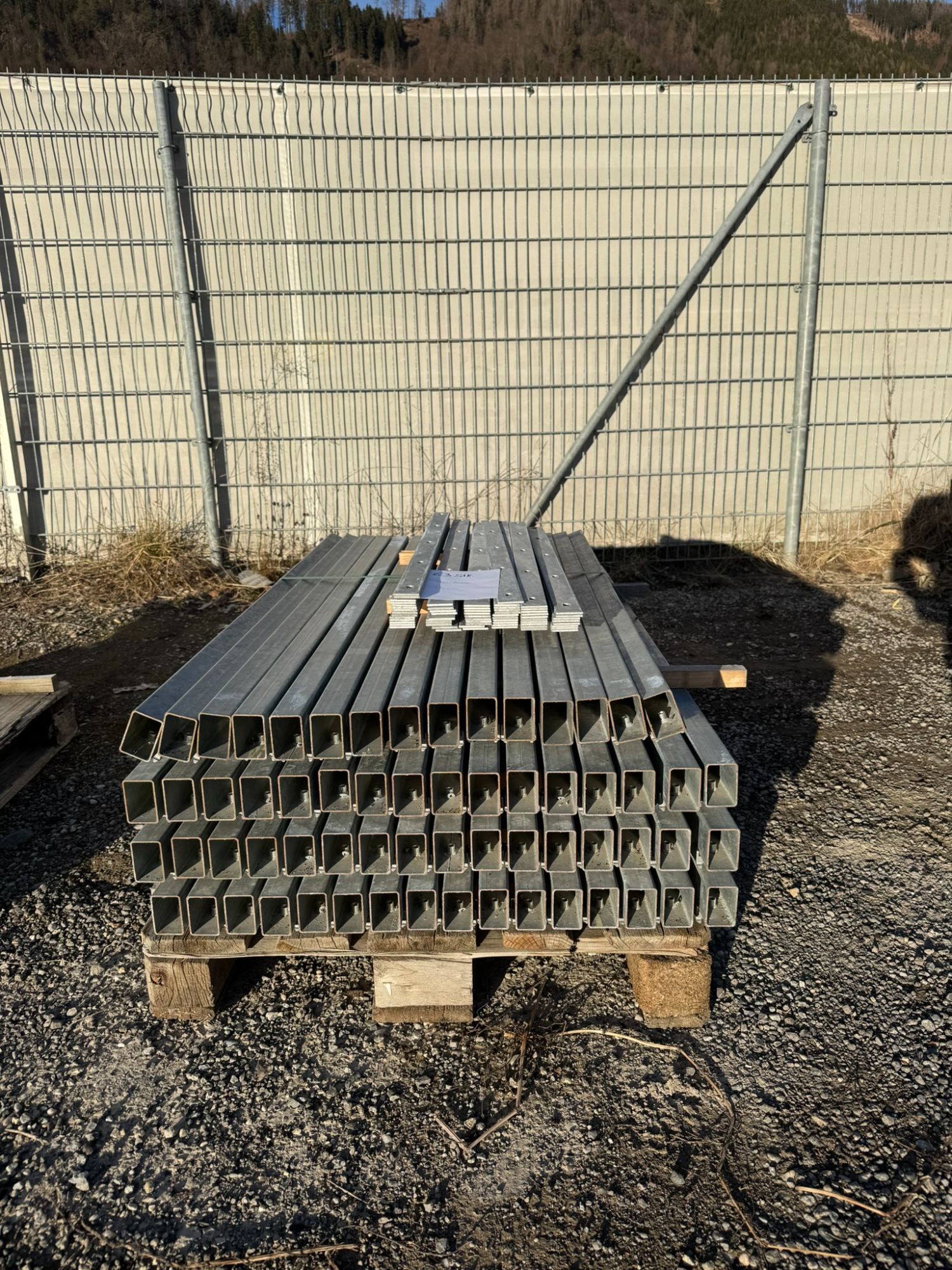 63 Stück - für Zaun­hö­he 83 cm - Län­ge: 130 cm - Recht­eck­pro­fil: 60×40 mm - ver­zinkt - inkl. Be­fes­ti­gungs­ma­te­ri­al und Ab­deck­leis­ten