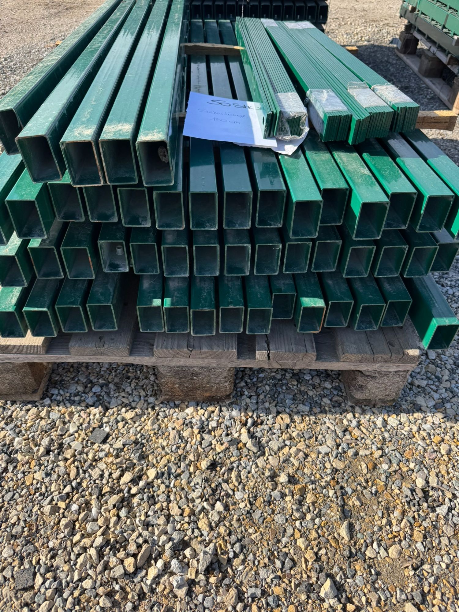 50 Stück - für Zaunhöhe 83 cm - Länge: 130 cm - Rechteckprofil: 60×40 mm - 6005 moosgrün - inkl. Befestigungsmaterial und Abdeckleisten