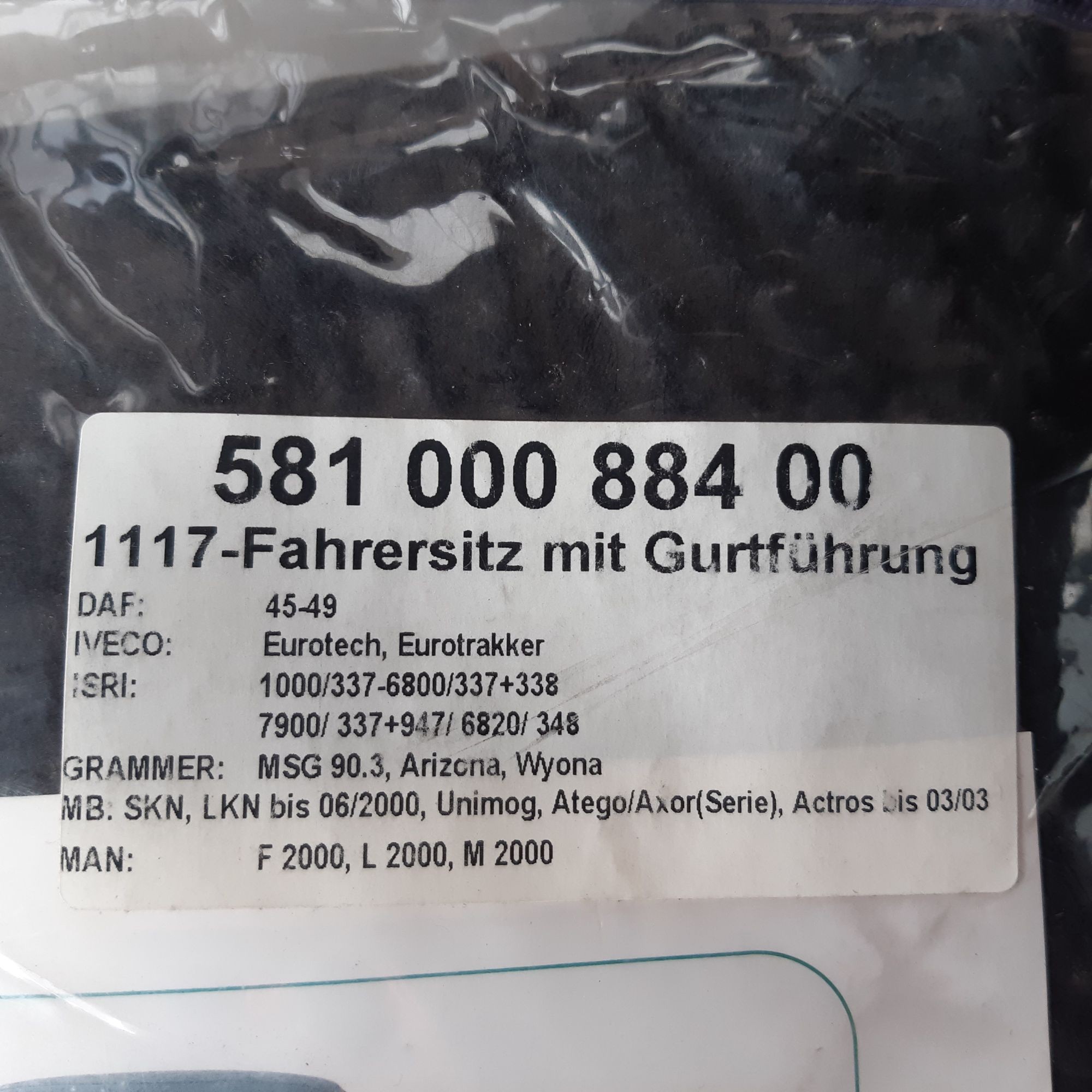 210.067: 1 Stk. Schonbezug für Fahrersitz mit Gurtführung