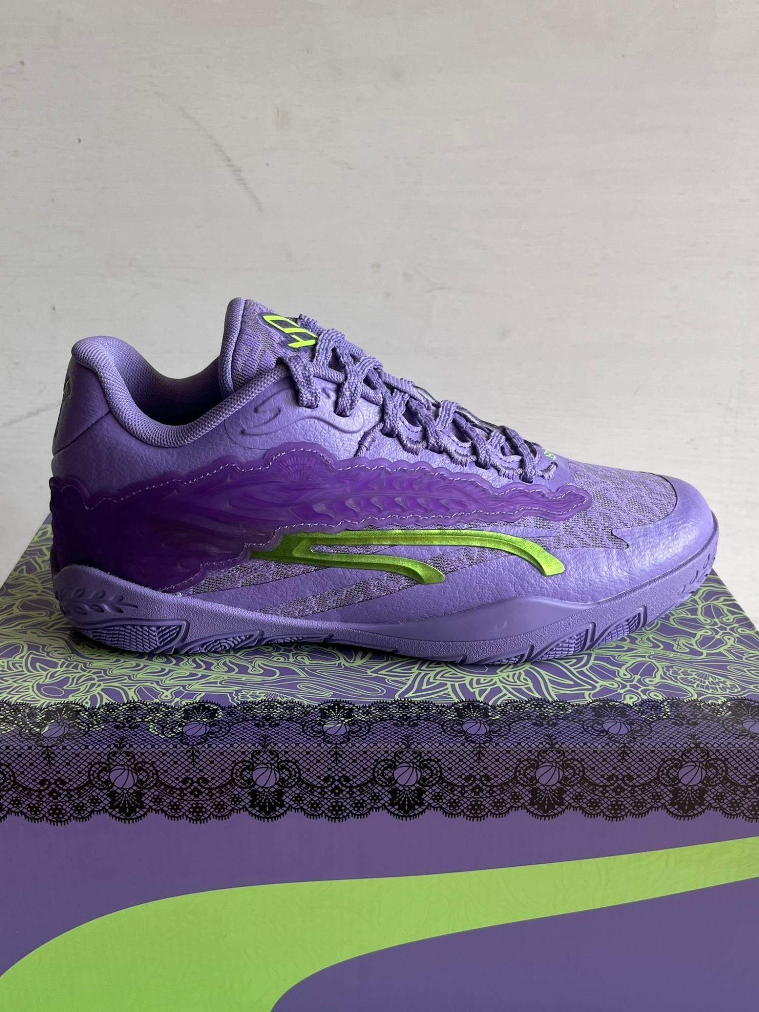 Unisex 311346-01 Neu OVP Der PU­MA Wo­men's Ste­wie 3 Lace Em Up ist Bre­an­na Ste­warts drit­ter Si­gna­tu­re-Schuh und ver­fügt über ein Ober­ma­te­ri­al aus la­ven­del­far­be­nem Me­sh mit naht­lo­sen Over­lays und ei­nem TPU-Stüt­z­ele­ment an der Au­ßen­sei­te. Kon­tras­tie­ren­de grü­ne Ak­zen­te fin­den sich auf dem cha­rak­te­ris­ti­schen Form­strip, der in ge­form­tem TPU um­ran­det ist, so­wie auf Bre­an­nas per­sön­li­chem Lo­go auf der Zun­ge. Leich­tes Dämp­fungs­ver­hal­ten wird durch ei­ne Drop-in-Mit­tel­soh­le ge­bo­ten, die ei­ne Tor­si­ons­plat­te und NI­TRO­FO­AM-Dämp­fung im Vor­fuß­be­reich um­fasst.