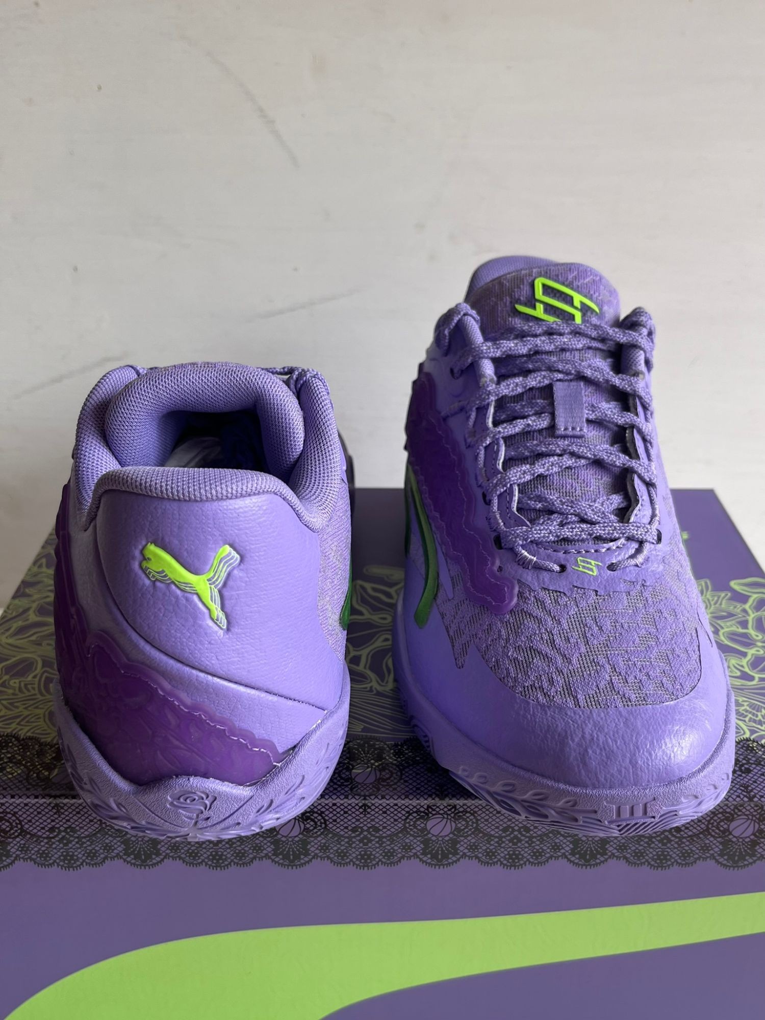 Unisex 311346-01 Neu OVP Der PU­MA Wo­mens Ste­wie 3 Lace Em Up ist Bre­an­na Ste­warts drit­ter Si­gna­tu­re-Schuh und ver­fügt über ein Ober­ma­te­ri­al aus la­ven­del­far­be­nem Me­sh mit naht­lo­sen Over­lays und ei­nem TPU-Stüt­z­ele­ment an der Au­ßen­sei­te. Kon­tras­tie­ren­de grü­ne Ak­zen­te fin­den sich auf dem cha­rak­te­ris­ti­schen Form­strip, der in ge­form­tem TPU um­ran­det ist, so­wie auf Bre­an­nas per­sön­li­chem Lo­go auf der Zun­ge. Leich­tes Dämp­fungs­ver­hal­ten wird durch ei­ne Drop-in-Mit­tel­soh­le ge­bo­ten, die ei­ne Tor­si­ons­plat­te und NI­TRO­FO­AM-Dämp­fung im Vor­fuß­be­reich um­fasst.