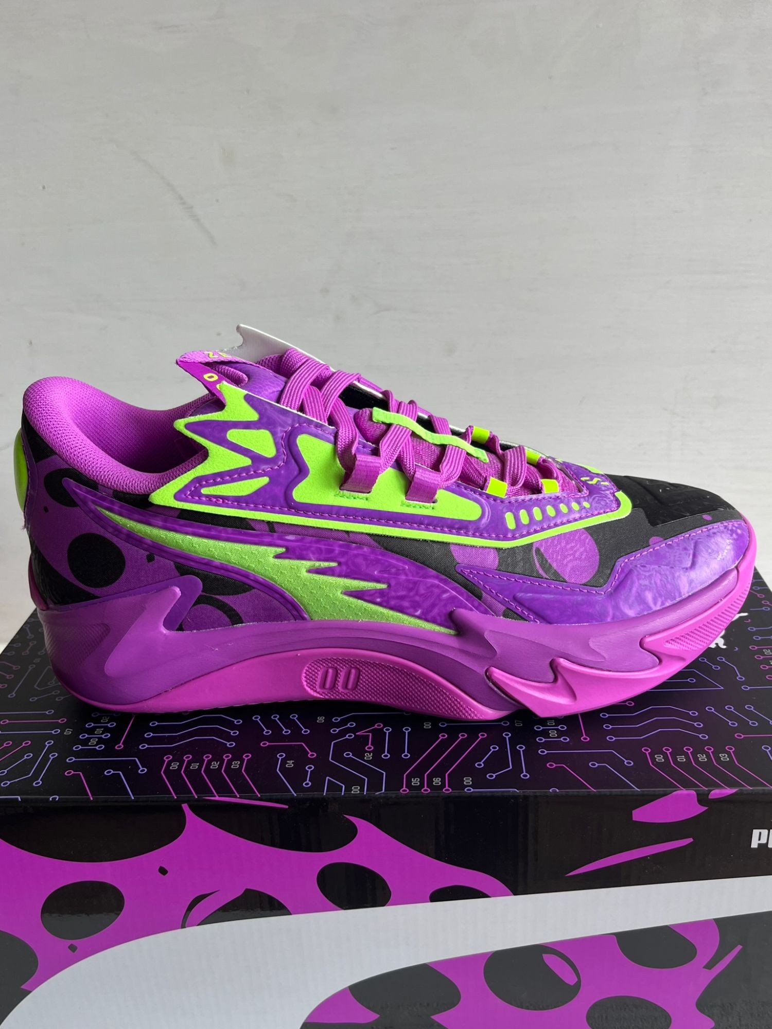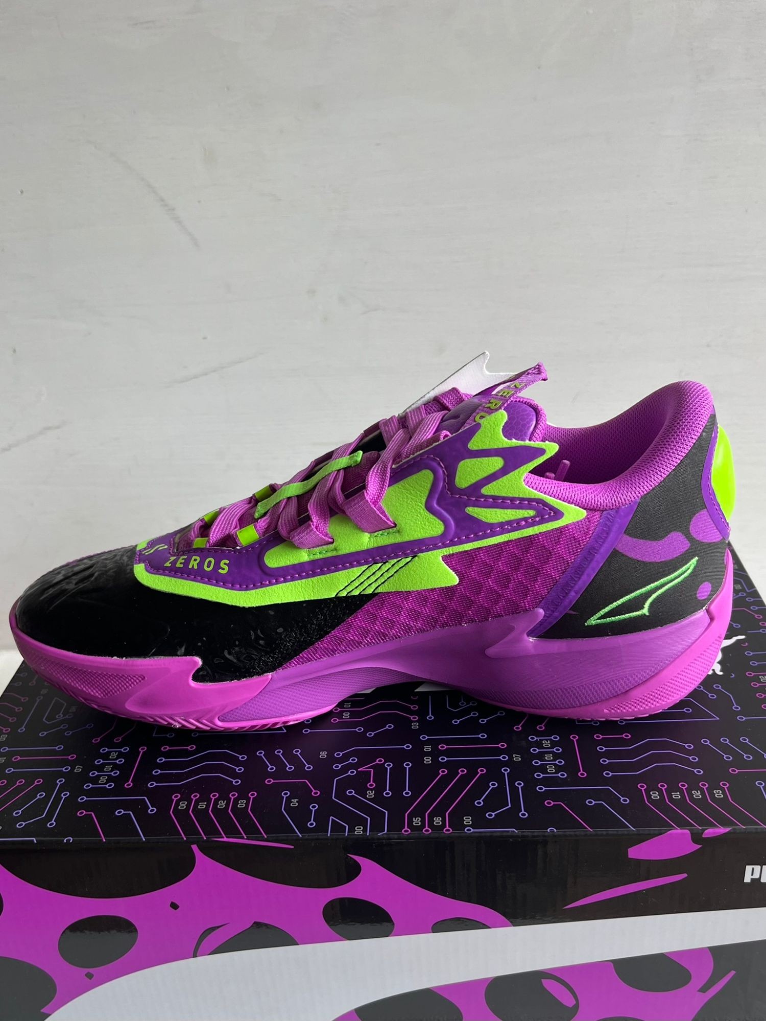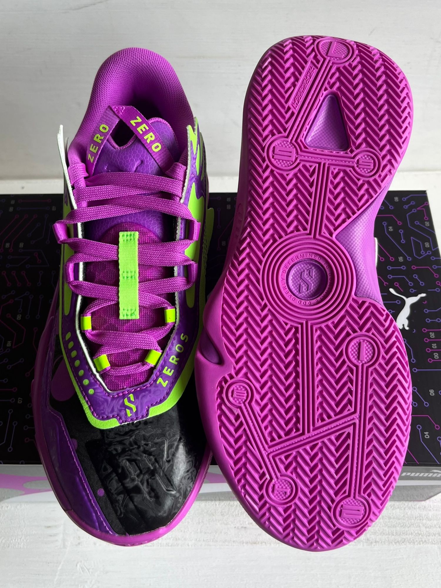 Unisex 311352-01 Neu OVP Scoot Hendersons Signature-Schuh, der Scoot Zeros II Shift, überzeugt durch ein schlankes und stromlinienförmiges Design, das von Scoots wendiger Spielweise inspiriert ist. In einer von Scoots Lieblingsfarben erhältlich, ist der Scoot Zeros II Purple Lab mit PUMA Hoops-Technologie ausgestattet, um die O.D.D.-Mentalität in dein Spiel zu bringen. MERKMALE & VORTEILE NITROFOAM™: Fortschrittlicher, mit Stickstoff angereicherter Schaum, der überlegene Reaktionsfähigkeit und Dämpfung in einem leichten Paket bietet. PWRTAPE: Zielgerichtete Verstärkung für Obermaterialhaltbarkeit und interne Stabilisierung. DETAILS Normale Weite. Schnürverschluss. Gummiaußensohle mit Henderson 7-Getriebedesign. Schnellverschluss-Ösenleiste am Obermaterial. Scoot Henderson Marken-Details.