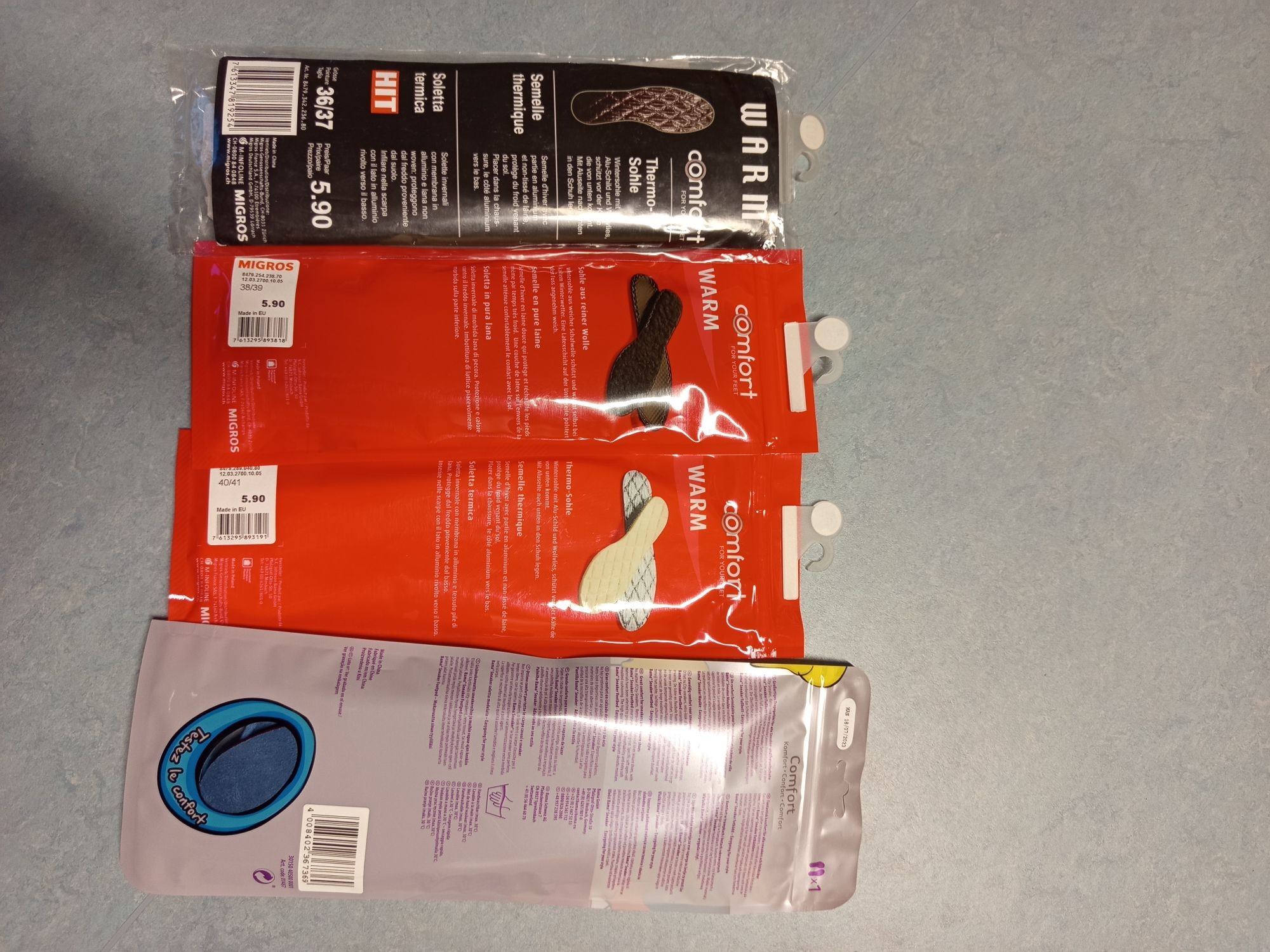 803.729: 5 Paar Ein­le­ge­soh­len ver­schie­de­ne Grö­ßen UVP: 32,60 CHF