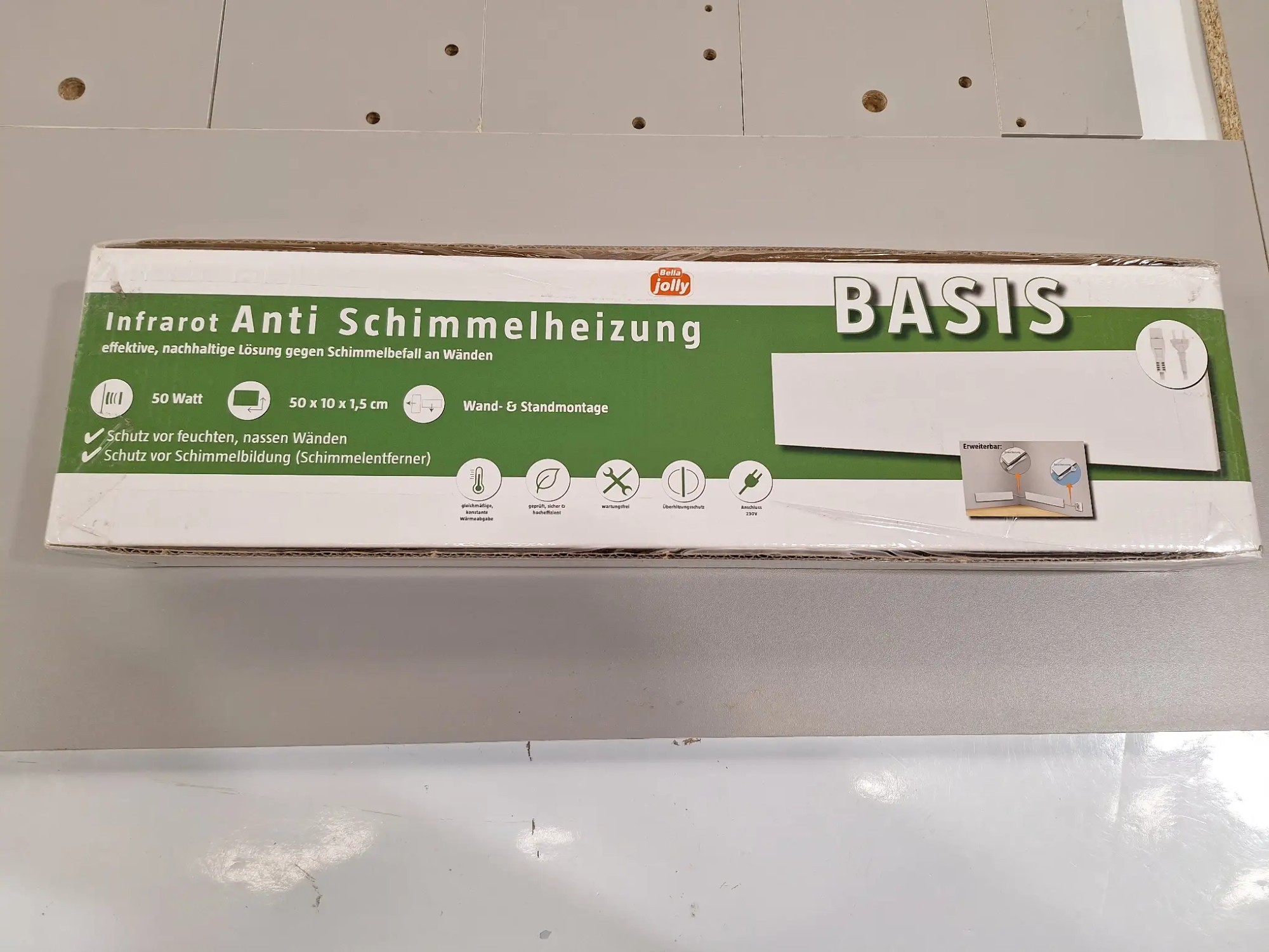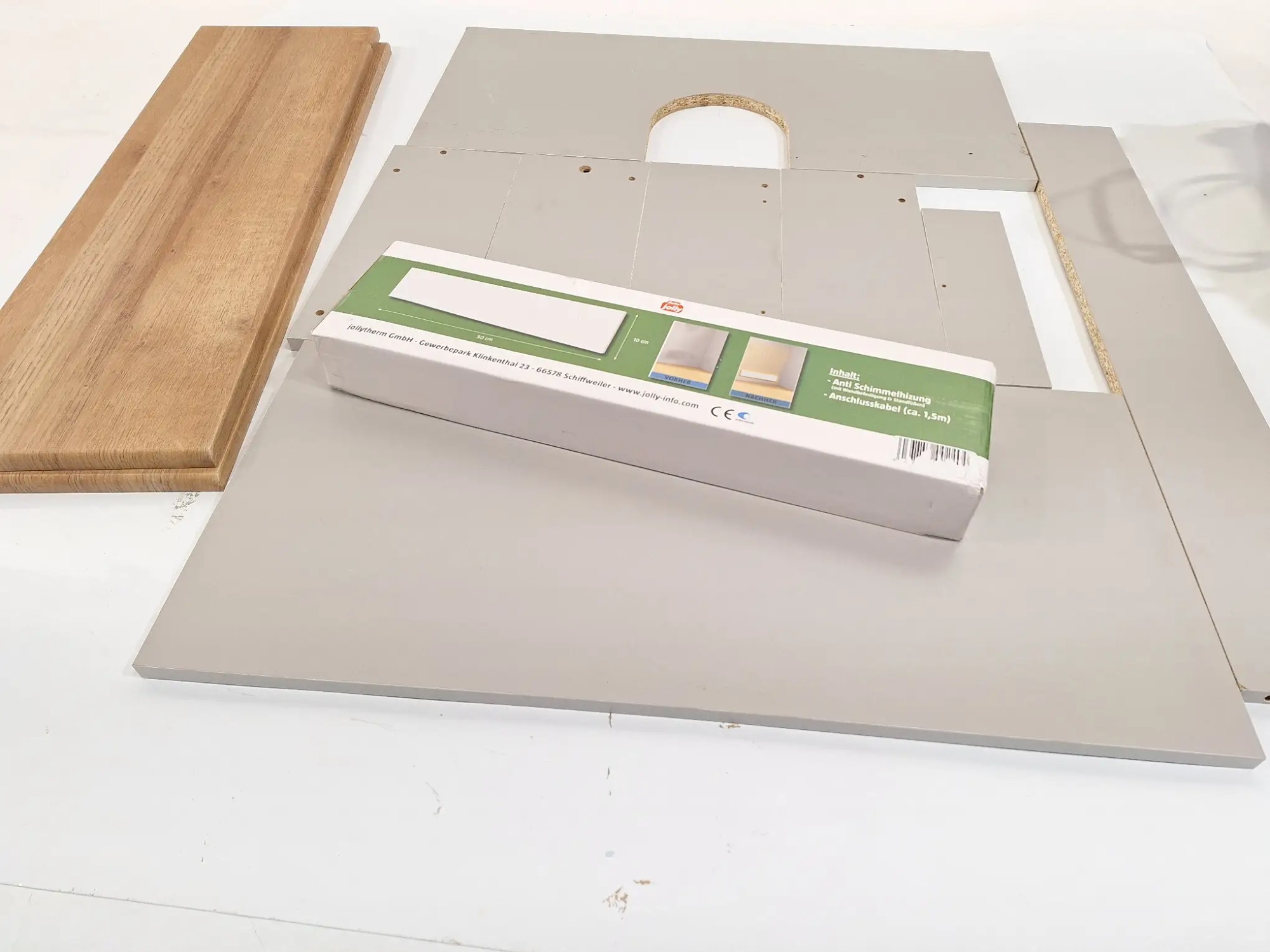 Holzplatten (für Kasten unvollständig), 1x Infrarot-Anti-Schimmel-Heizung 50x10x1,5 cm (Bella Jolly)