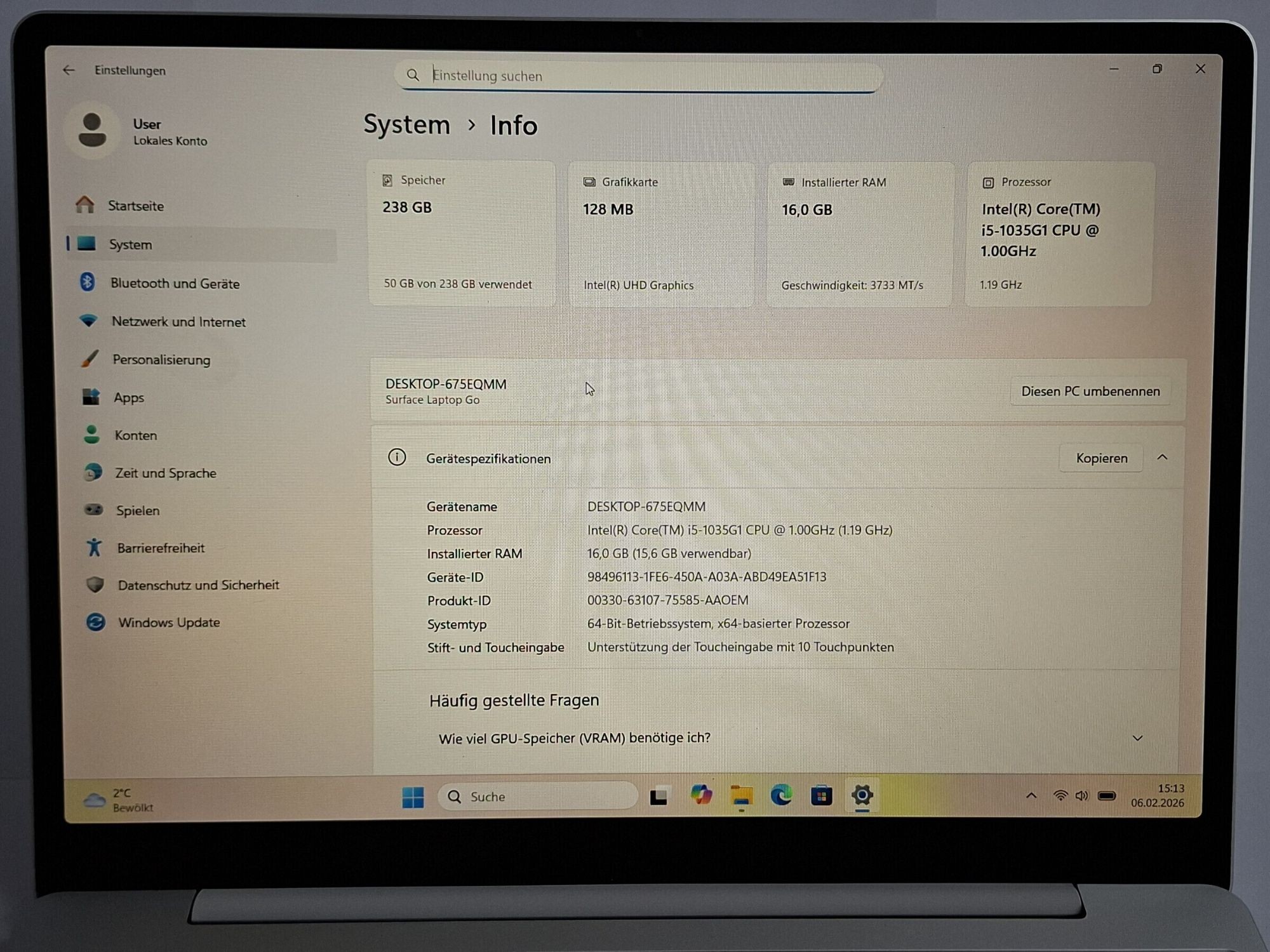 286.381: 1 Stk. Microsoft Surface Laptop Go - Intel Core I5