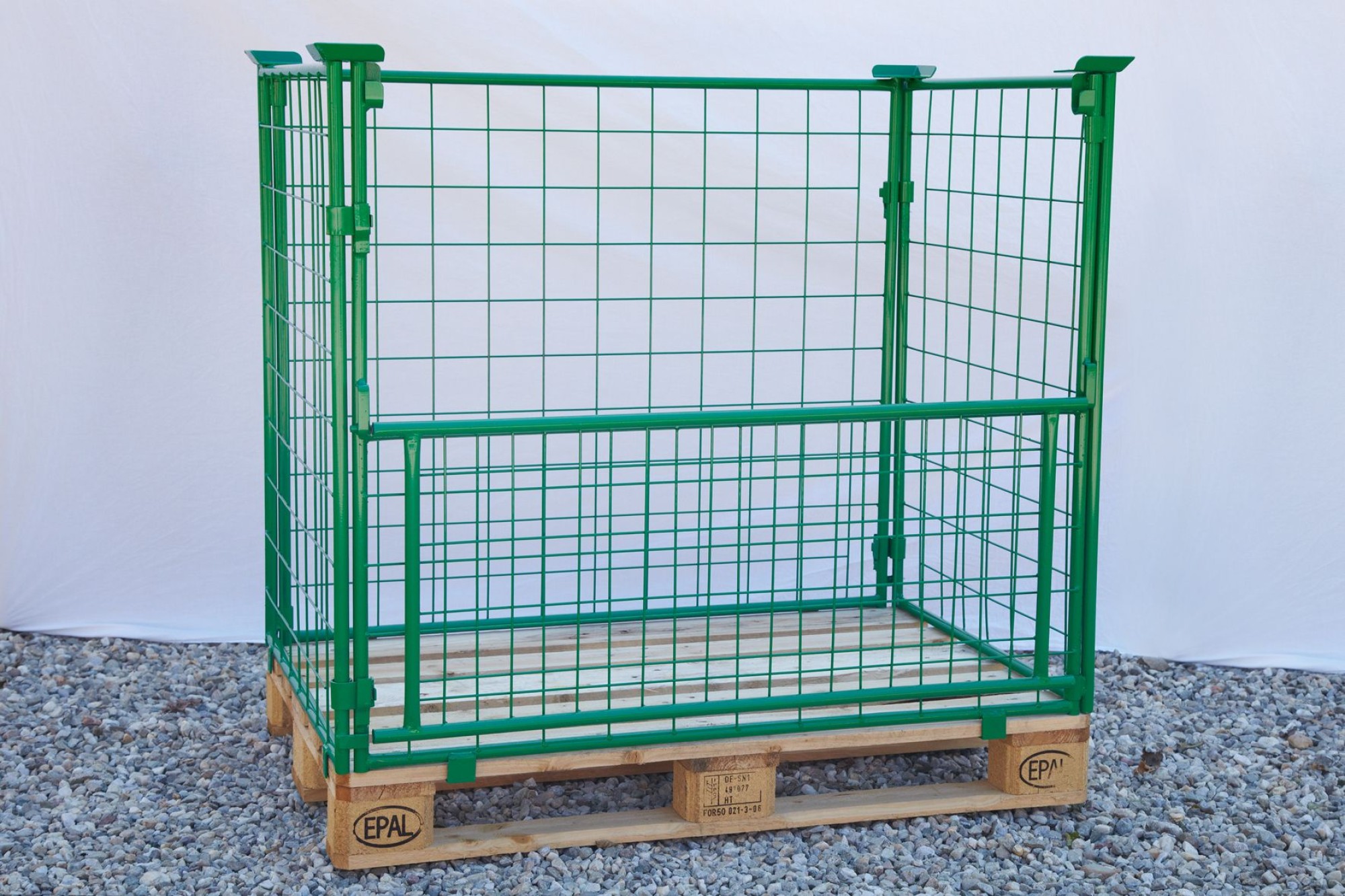 5 Stk. NEUE Aufsatz-Gitterrahmen mit 80 cm Höhe, in der Farbe Grün, 100/100er Maschung - eine Längsseite zur Hälfte klappbar. Boxen können übereinander gestapelt werden. (Europalette nicht im Lieferumfang enthalten.)