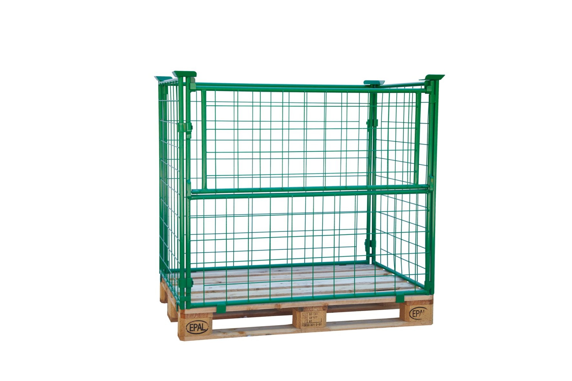 10 Stk. NEUE Aufsatz-Gitterrahmen mit 1 m Höhe, in der Farbe grün, 100/100er Maschung - eine Längsseite zur Hälfte klappbar. Boxen können übereinander gestapelt werden. (Europalette nicht im Lieferumfang enthalten).