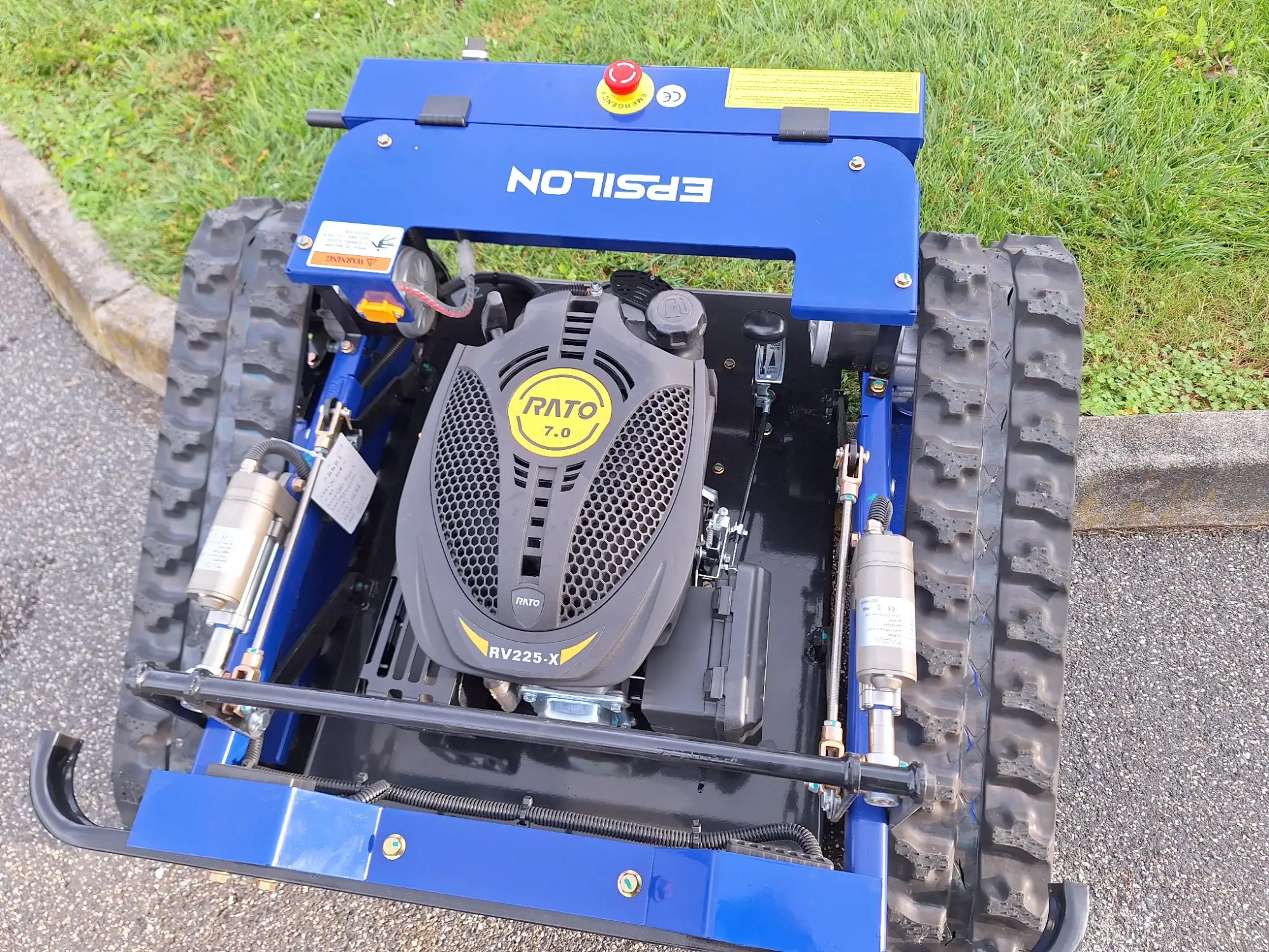 - (LxBxH) 900x930x520 mm - mit Fernsteuerung - 140 kg - 500 mm Arbeitsbreite, 20-150 mm Arbeitshöhe - 4 km/h - 7,5 PS Benzinmotor