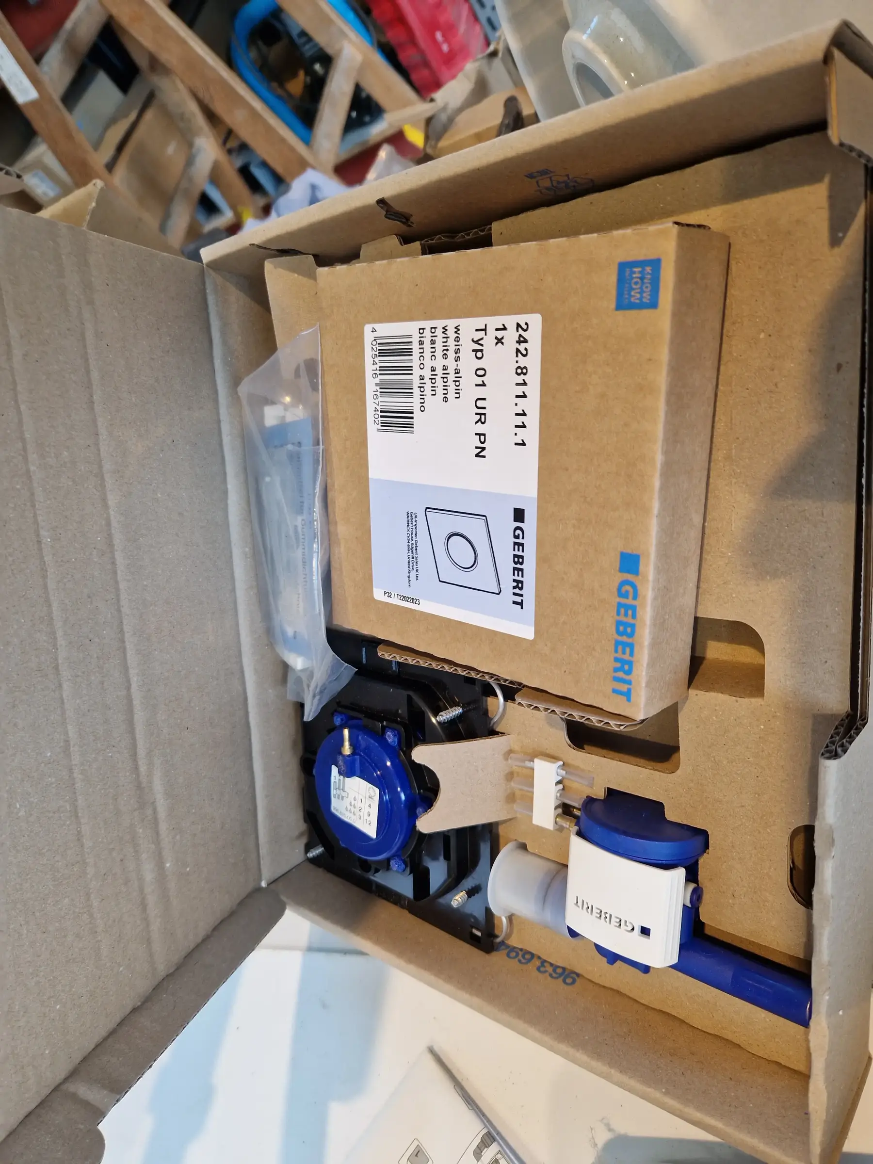mit Drückerplatte Geberit und Zubehör, Deckel fehlt!