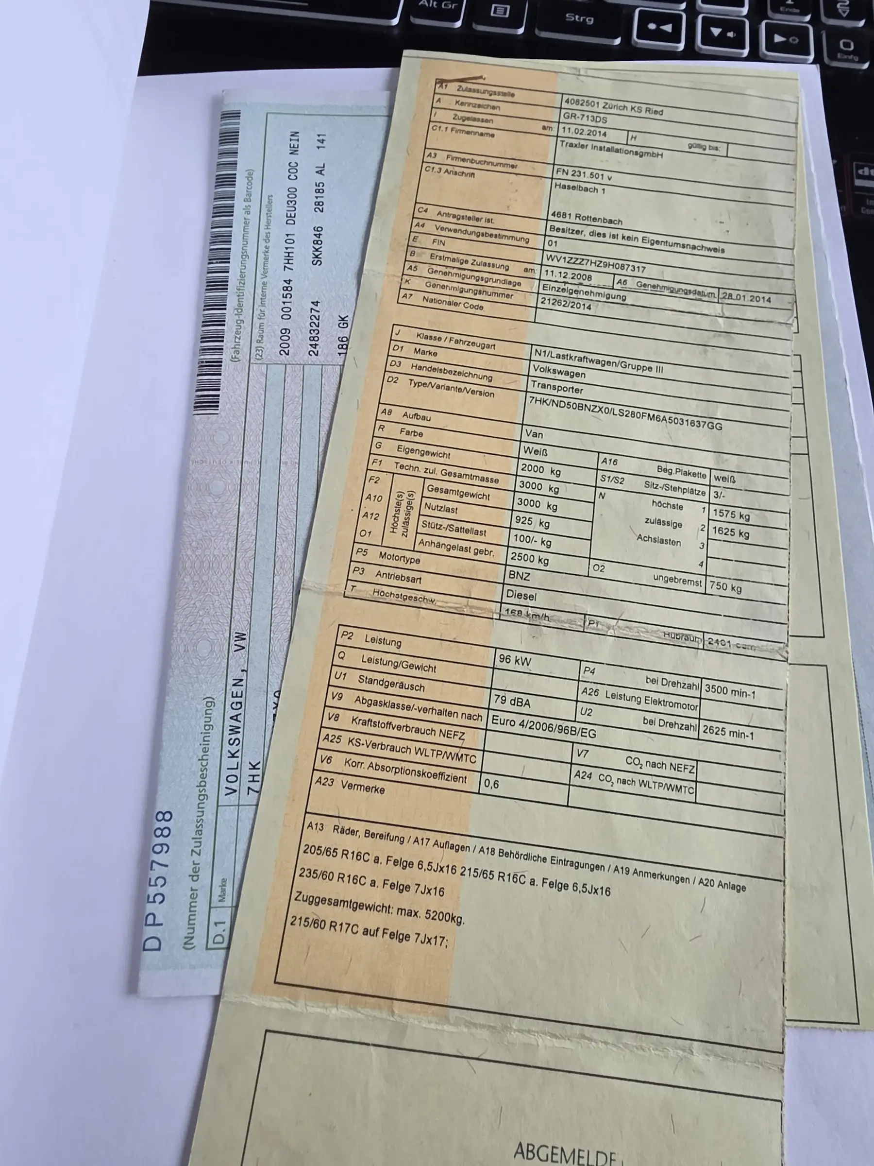 vorhanden: Typenschein, 2 Schlüssel