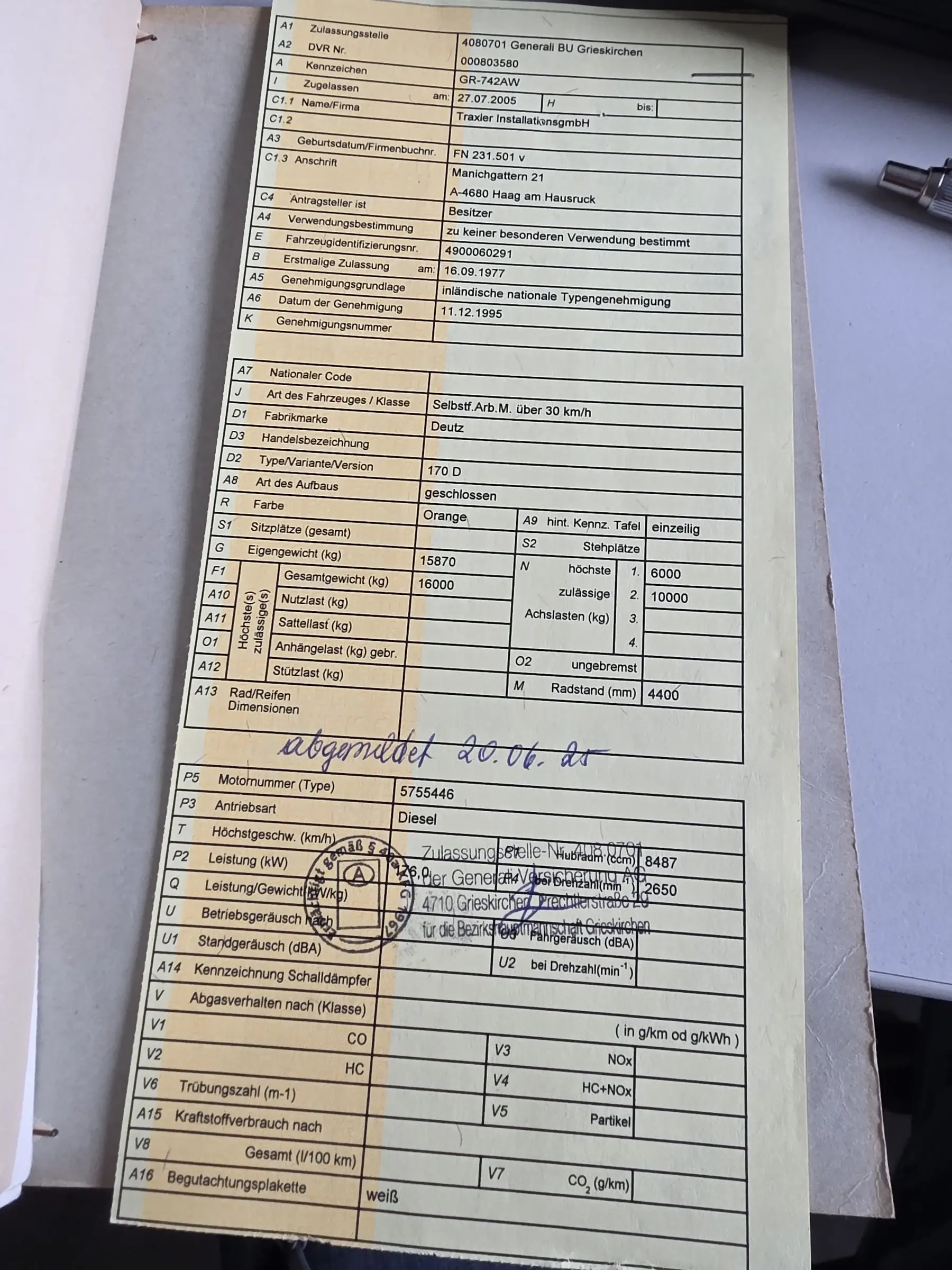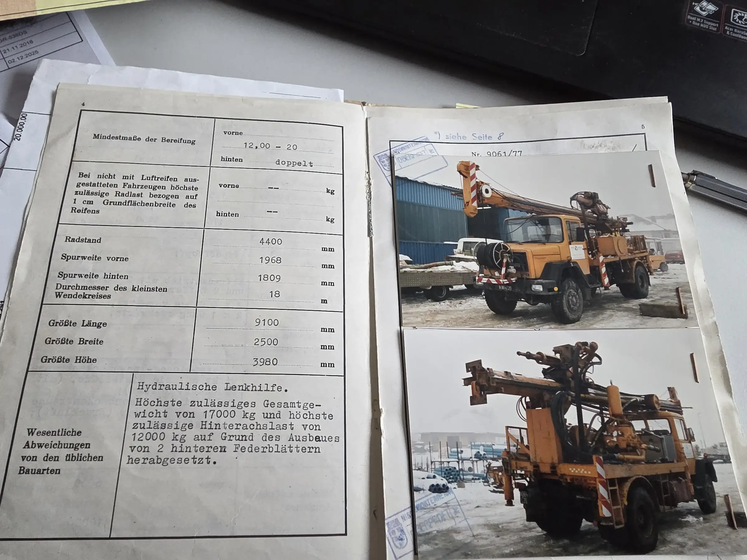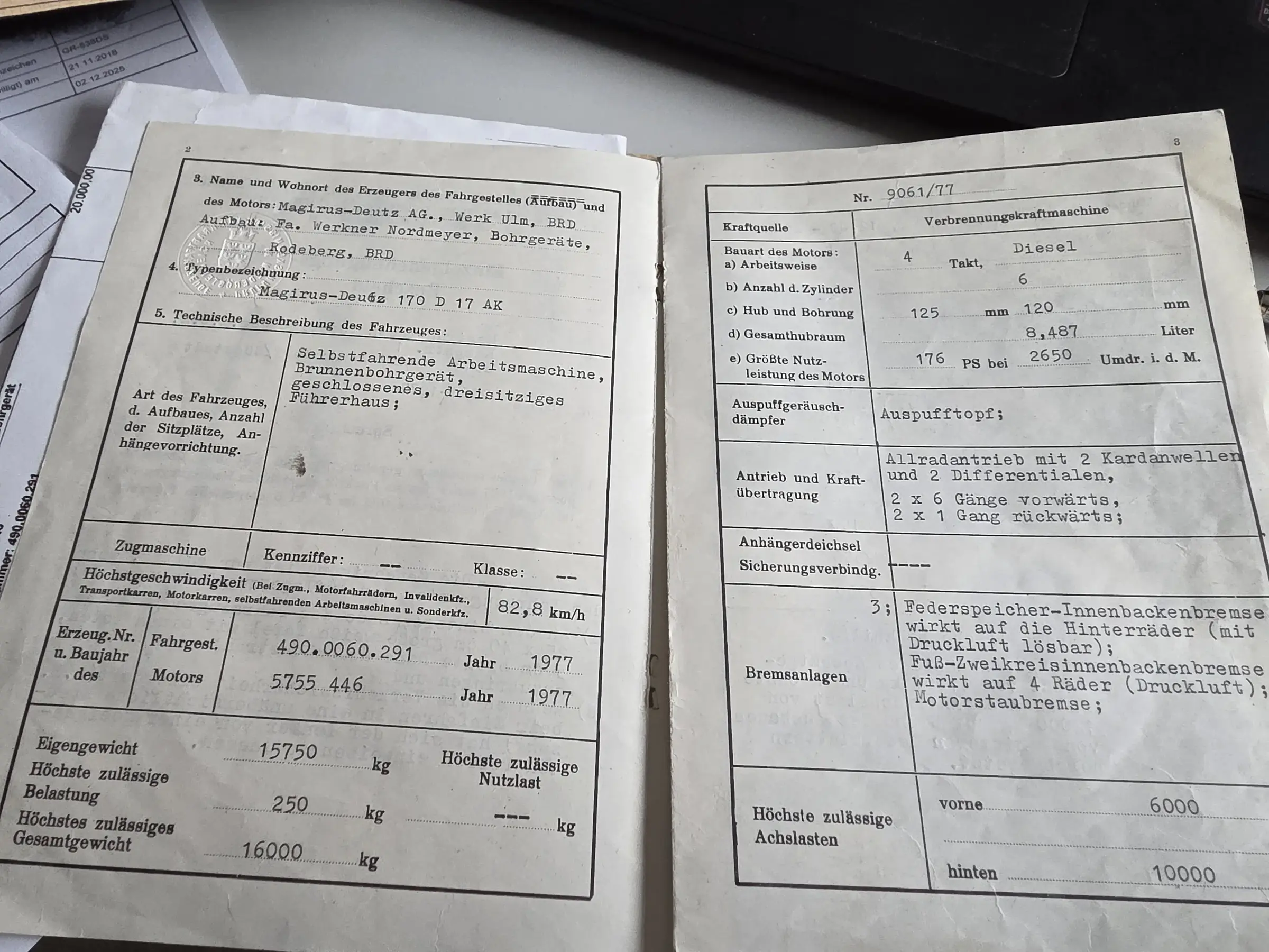 vorhanden: Typenschein, 1 Schlüssel