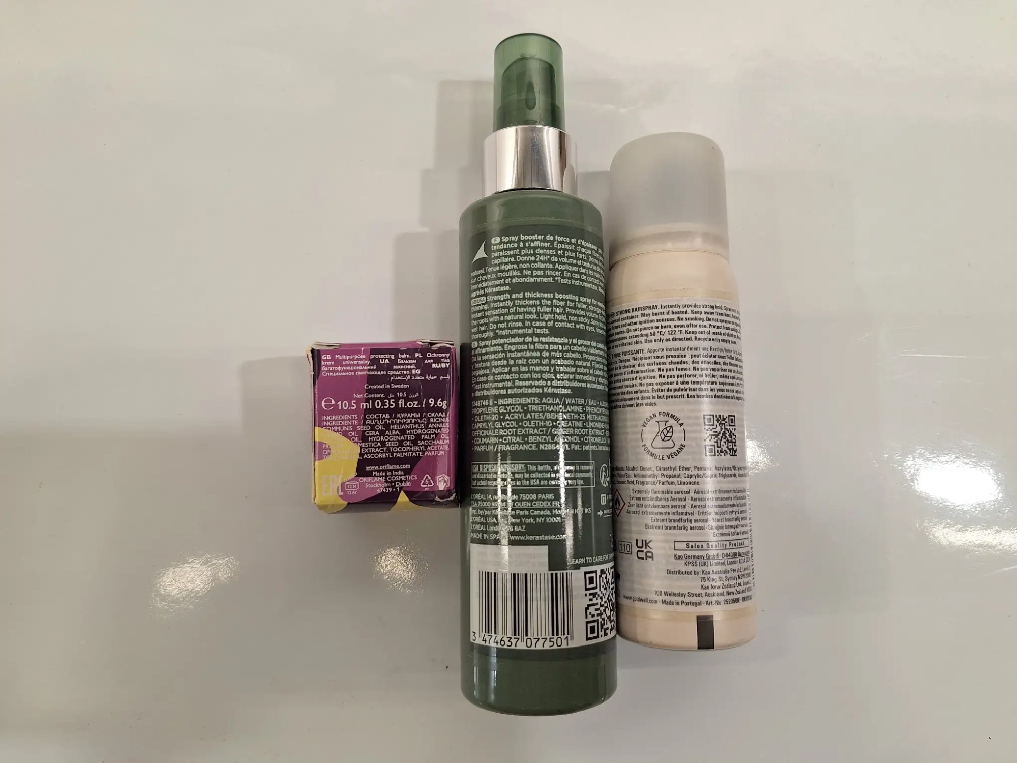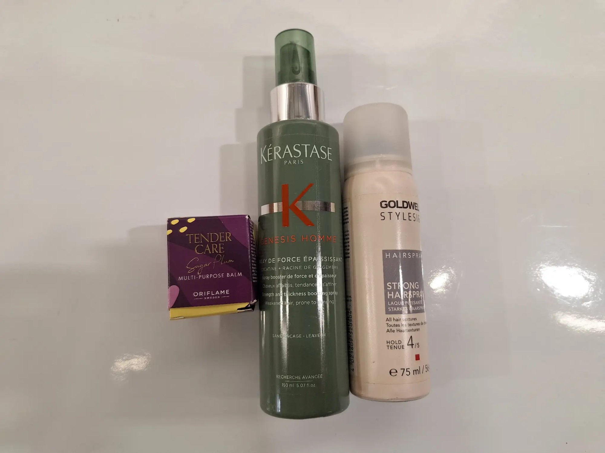 1xHaarspray 150ml, 1xHaarspray 75ml, 1xSack Länge 30cm x Breite 22cm, 1x Gebäckformwalze 41cm lang,