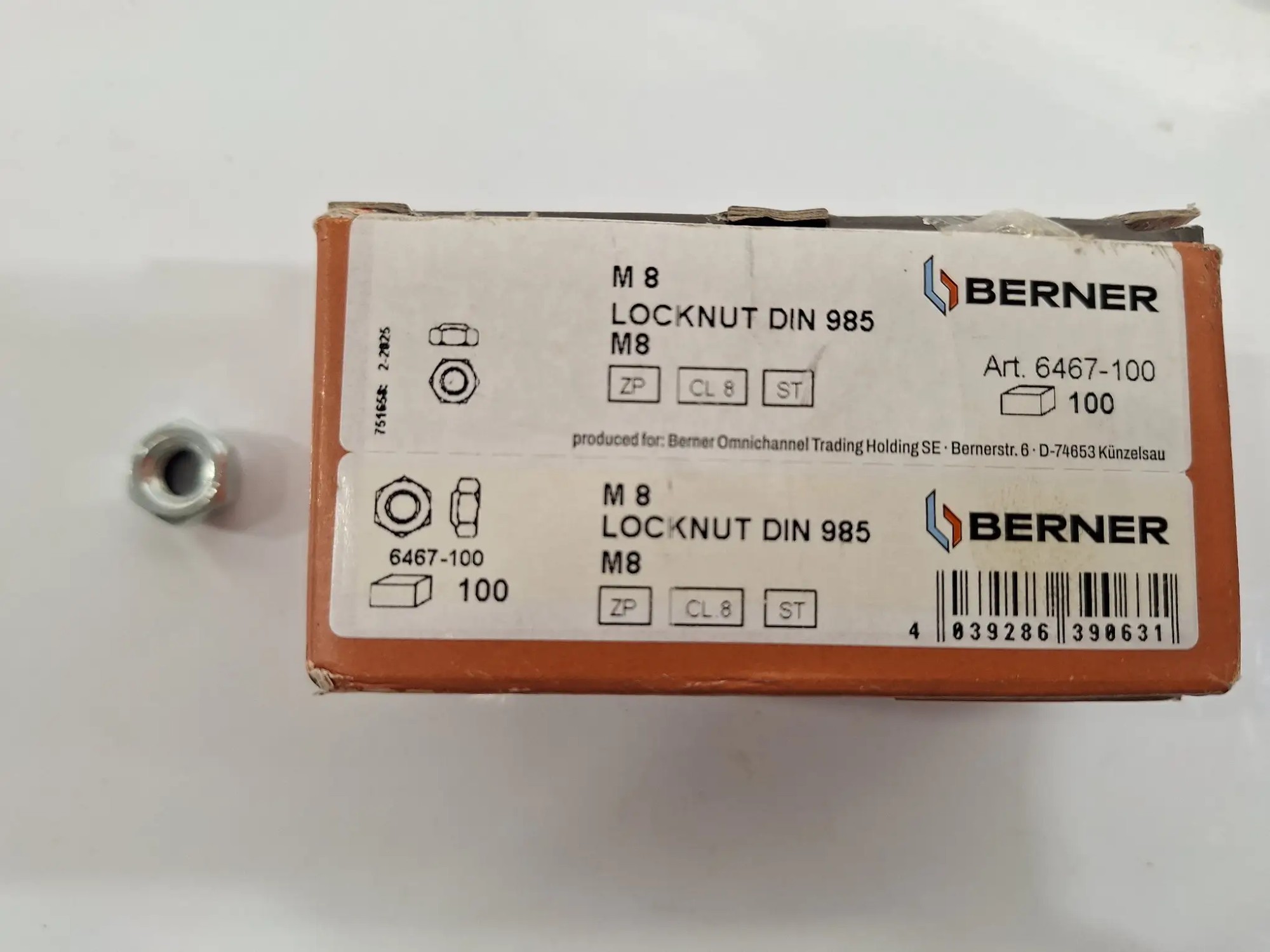 1xPackung Muttern M8 Locknut DIN 985 100 Stück, 1xTrainingsscheibe 2kg, 1xSDS Max Adapter 22cm