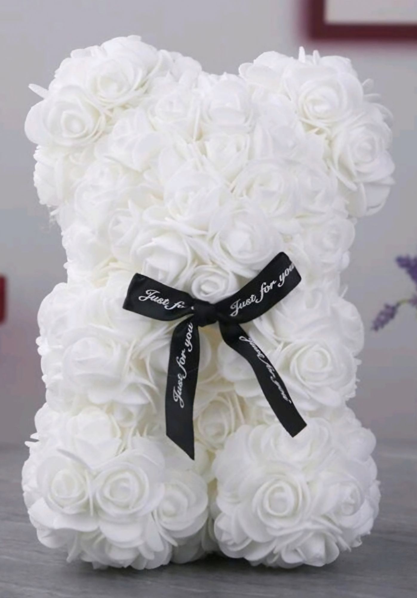 Kunstrosenbär Weiß ca. 20 cm in Karton